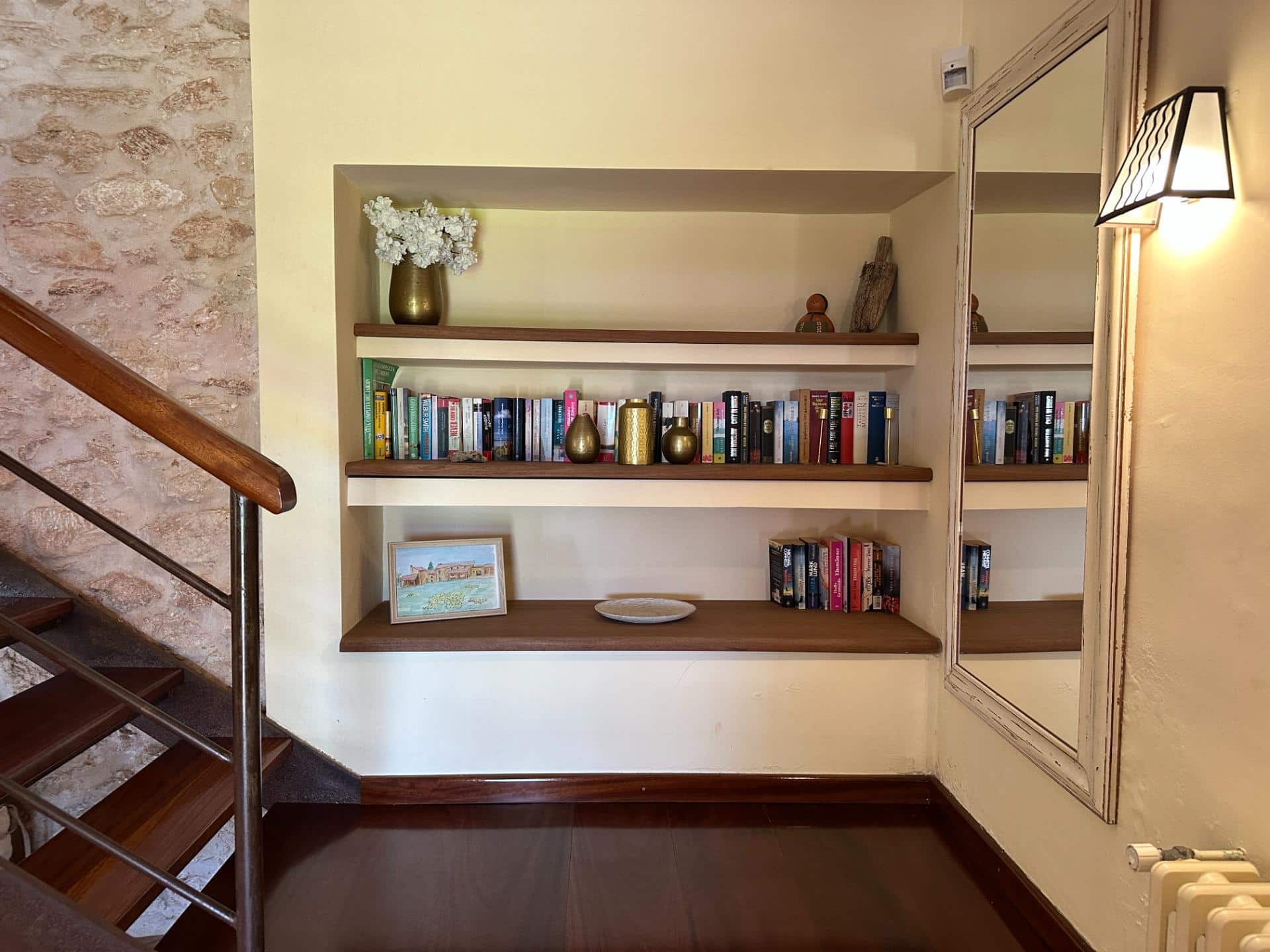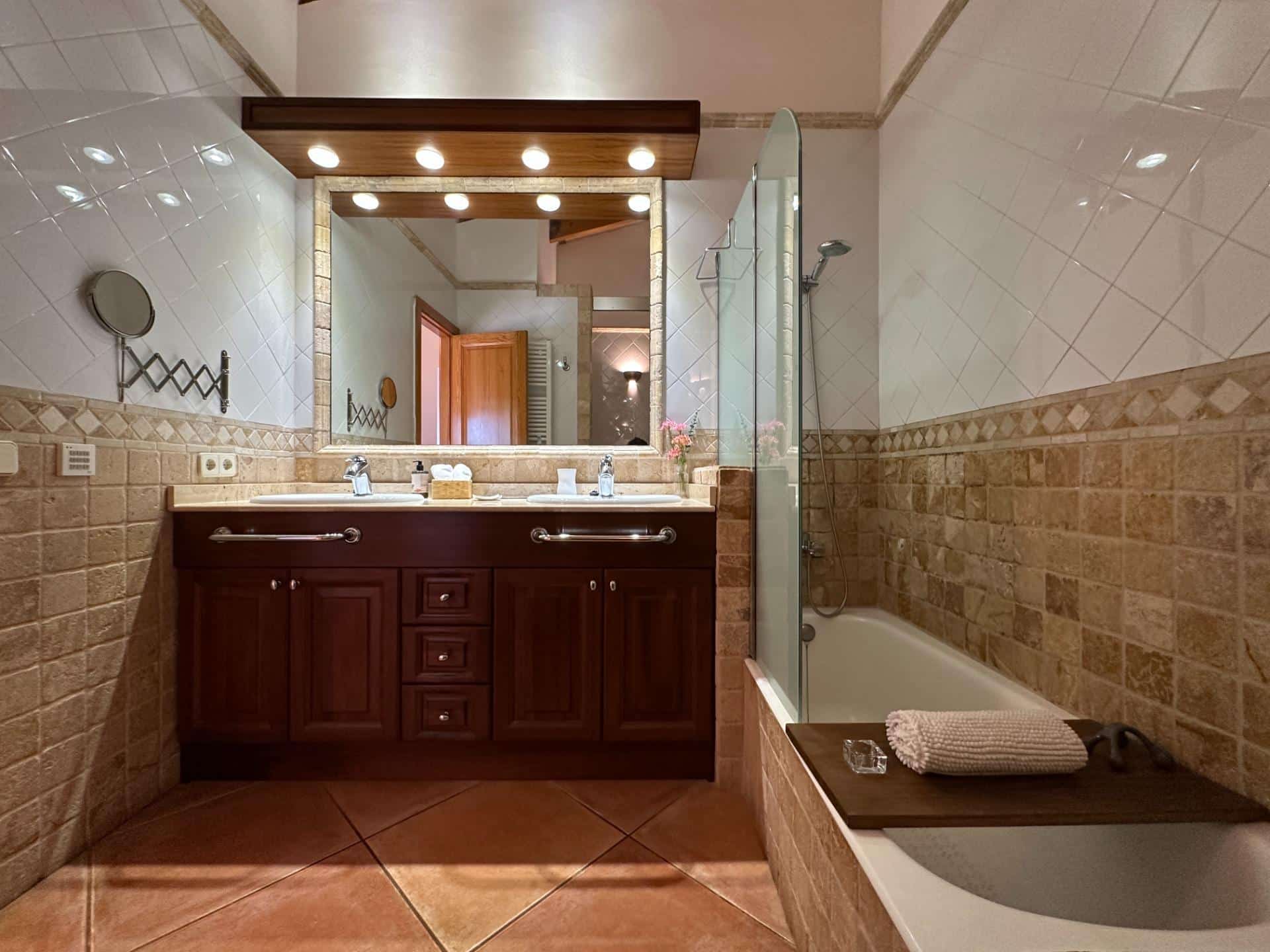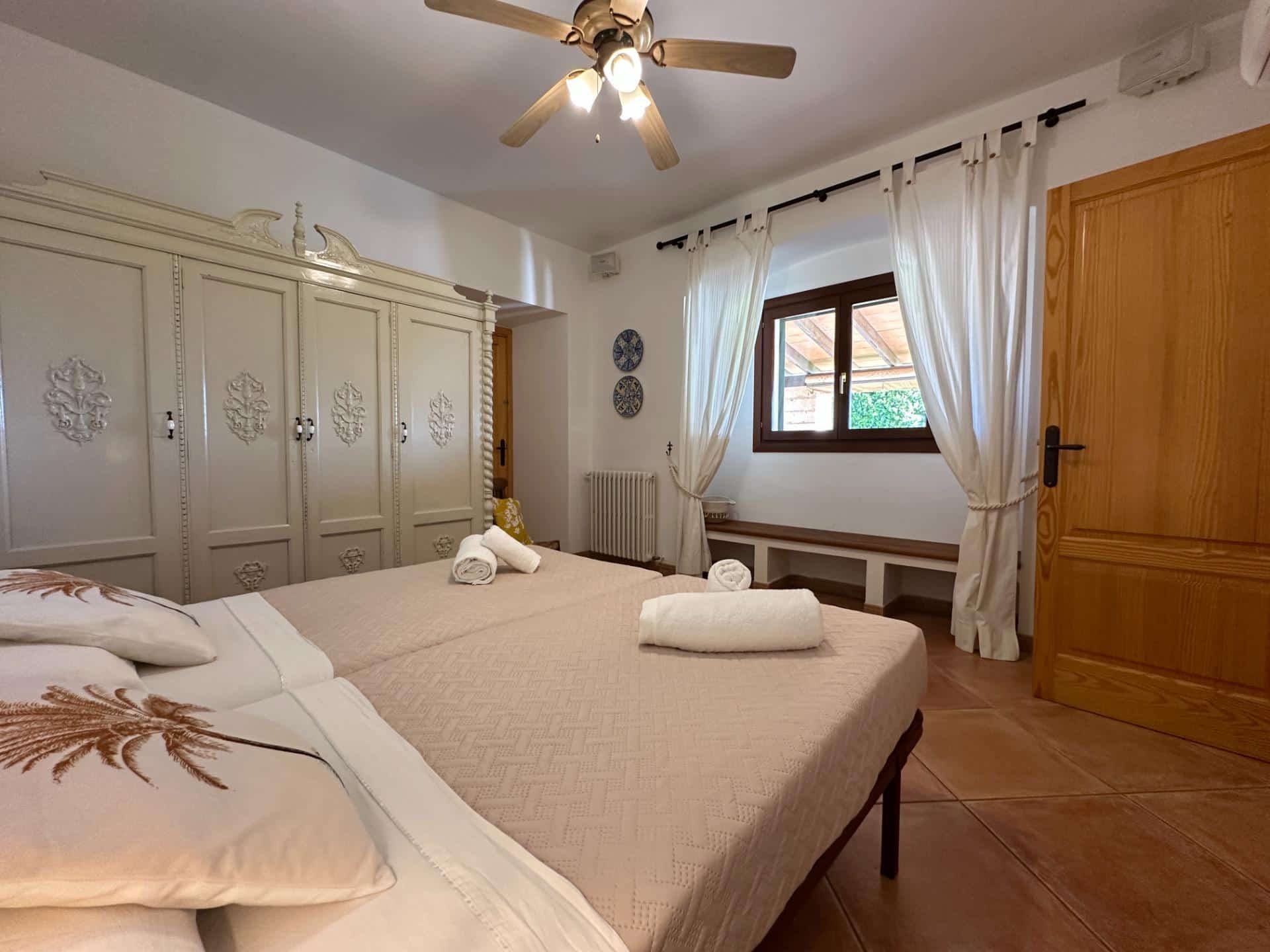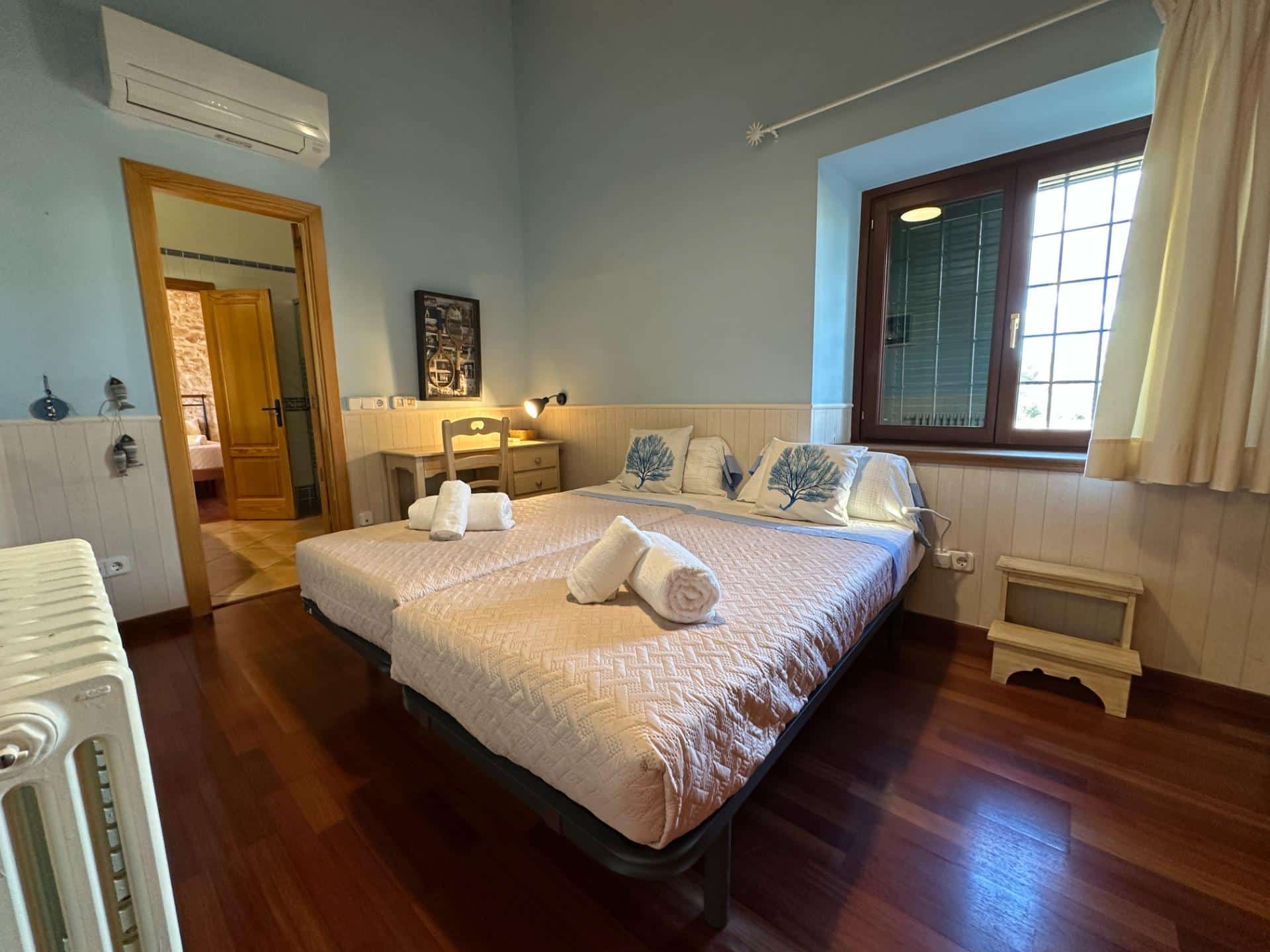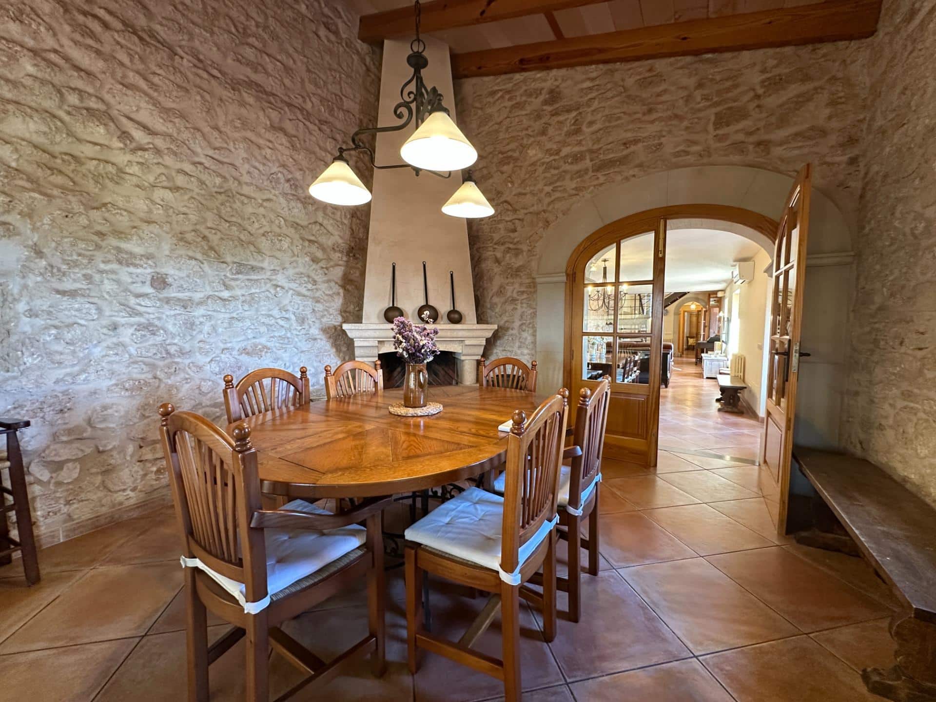 Casa de camp amb caràcter, d’estil mallorquí a 8 minuts caminant del centre de Santanyí amb llicència de lloguer turístic de 8 places.~~Santanyí; en els darrers anys, la seva popularitat i merescuda fama han anat creixent, convertint-se en un dels pobles més visitats de l’illa. Famosa pels seus 2 mercats setmanals, la seva arquitectura tradicional i els seus esdeveniments culturals. A més, compta amb una línia de costa amb unes platges paradisíaques de sorra blanca i aigua transparent.~~La casa és d’arquitectura tradicional mallorquina, està situada als afores del poble en un terreny de 26.618 m². Consta d’una habitatge unifamiliar aïllat amb piscina, amb una superfície en dues plantes de 517 m², piscina de 82 m² de mirall d’aigua, 520 m² de terrasses. Parets interiors i exteriors de pedra. La cuina i la sala menjador es troben a la planta baixa, disposa d’1 habitació doble amb bany a la planta baixa i tres habitacions dobles, una amb bany en suite i les altres dues amb bany compartit, a la primera planta. A la planta baixa també té un bany extra per a convidats.~~Porxos 161 m². Zona jardí amb 1.800 m² de gespa. Sala de màquines subterrània 55 m². Reformada íntegrament l’any 2000, té una llicència per a una ampliació d’uns 150 m². Connexió elèctrica. Pou d’aigua dolça legalitzat. 1 aljub de gran capacitat per a reg jardí. 1 aljub per a emmagatzematge aigua llar. Calefacció central (radiadors) Gasoil. Piscina per hidròlisi de sal.~
