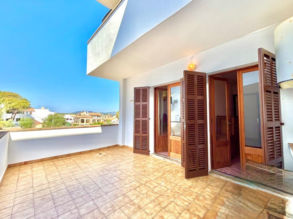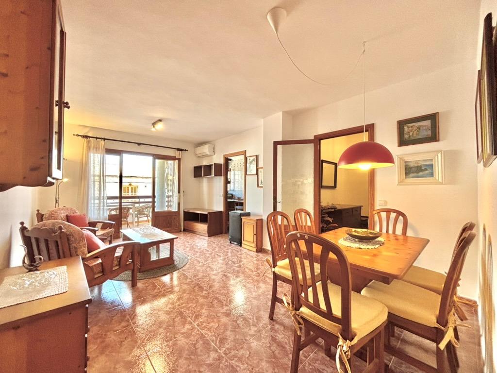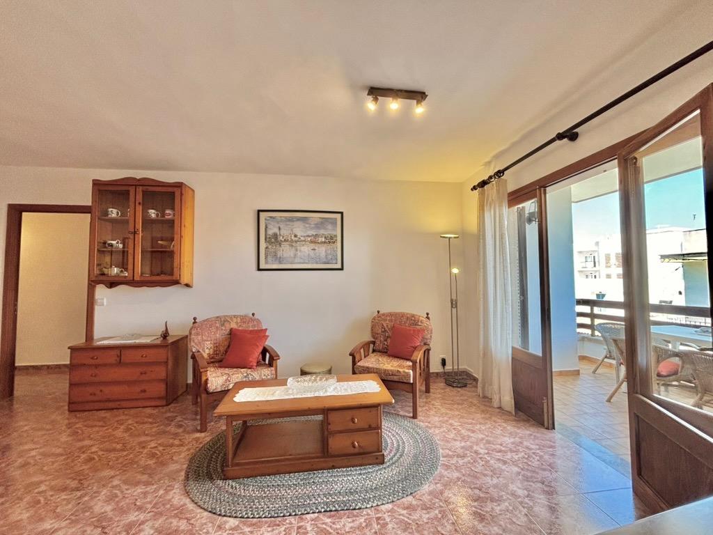 Lluminós apartament de 3 habitacions, moblat, amb 2 banys, balcó, terrassa i plaça d’aparcament a la primera planta amb vistes al mar a Cala Figuera.