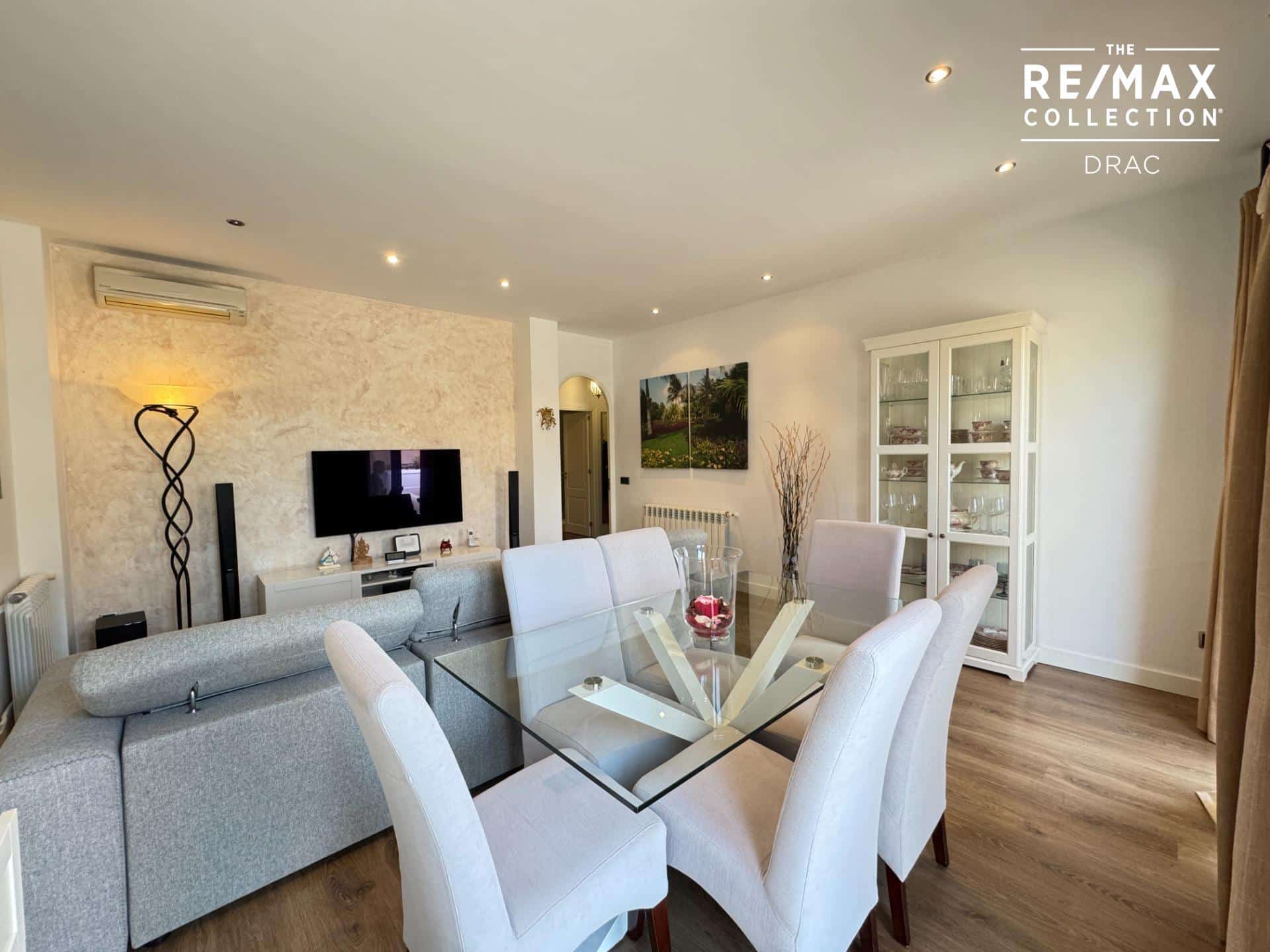 Pis de 3 dormitoris amb vestidor, garatge i piscina a Calonge~Es presenta aquest lluminós pis d’aproximadament 100 m², ubicat en una tranquil·la comunitat de veïns amb piscina a Calonge. L’habitatge, construït el 2001, es troba en un excel·lent estat de conservació i destaca pels seus espais amplis i el seu equipament, ideal per entrar-hi a viure de manera immediata.~~La propietat es distribueix de la següent manera:~~Saló-Menjador: Un espai ampli i diàfan amb terra de parquet laminat que aporta gran calidesa. Disposa d’una paret d’accent amb acabat texturitzat i grans finestrals que donen accés a l’exterior, proporcionant abundant llum natural durant tot el dia.~~Cuina i Safareig: Cuina independent, espaiosa i molt funcional, amb gran capacitat d’emmagatzematge. Annexa a la cuina, hi ha una pràctica zona de safareig destinada a la bugaderia.~~Dormitoris: L’habitatge disposa de 3 habitacions, actualment distribuïdes en un dormitori principal de bona mida, un segon dormitori i un gran vestidor amb armaris oberts (originalment el tercer dormitori).~~Banys: Dos banys complets. Un d’ells en suite al dormitori principal, amb un disseny actual, plat de dutxa i bidet. El segon bany, accessible des del passadís, també disposa de plat de dutxa.~~Equipament i Qualitats:~Climatització: Equipat amb calefacció per radiadors de gas i splits d’aire condicionat, un al saló i un altre al passadís per a climatitzar la zona de les habitacions.~~Fusteria Exterior: De PVC amb doble vidre, garantint un excel·lent aïllament.~~Terres: Parquet laminat a tot l’habitatge, excepte a les zones humides.~~Zones Comuns:~Garatge: Inclou una plaça de garatge a la mateixa finca amb capacitat per a un cotxe i una moto.~~Piscina: La comunitat disposa de piscina comunitària.~~Aquesta propietat és una oportunitat ideal per a aquells que busquen un pis complet, espaiós i ben equipat.~