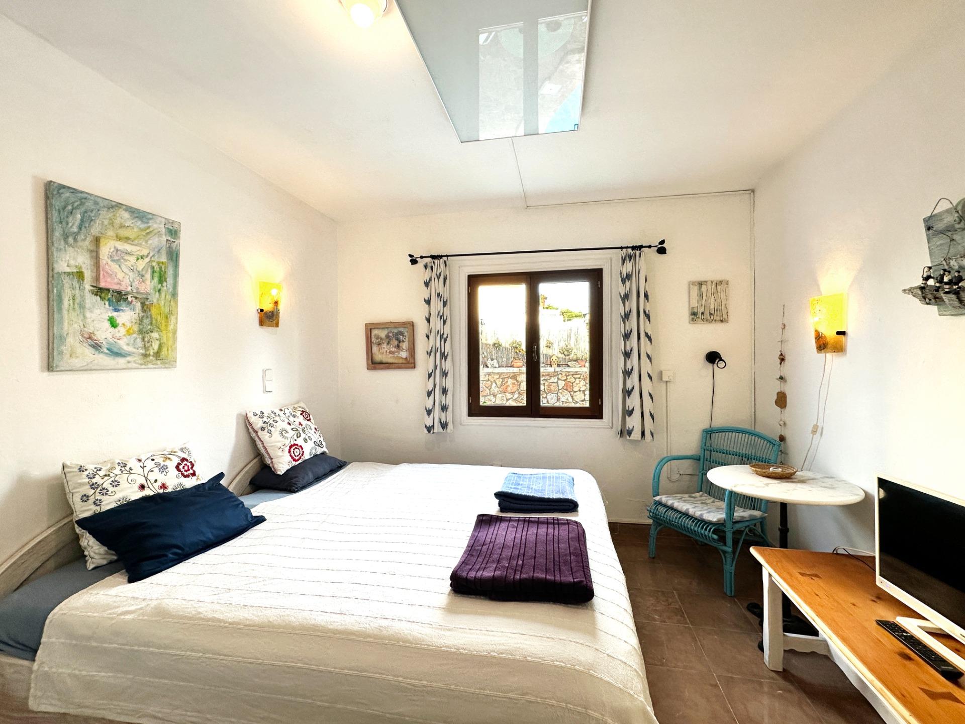 Interior: Saló-menjador amb llar de foc i grans vidrieres amb vistes al mar. Cuina àmplia amb rebost i accés a terrasses. 2 dormitoris dobles amb armaris encastats, més una estança ideal com a estudi. 2 banys complets + bany a la zona de piscina.