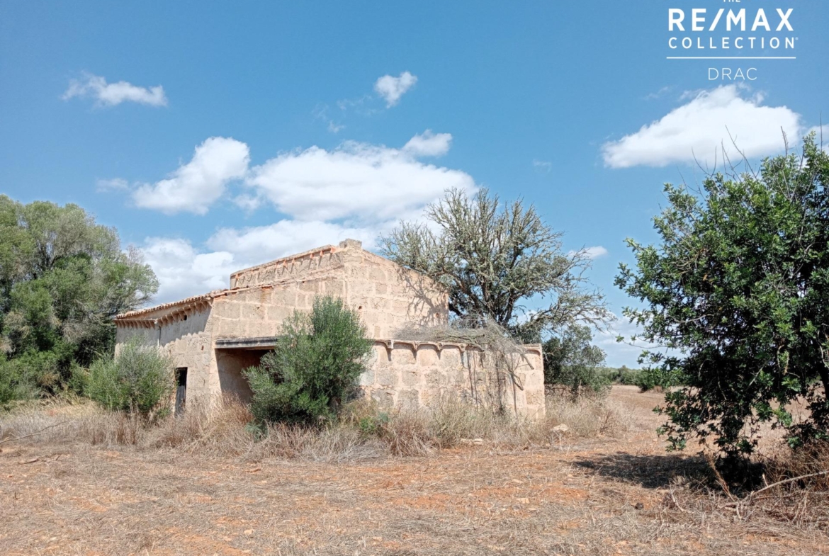 Charmantes Landgut mit Potenzial in Campos~~Charmantes Landgut mit Potenzial in Campos~Entdecken Sie diese großartige Gelegenheit, Ihr Traumhaus in einer der ruhigsten Gegenden von Campos zu verwirklichen. Dieses 32.000 m² große, rustikale Landgut bietet eine leere Leinwand für alle, die Ruhe und die Schönheit der mallorquinischen Umgebung suchen.~Das von einer traditionellen Trockenmauer umgebene Grundstück beherbergt ein altes Haus und die Außenanlagen eines Stalles. Diese historischen Gebäude bieten Ihnen die Möglichkeit, sie komplett zu renovieren und dabei den Charme der Vergangenheit zu bewahren oder ein neues Zuhause zu bauen, das perfekt zu Ihren Bedürfnissen und Wünschen passt.~~Das Anwesen verfügt über einen legalisierten Brunnen, der eine konstante Wasserversorgung gewährleistet – eine wertvolle und nachhaltige Ressource. Der Stromanschluss befindet sich nur wenige Meter vom Grundstück entfernt und erleichtert so jedes Bauprojekt. Die Zufahrt ist bequem und direkt: Die asphaltierte Straße führt fast bis zum Grundstück, das über zwei verschiedene Eingänge verfügt.~Eingebettet in eine ruhige Umgebung, liegt dieses Anwesen strategisch günstig in der Nähe der charmanten Küstendörfer Sa Ràpita und Es Estanyol und nur einen Steinwurf vom berühmten Strand Es Trenc entfernt. Genießen Sie die perfekte Kombination aus ruhiger Landschaft, der Nähe zu wichtigen Dienstleistungen und einigen der schönsten Strände der Insel.~~Verpassen Sie nicht die Gelegenheit, dieses Stück Paradies auf Mallorca zu erwerben. Kontaktieren Sie uns für weitere Informationen und planen Sie Ihre Zukunft an diesem idyllischen Ort!~