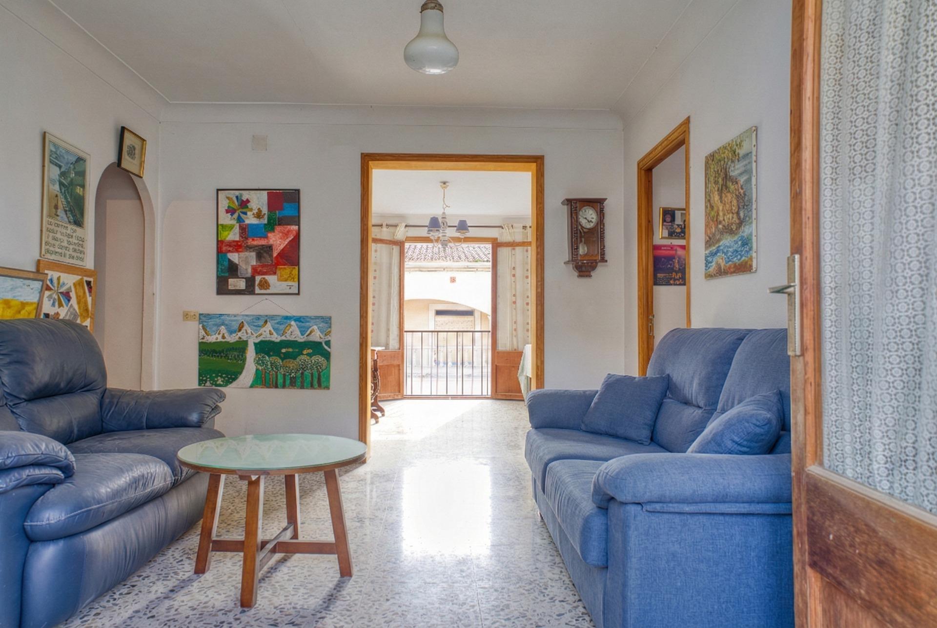 Die Aufteilung ist typisch für mallorquinische Dorfhäuser, grosszügige aneinandergereihte Zimmer, hohe Decken und dicke Wände, die die Temperatur auf natürliche Weise regulieren. Das Haus verfügt über mehrere Schlafzimmer, ein Esszimmer, eine Küche, funktionsfähige Bäder und einen Innenhof, der dem gesamten Gebäude Licht und Belüftung verleiht. Dieser Hof bietet Potenzial: Er kann überdacht oder erweitert werden, um zusätzliche Nutzfläche zu gewinnen.
