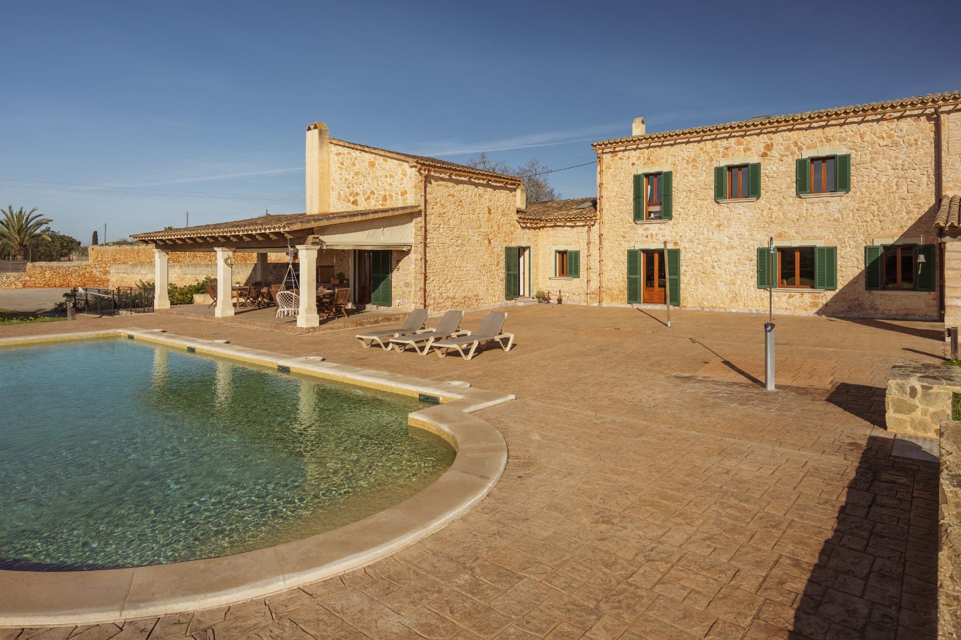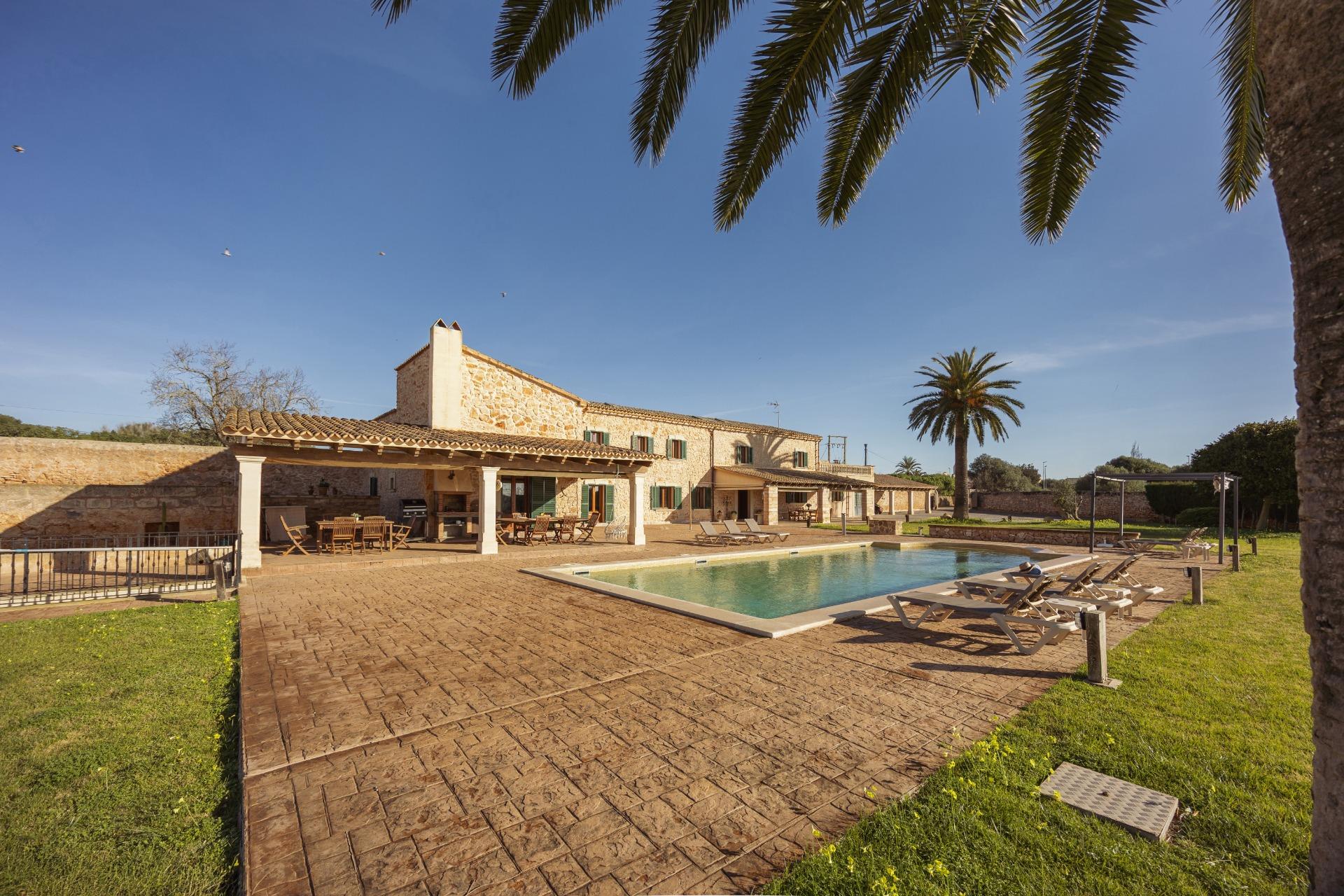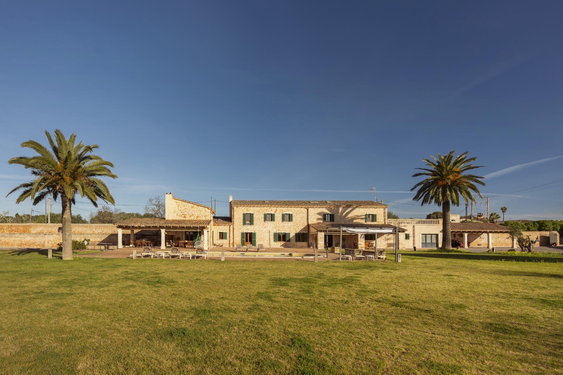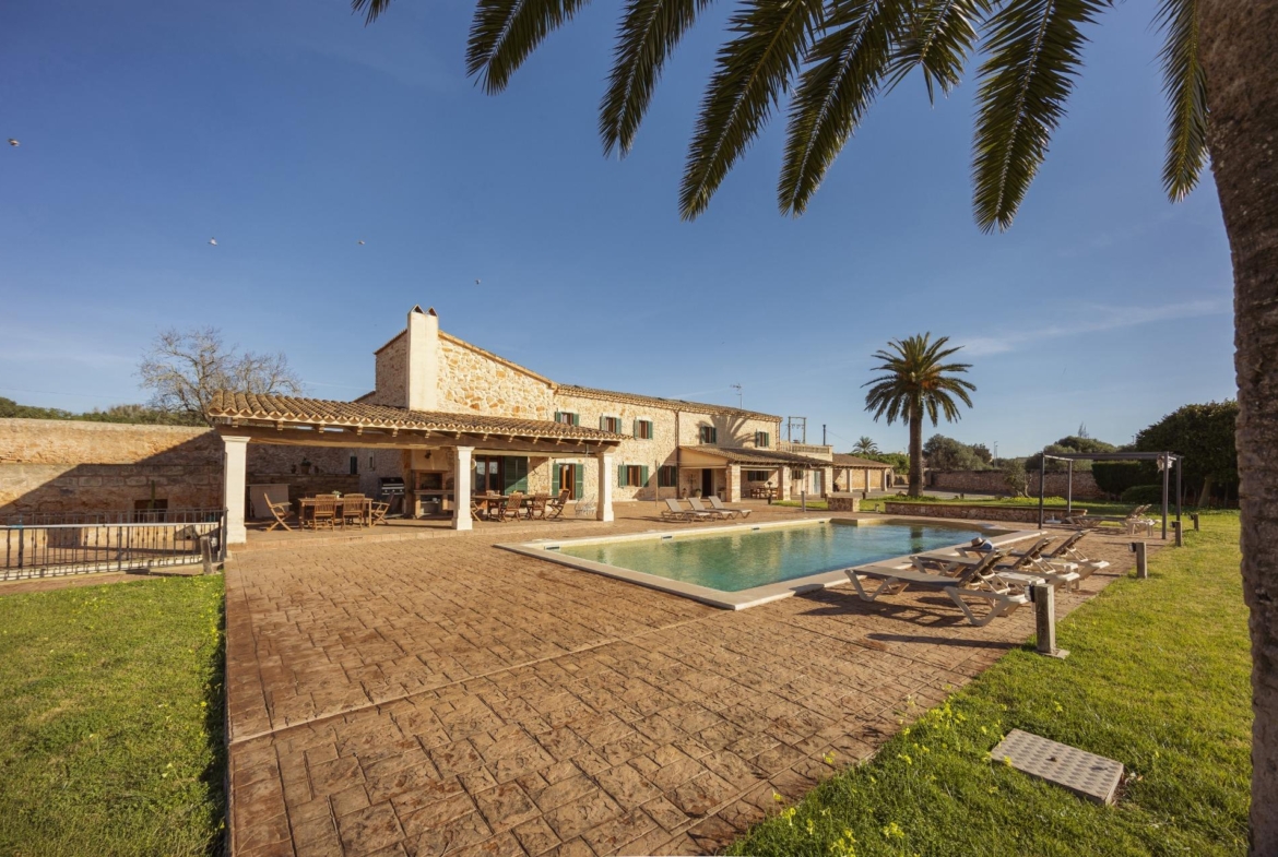 Charmantes Landhaus im mallorquinischen Stil, 8 Gehminuten vom Zentrum von Santanyí entfernt, mit Touristenvermietungslizenz für 8 Personen.~~Santanyí: In den letzten Jahren ist seine Beliebtheit und sein wohlverdienter Ruf stetig gewachsen, was es zu einem der meistbesuchten Dörfer der Insel macht. Berühmt für seine zwei Wochenmärkte, seine traditionelle Architektur und seine kulturellen Veranstaltungen. Darüber hinaus verfügt es über eine Küstenlinie mit paradiesischen, weißen Sandstränden und kristallklarem Wasser.~~Das Haus ist in traditioneller mallorquinischer Architektur gehalten und liegt am Rande des Dorfes auf einem 26.618 m² großen Grundstück. Es besteht aus einem freistehenden Einfamilienhaus mit Pool, mit einer Fläche von 517 m² auf zwei Etagen, einem 82 m² großen Pool, und 520 m² Terrassen. Innen- und Außenwände aus Stein. Die Küche und das Wohn-/Esszimmer befinden sich im Erdgeschoss, das über 1 Doppelzimmer mit Bad und ein zusätzliches Gäste-WC verfügt. Im ersten Stock befinden sich drei Doppelschlafzimmer, eines davon mit Bad en Suite und die anderen beiden mit Gemeinschaftsbad.~~Veranden 161 m². Gartenbereich mit 1.800 m² Rasen. 55 m² unterirdischer Maschinenraum. Im Jahr 2000 komplett renoviert, liegt eine Baugenehmigung für eine Erweiterung von ca. 150 m² vor. Stromanschluss. Legalisierter Süßwasserbrunnen. 1 Großraumzisterne für die Gartenbewässerung. 1 Zisterne für die Speicherung des Brauchwassers. Zentralheizung (Heizkörper) Öl. Pool mit Salzelektrolyse.~