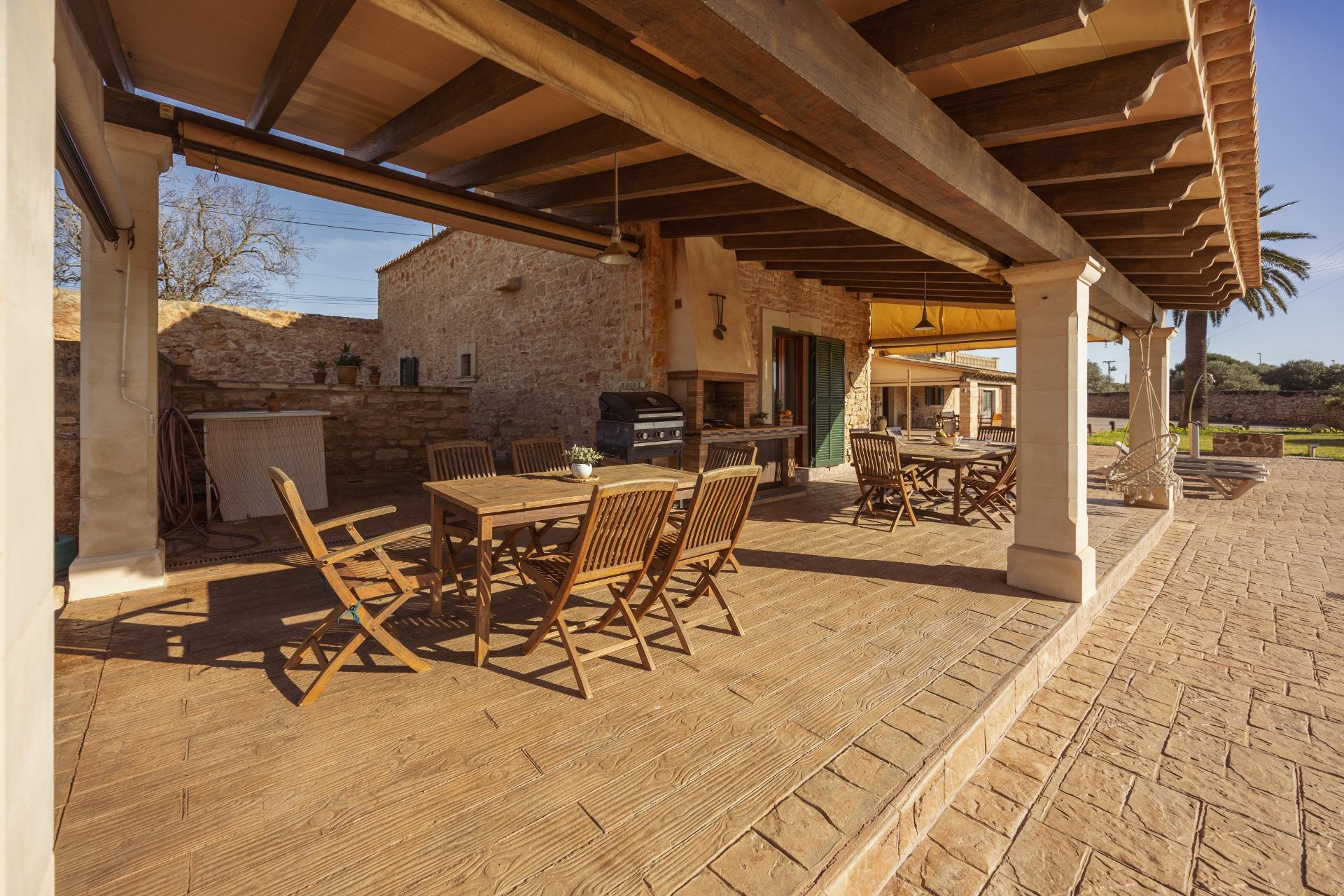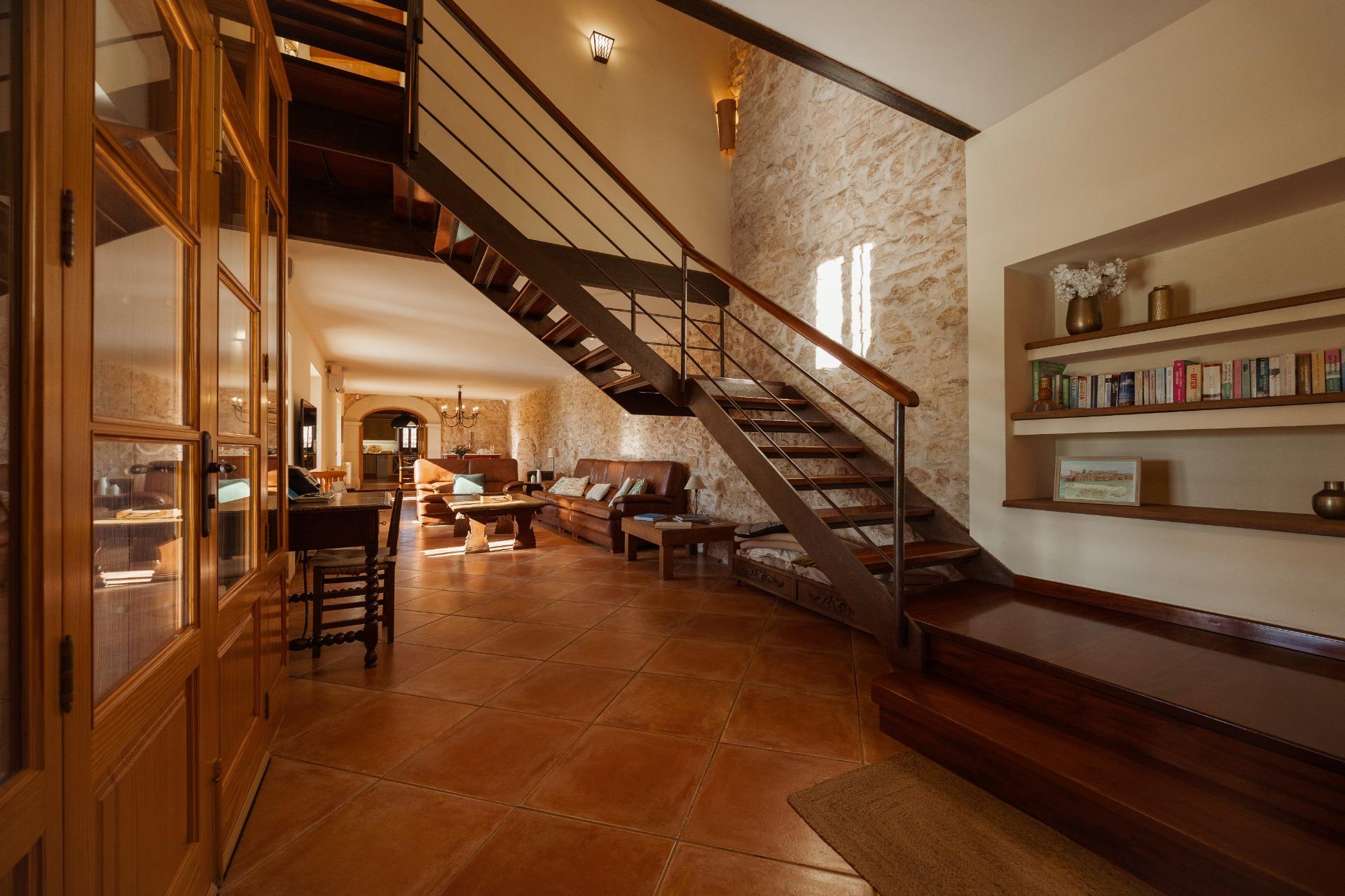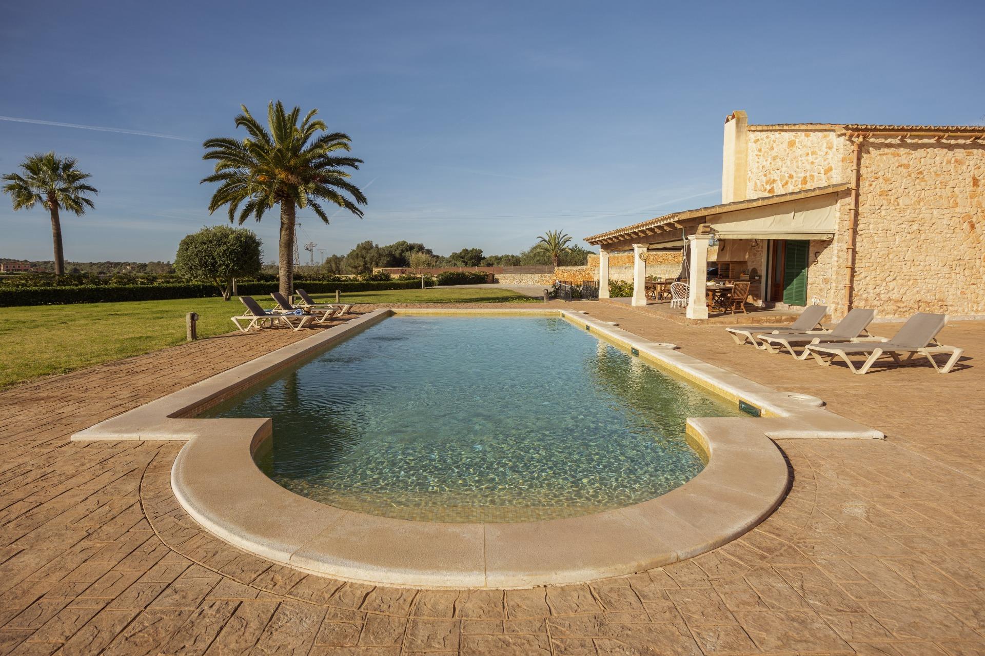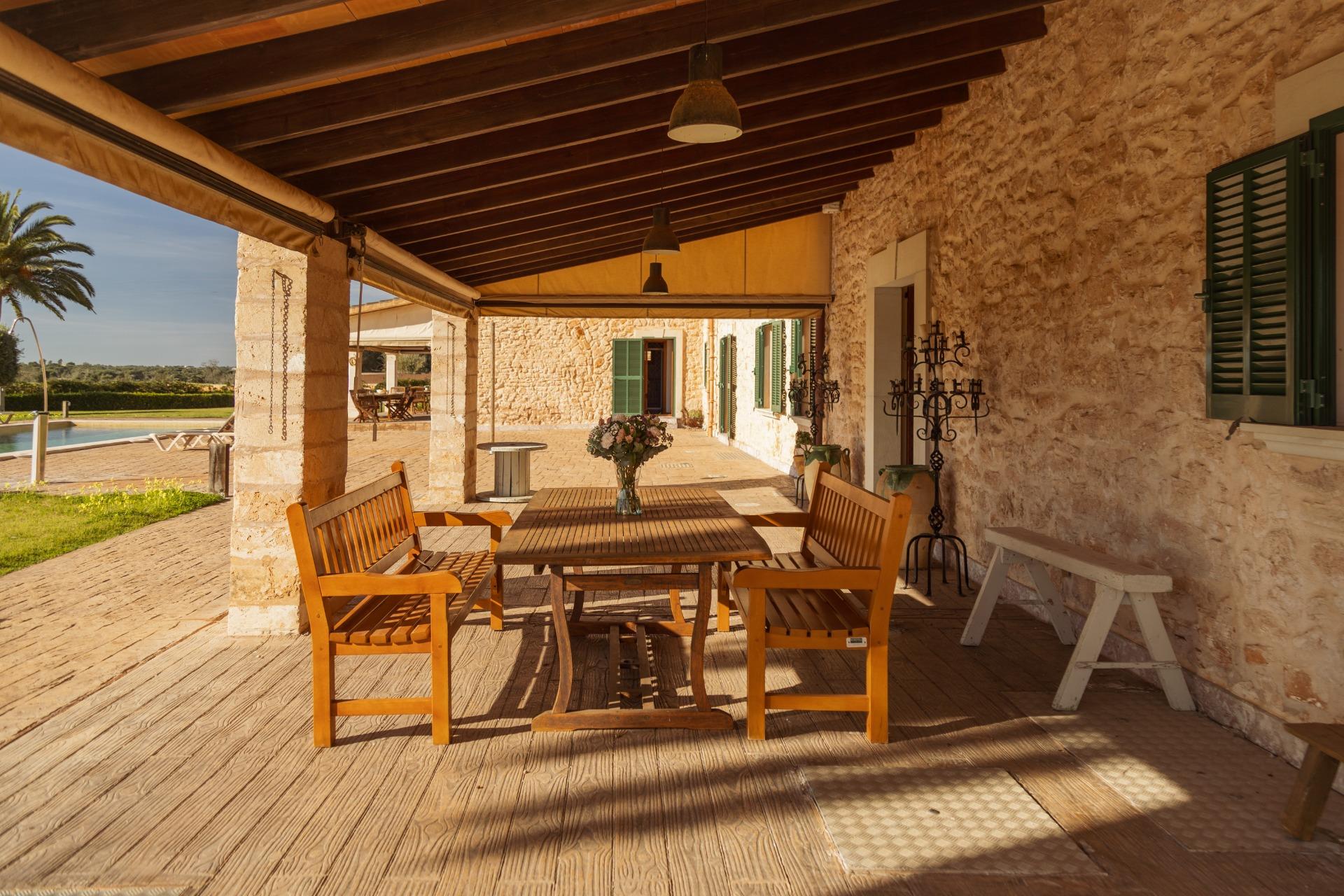 Charmantes Landhaus im mallorquinischen Stil, 8 Gehminuten vom Zentrum von Santanyí entfernt, mit Touristenvermietungslizenz für 8 Personen.~~Santanyí: In den letzten Jahren ist seine Beliebtheit und sein wohlverdienter Ruf stetig gewachsen, was es zu einem der meistbesuchten Dörfer der Insel macht. Berühmt für seine zwei Wochenmärkte, seine traditionelle Architektur und seine kulturellen Veranstaltungen. Darüber hinaus verfügt es über eine Küstenlinie mit paradiesischen, weißen Sandstränden und kristallklarem Wasser.~~Das Haus ist in traditioneller mallorquinischer Architektur gehalten und liegt am Rande des Dorfes auf einem 26.618 m² großen Grundstück. Es besteht aus einem freistehenden Einfamilienhaus mit Pool, mit einer Fläche von 517 m² auf zwei Etagen, einem 82 m² großen Pool, und 520 m² Terrassen. Innen- und Außenwände aus Stein. Die Küche und das Wohn-/Esszimmer befinden sich im Erdgeschoss, das über 1 Doppelzimmer mit Bad und ein zusätzliches Gäste-WC verfügt. Im ersten Stock befinden sich drei Doppelschlafzimmer, eines davon mit Bad en Suite und die anderen beiden mit Gemeinschaftsbad.~~Veranden 161 m². Gartenbereich mit 1.800 m² Rasen. 55 m² unterirdischer Maschinenraum. Im Jahr 2000 komplett renoviert, liegt eine Baugenehmigung für eine Erweiterung von ca. 150 m² vor. Stromanschluss. Legalisierter Süßwasserbrunnen. 1 Großraumzisterne für die Gartenbewässerung. 1 Zisterne für die Speicherung des Brauchwassers. Zentralheizung (Heizkörper) Öl. Pool mit Salzelektrolyse.~