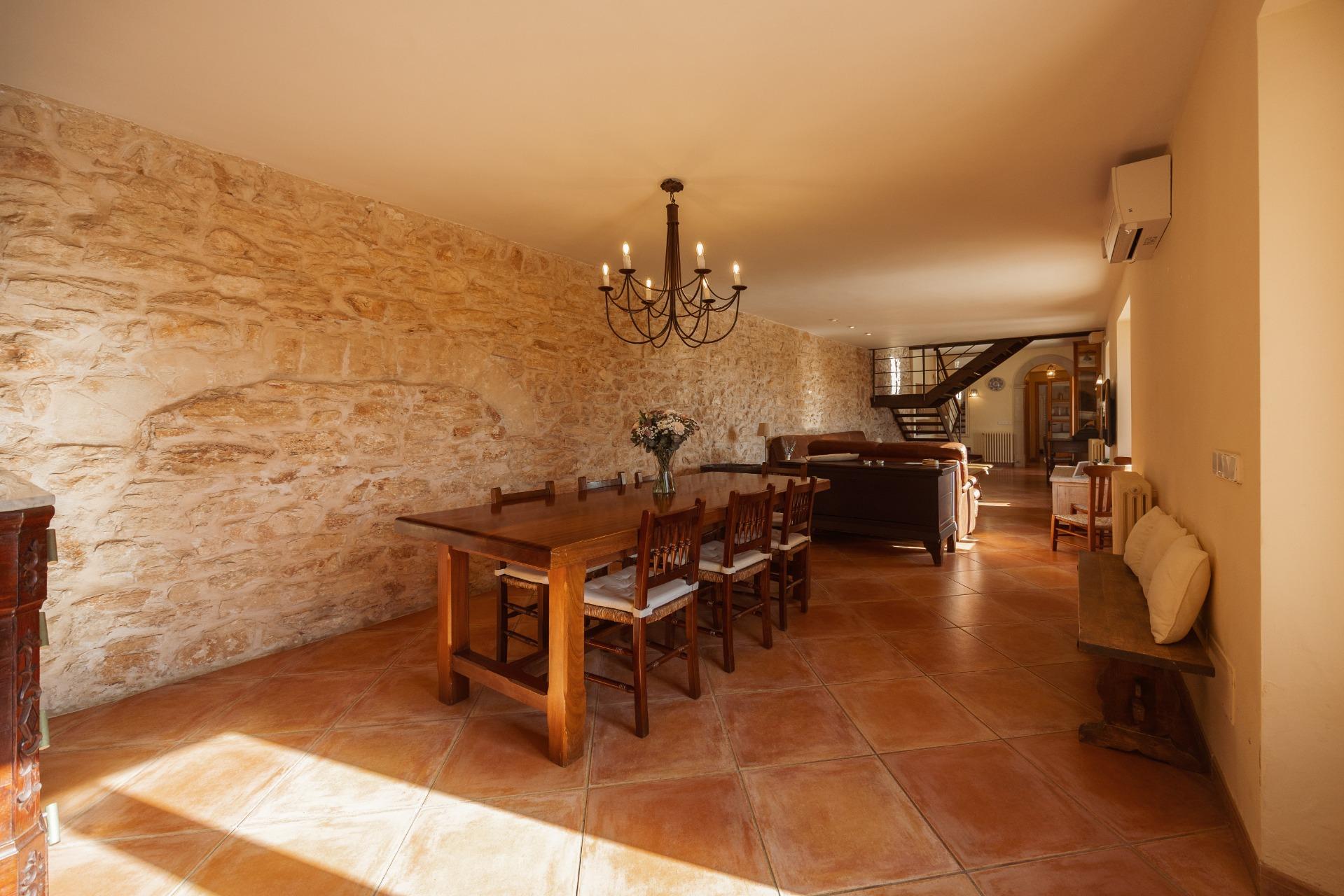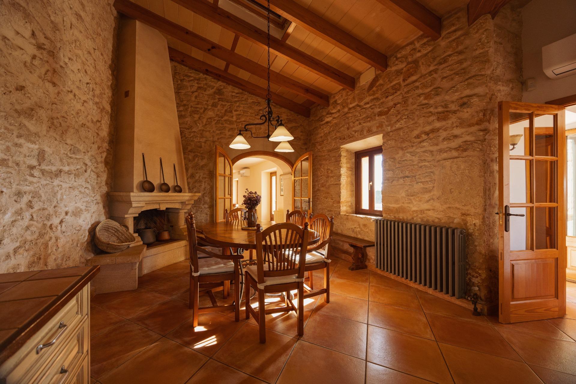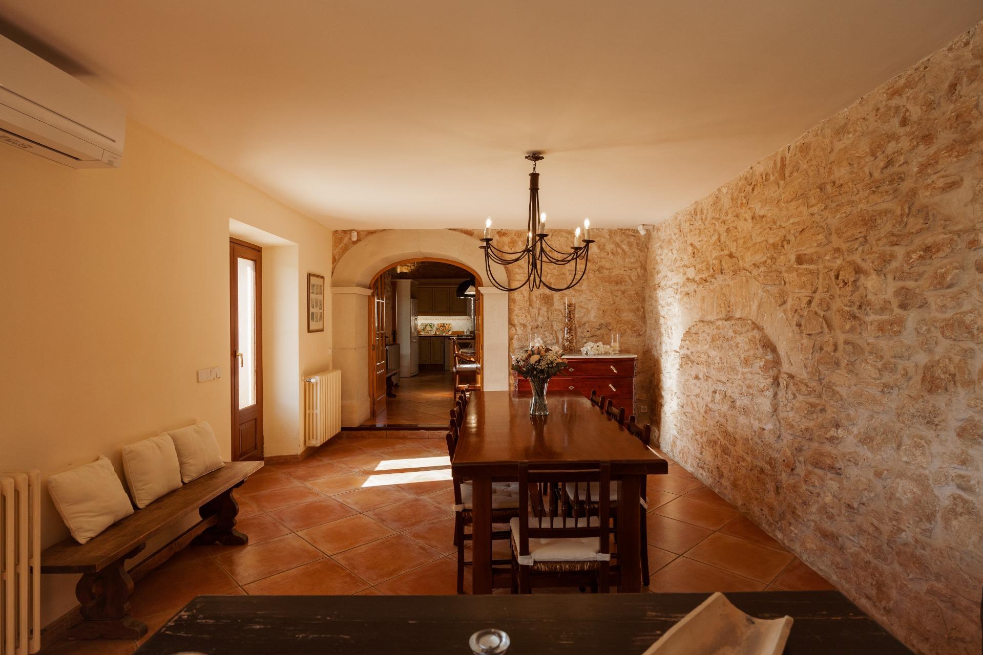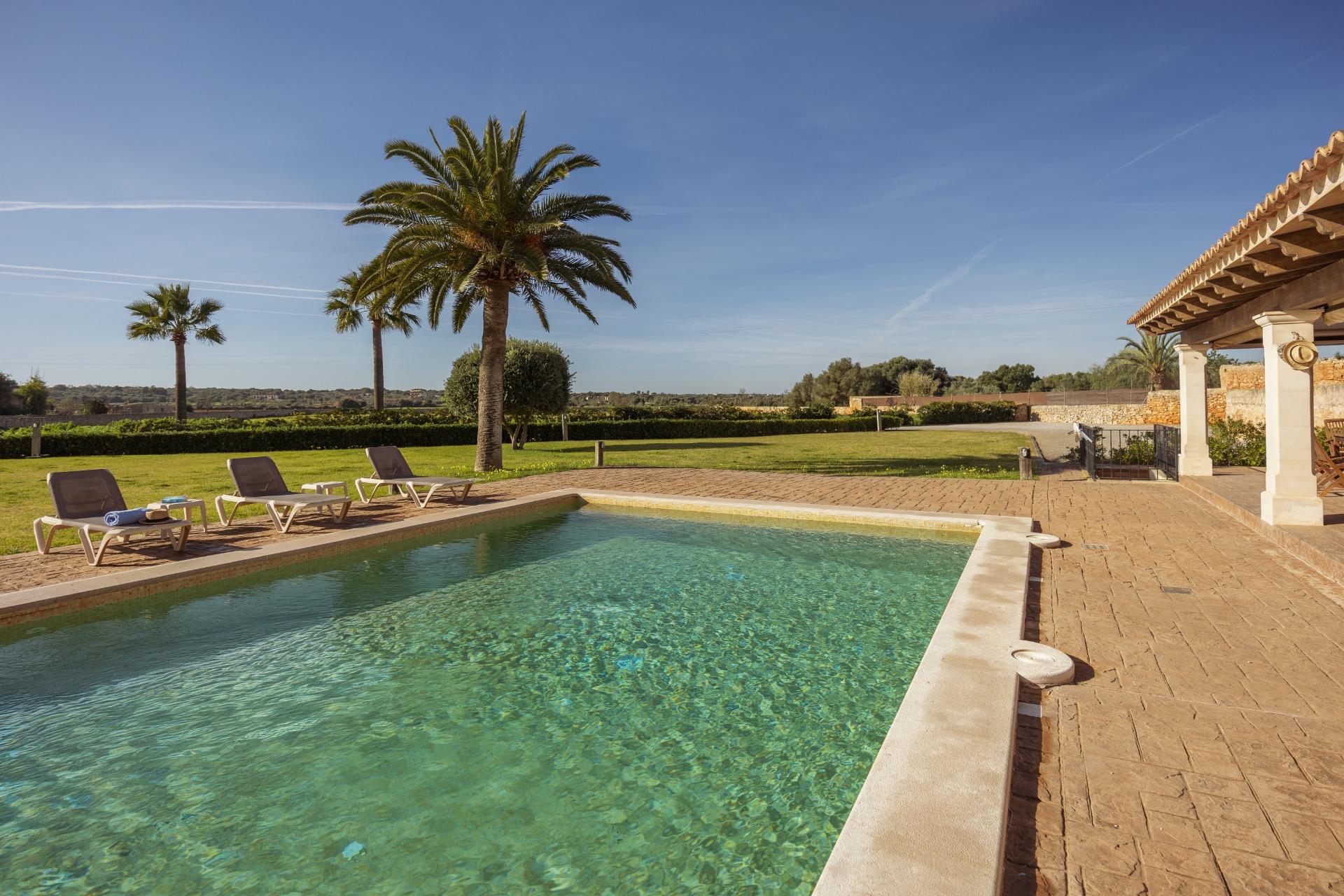 Charmantes Landhaus im mallorquinischen Stil, 8 Gehminuten vom Zentrum von Santanyí entfernt, mit Touristenvermietungslizenz für 8 Personen.~~Santanyí: In den letzten Jahren ist seine Beliebtheit und sein wohlverdienter Ruf stetig gewachsen, was es zu einem der meistbesuchten Dörfer der Insel macht. Berühmt für seine zwei Wochenmärkte, seine traditionelle Architektur und seine kulturellen Veranstaltungen. Darüber hinaus verfügt es über eine Küstenlinie mit paradiesischen, weißen Sandstränden und kristallklarem Wasser.~~Das Haus ist in traditioneller mallorquinischer Architektur gehalten und liegt am Rande des Dorfes auf einem 26.618 m² großen Grundstück. Es besteht aus einem freistehenden Einfamilienhaus mit Pool, mit einer Fläche von 517 m² auf zwei Etagen, einem 82 m² großen Pool, und 520 m² Terrassen. Innen- und Außenwände aus Stein. Die Küche und das Wohn-/Esszimmer befinden sich im Erdgeschoss, das über 1 Doppelzimmer mit Bad und ein zusätzliches Gäste-WC verfügt. Im ersten Stock befinden sich drei Doppelschlafzimmer, eines davon mit Bad en Suite und die anderen beiden mit Gemeinschaftsbad.~~Veranden 161 m². Gartenbereich mit 1.800 m² Rasen. 55 m² unterirdischer Maschinenraum. Im Jahr 2000 komplett renoviert, liegt eine Baugenehmigung für eine Erweiterung von ca. 150 m² vor. Stromanschluss. Legalisierter Süßwasserbrunnen. 1 Großraumzisterne für die Gartenbewässerung. 1 Zisterne für die Speicherung des Brauchwassers. Zentralheizung (Heizkörper) Öl. Pool mit Salzelektrolyse.~
