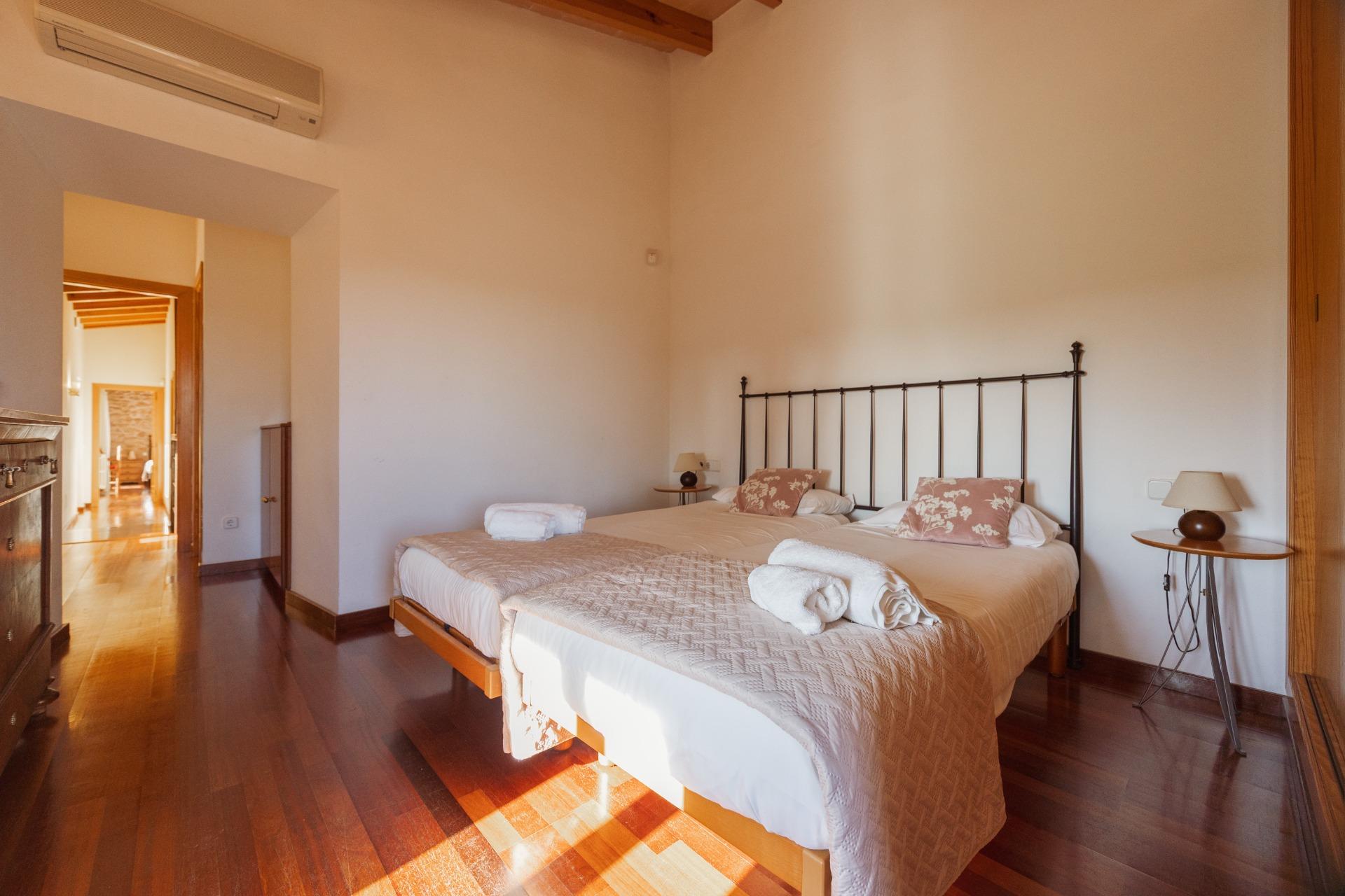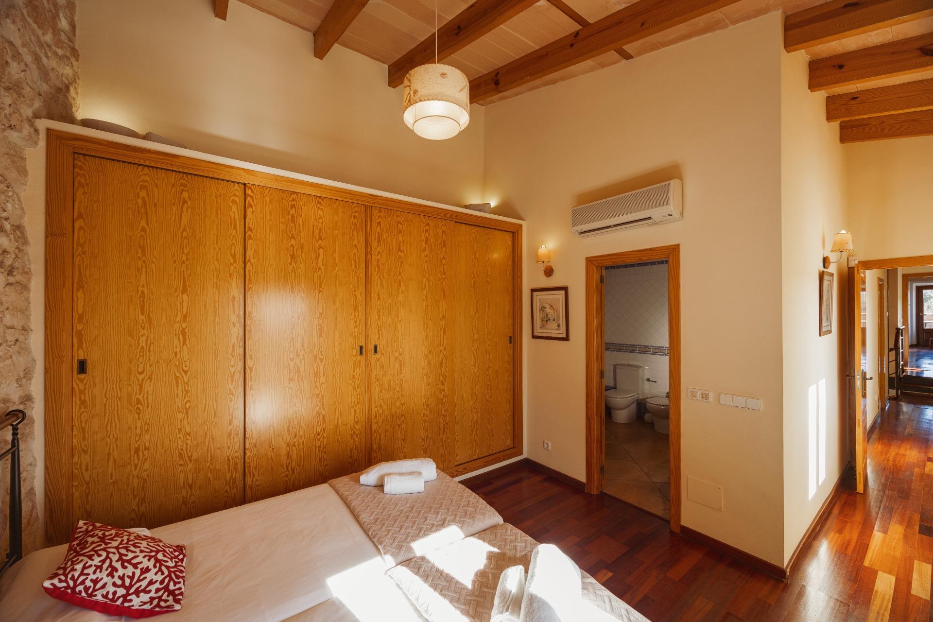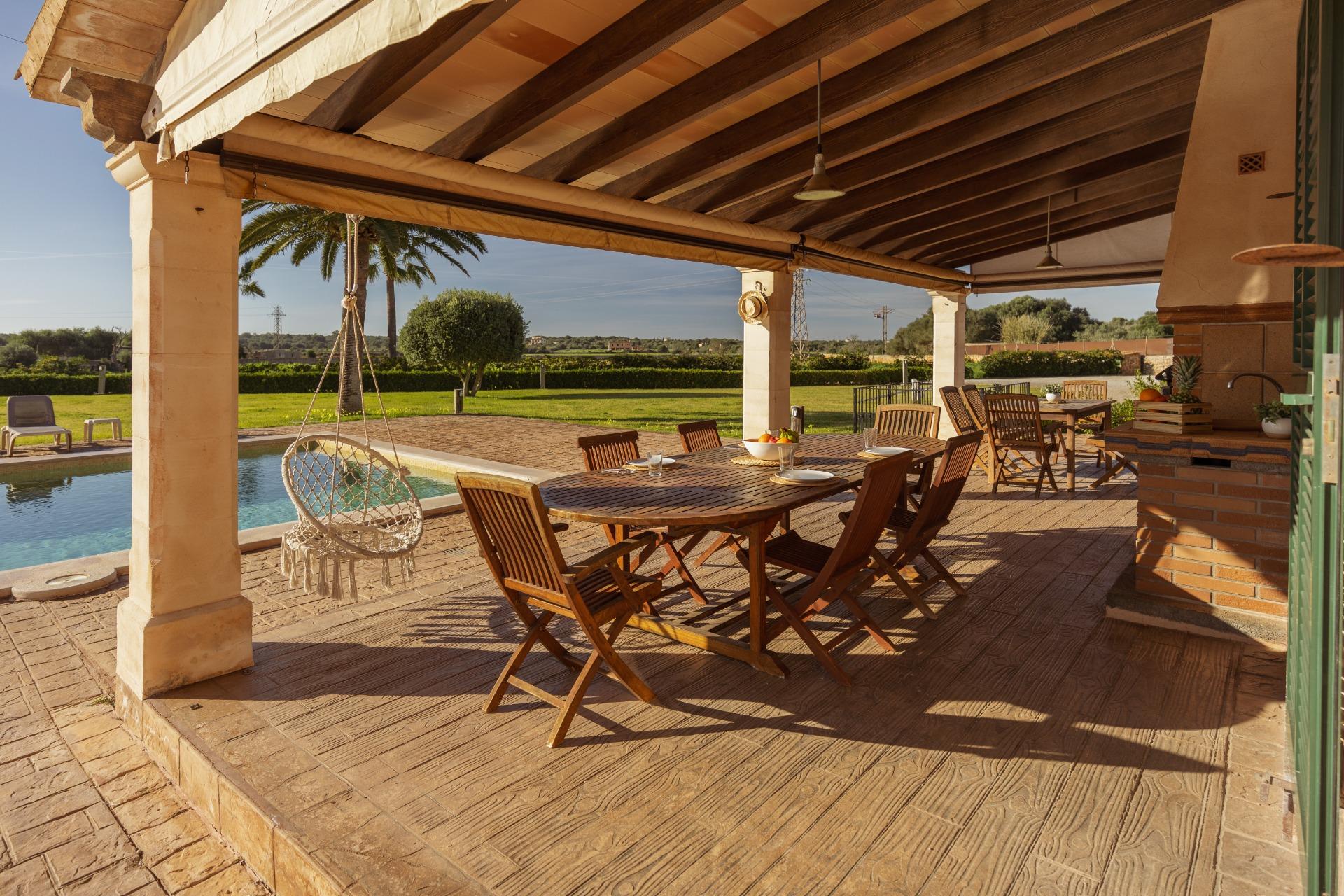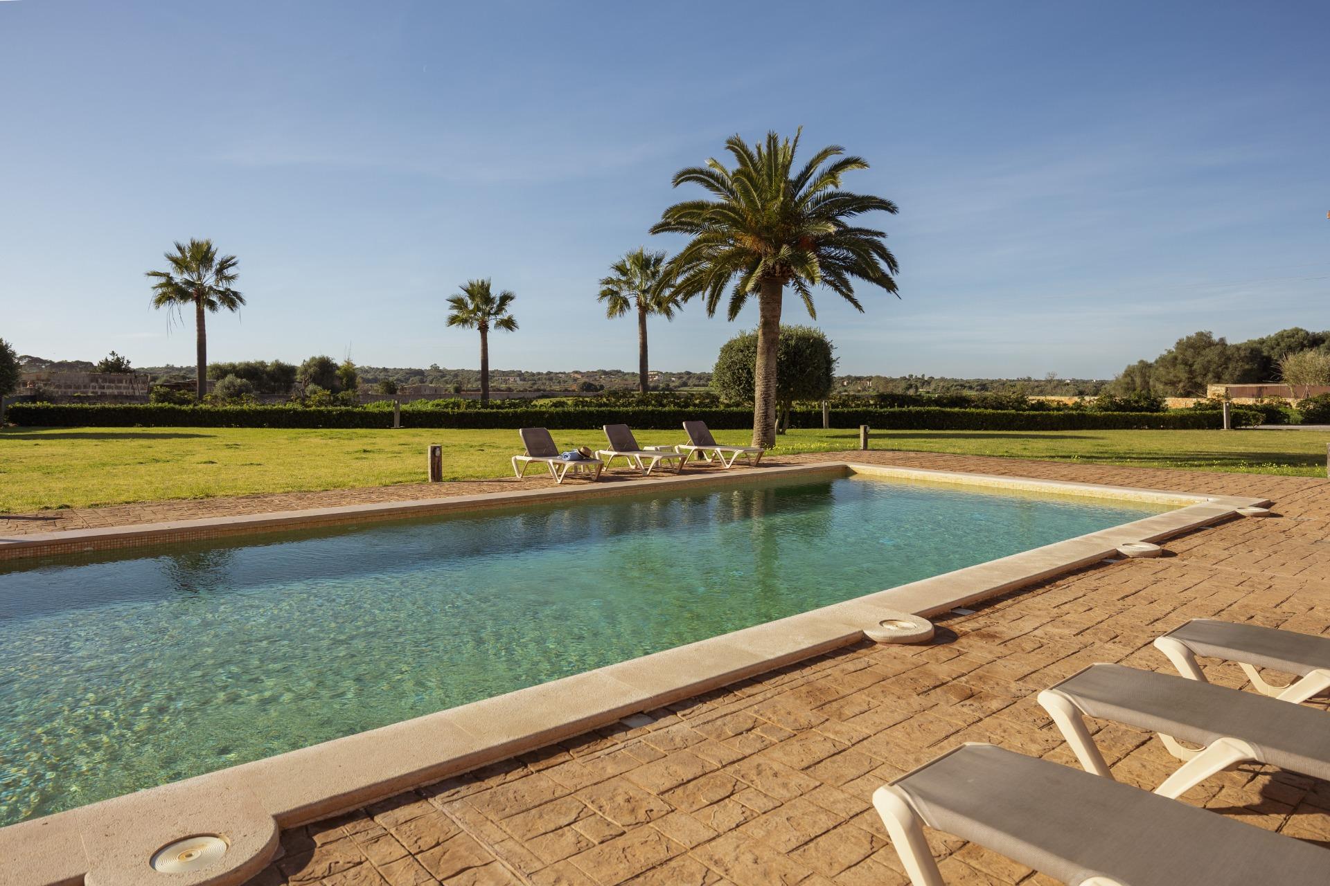 Charmantes Landhaus im mallorquinischen Stil, 8 Gehminuten vom Zentrum von Santanyí entfernt, mit Touristenvermietungslizenz für 8 Personen.~~Santanyí: In den letzten Jahren ist seine Beliebtheit und sein wohlverdienter Ruf stetig gewachsen, was es zu einem der meistbesuchten Dörfer der Insel macht. Berühmt für seine zwei Wochenmärkte, seine traditionelle Architektur und seine kulturellen Veranstaltungen. Darüber hinaus verfügt es über eine Küstenlinie mit paradiesischen, weißen Sandstränden und kristallklarem Wasser.~~Das Haus ist in traditioneller mallorquinischer Architektur gehalten und liegt am Rande des Dorfes auf einem 26.618 m² großen Grundstück. Es besteht aus einem freistehenden Einfamilienhaus mit Pool, mit einer Fläche von 517 m² auf zwei Etagen, einem 82 m² großen Pool, und 520 m² Terrassen. Innen- und Außenwände aus Stein. Die Küche und das Wohn-/Esszimmer befinden sich im Erdgeschoss, das über 1 Doppelzimmer mit Bad und ein zusätzliches Gäste-WC verfügt. Im ersten Stock befinden sich drei Doppelschlafzimmer, eines davon mit Bad en Suite und die anderen beiden mit Gemeinschaftsbad.~~Veranden 161 m². Gartenbereich mit 1.800 m² Rasen. 55 m² unterirdischer Maschinenraum. Im Jahr 2000 komplett renoviert, liegt eine Baugenehmigung für eine Erweiterung von ca. 150 m² vor. Stromanschluss. Legalisierter Süßwasserbrunnen. 1 Großraumzisterne für die Gartenbewässerung. 1 Zisterne für die Speicherung des Brauchwassers. Zentralheizung (Heizkörper) Öl. Pool mit Salzelektrolyse.~