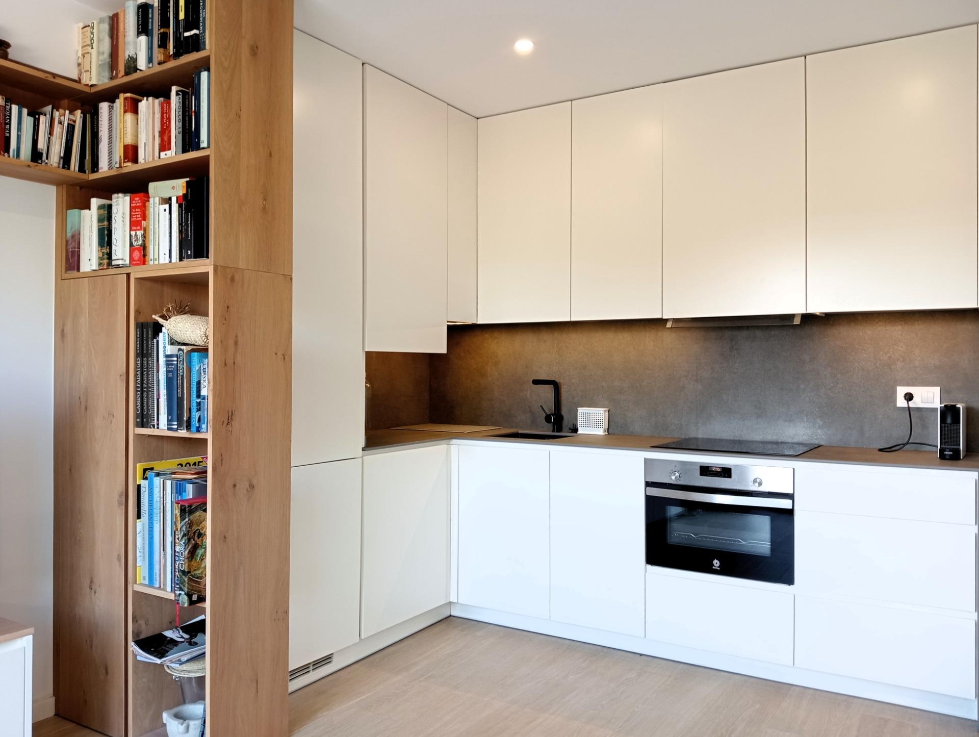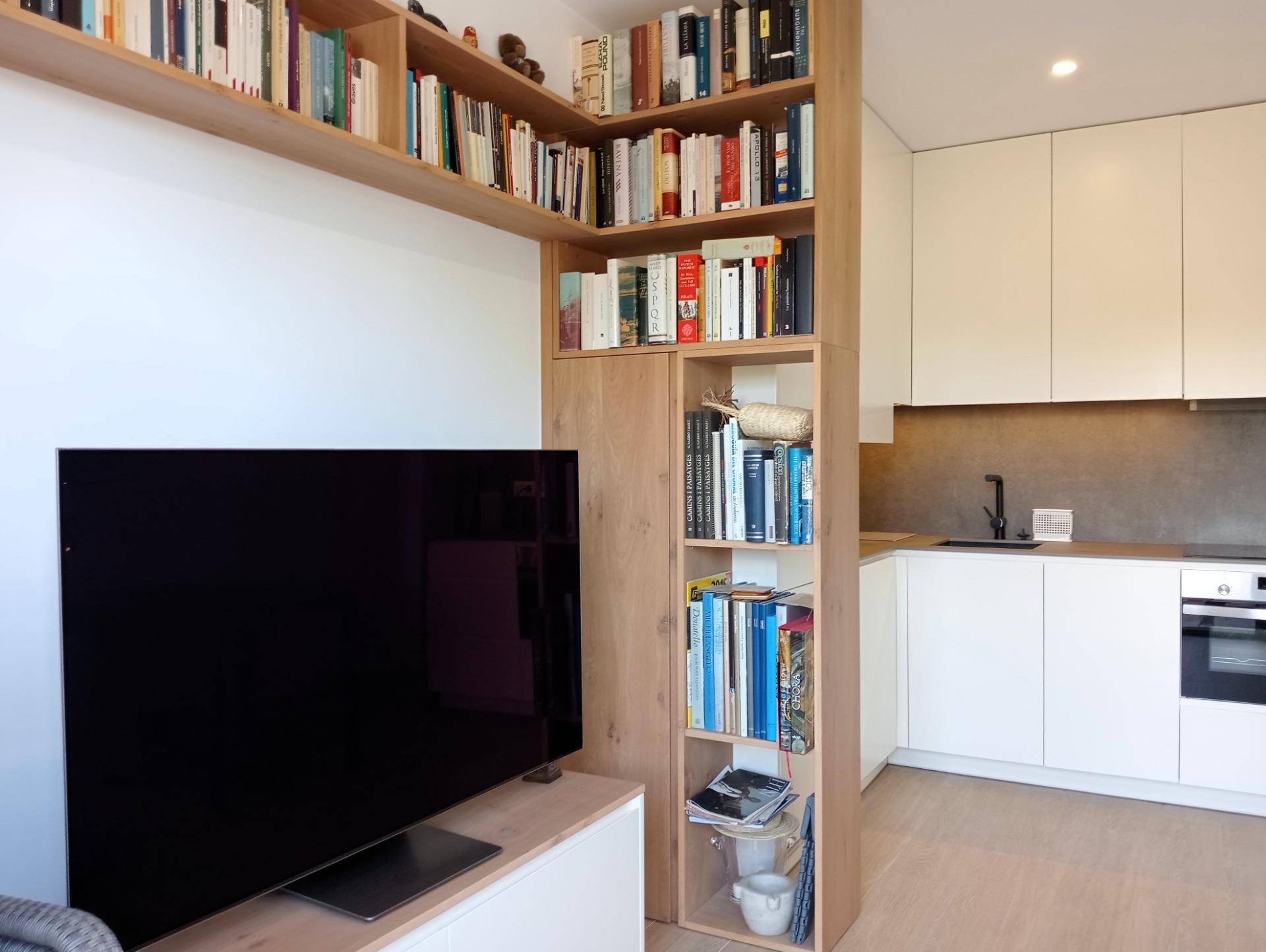 Aufteilung: 1 Doppelzimmer, 1 modernes Badezimmer und ein offener Wohn-Küchenbereich, der den Raum optimal nutzt.