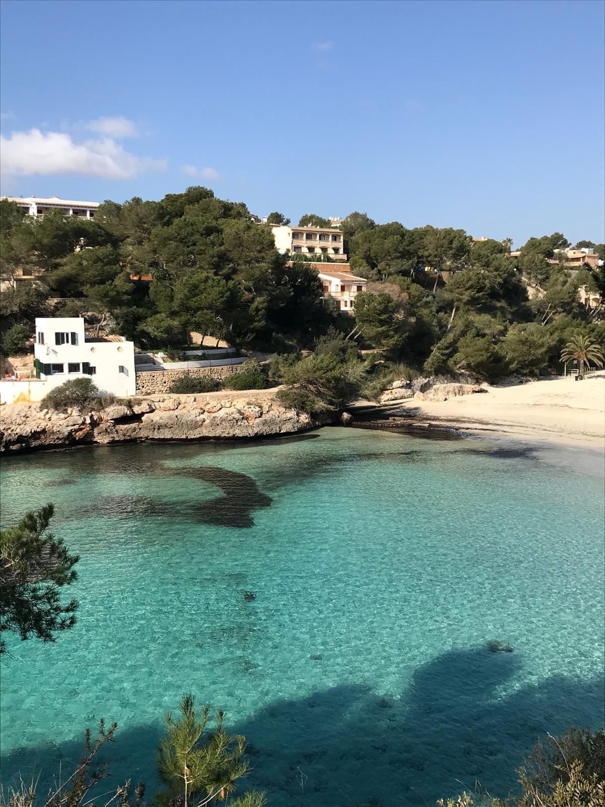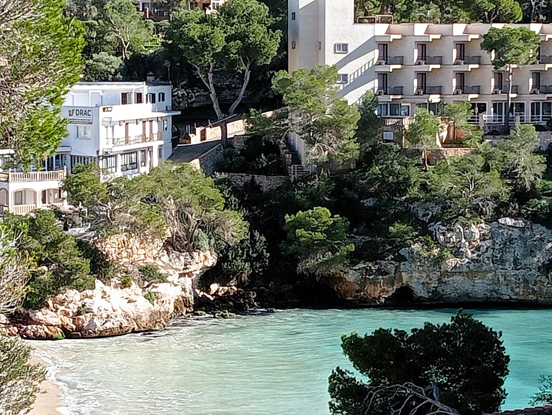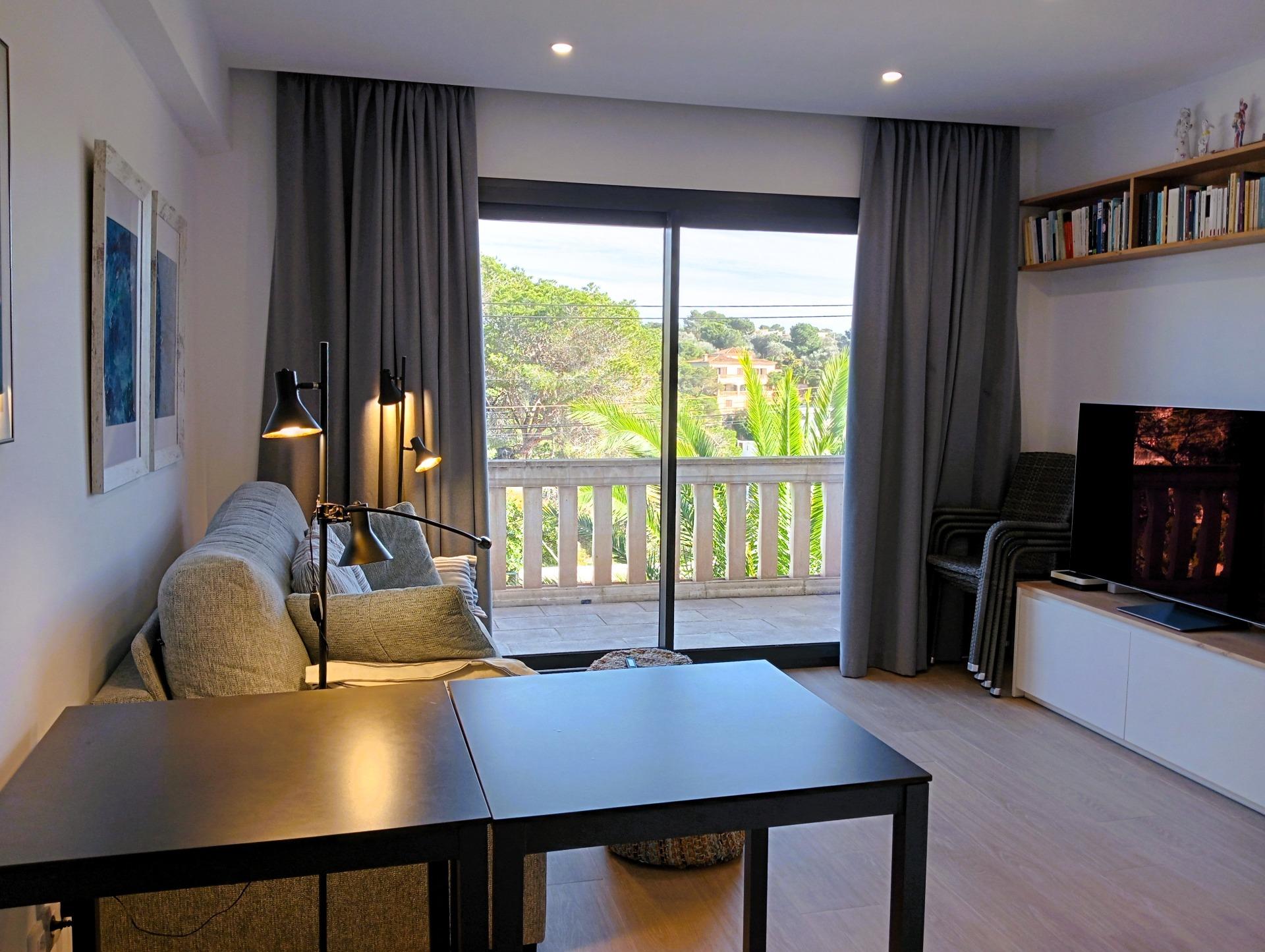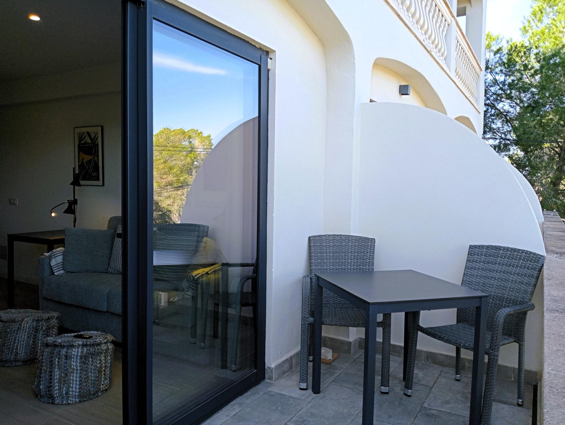 Direkte Verbindung zum Mittelmeer Das Herzstück dieses Zuhauses ist das Wohnzimmer, das auf eine private Terrasse mit freiem Blick auf das türkisblaue Wasser der Bucht von Cala Santanyí führt. Dank der strategischen Ausrichtung genießt das Apartment die Morgensonne – perfekt für viel natürliches Licht, ohne die intensive Sommerhitze am Nachmittag.