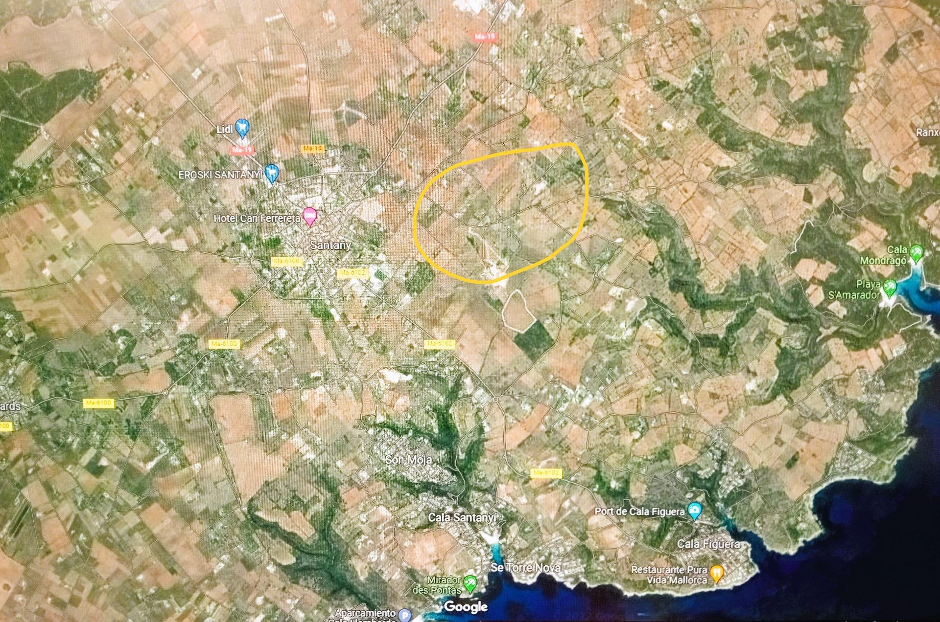 Fincagrundstück in der Nähe von Santanyí. Der Zugang erfolgt über eine ruhige asphaltierte Straße und ist leicht mit dem Fahrrad zu bewältigen (der Marktplatz ist etwa 1500 Meter entfernt). Es gibt ein Bau-Projekt für ein Haus von 232 m2, das aber bis zu 515 m2 erweitert werden kann. Die Liegenschaft verfügt bereits über Stromanschluss und Wasserversorgung. Die Pläne sind für ein mallorquinisches Landhaus mit insgesamt 4 Schlafzimmern über zwei Etagen, Pool und Terrassen. Die ganze Grundstück ist mit traditionellen Steinmauern umgeben.~