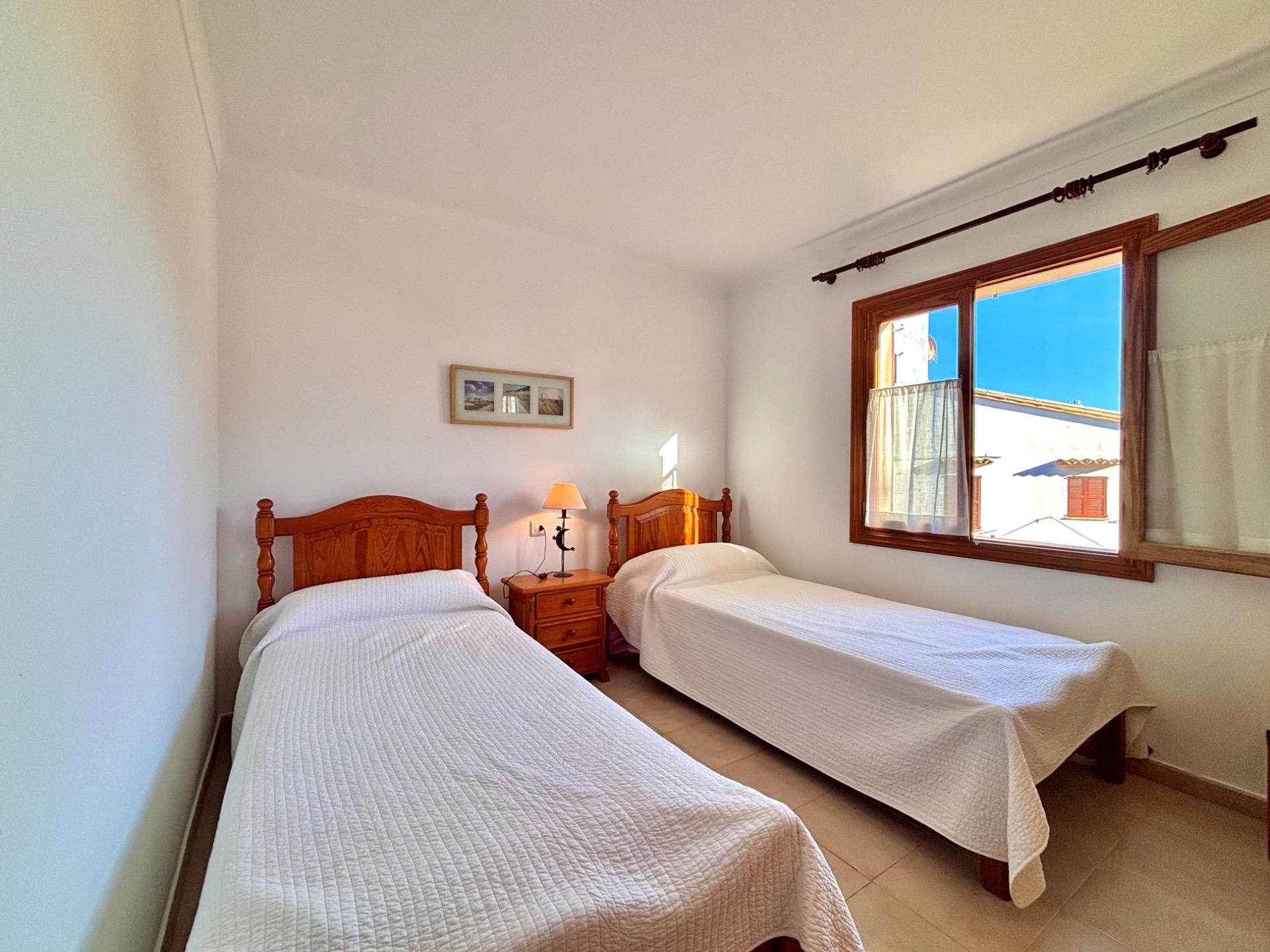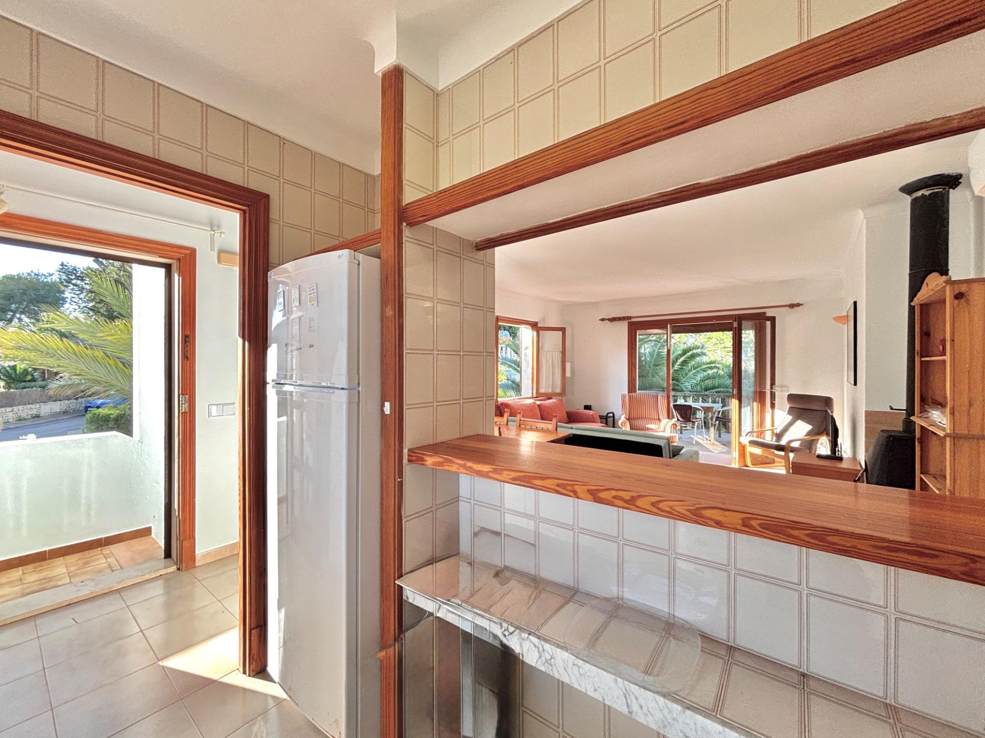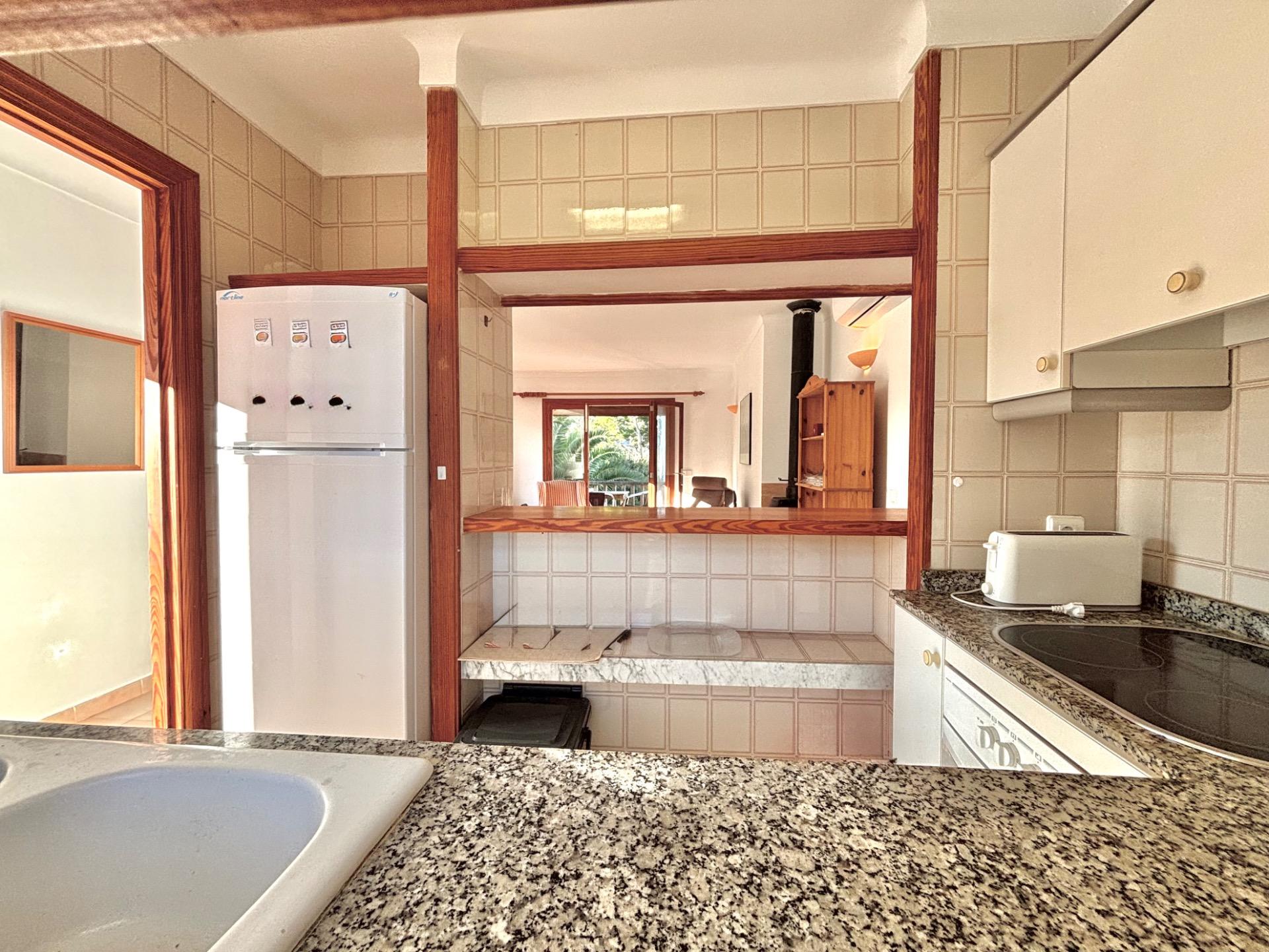 Die möblierte Wohnung befindet sich im ersten Stock einer Wohnanlage mit mehreren Apartments, die sich einen Gemeinschaftspool teilen.~Sie verfügt über eine kleine offene Küche, die in den hellen Wohn- und Essbereich mit Kamin übergeht und direkten Zugang zu einer großen Terrasse mit Blick auf den Pool bietet. Die Wohnung hat zwei Schlafzimmer und ein Badezimmer mit Dusche.~Die Waschmaschine und der elektrische Warmwasserboiler befinden sich in einem separaten Außenbereich. Kürzlich wurde in allen Räumen eine Klimaanlage installiert.~Der schöne Strand Cala Santanyí ist in wenigen Schritten erreichbar, einfach die Straße hinunter.~