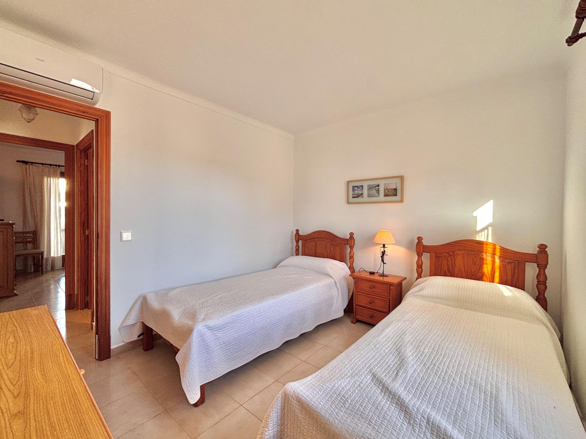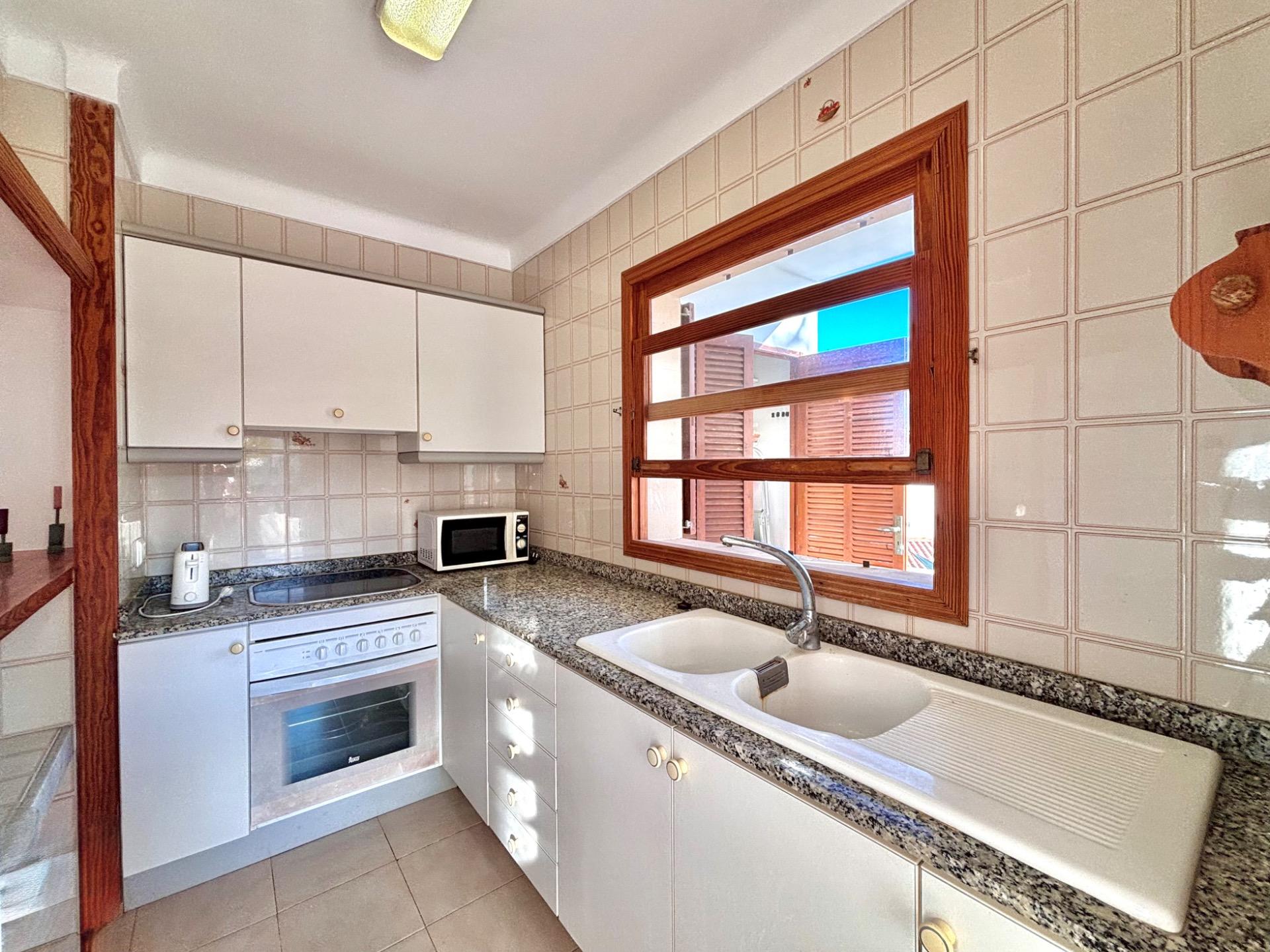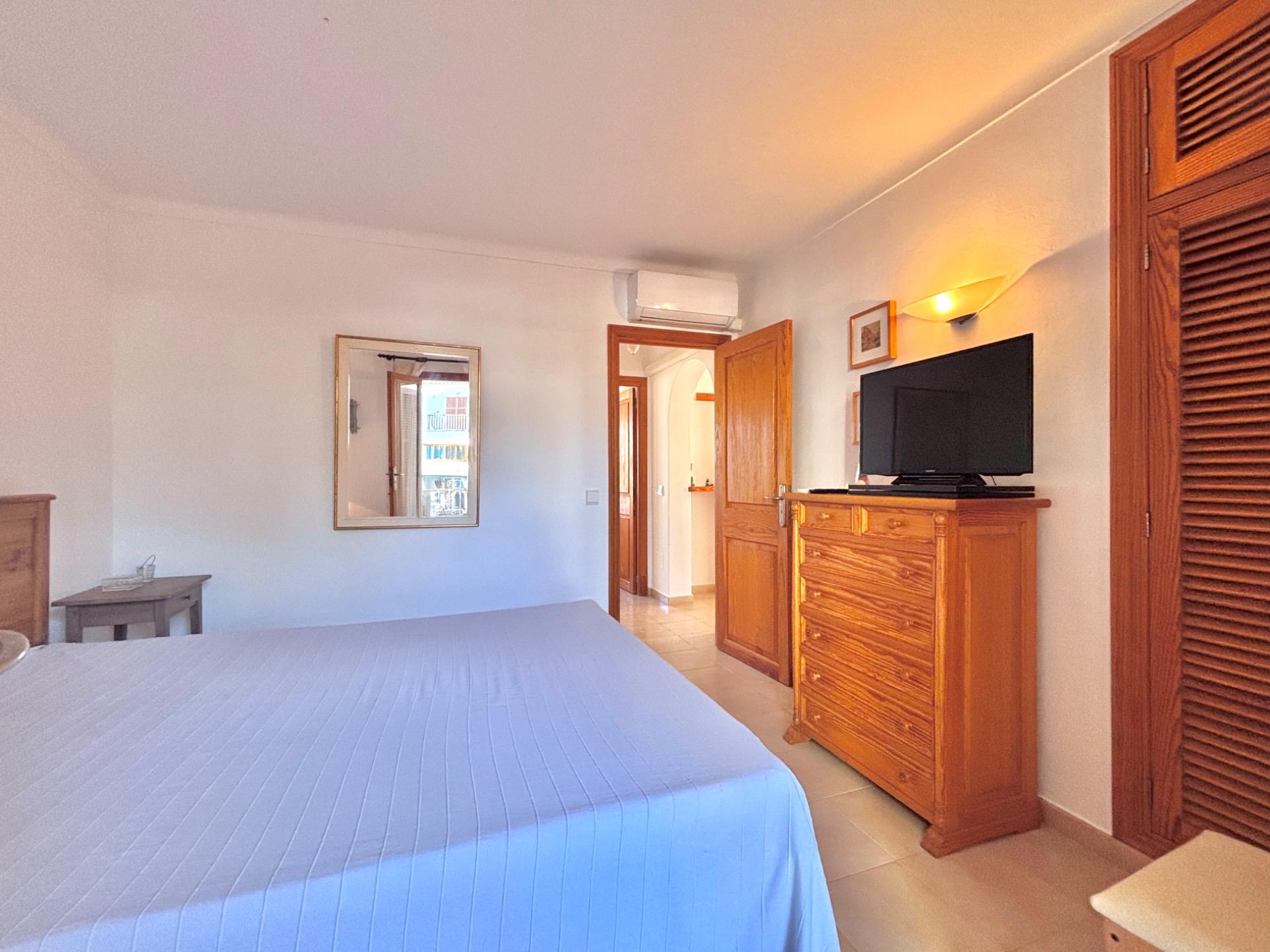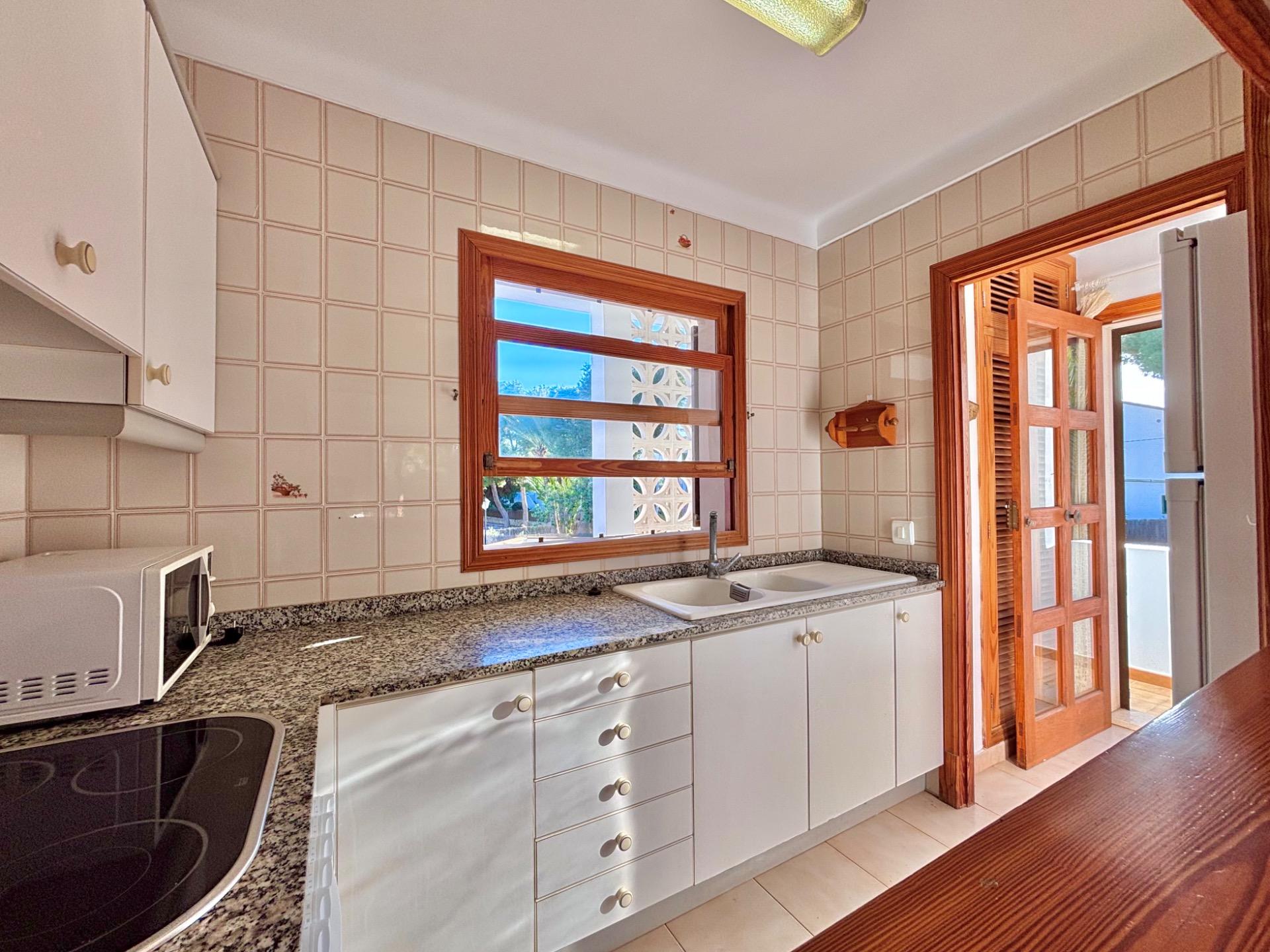 Die möblierte Wohnung befindet sich im ersten Stock einer Wohnanlage mit mehreren Apartments, die sich einen Gemeinschaftspool teilen.~Sie verfügt über eine kleine offene Küche, die in den hellen Wohn- und Essbereich mit Kamin übergeht und direkten Zugang zu einer großen Terrasse mit Blick auf den Pool bietet. Die Wohnung hat zwei Schlafzimmer und ein Badezimmer mit Dusche.~Die Waschmaschine und der elektrische Warmwasserboiler befinden sich in einem separaten Außenbereich. Kürzlich wurde in allen Räumen eine Klimaanlage installiert.~Der schöne Strand Cala Santanyí ist in wenigen Schritten erreichbar, einfach die Straße hinunter.~
