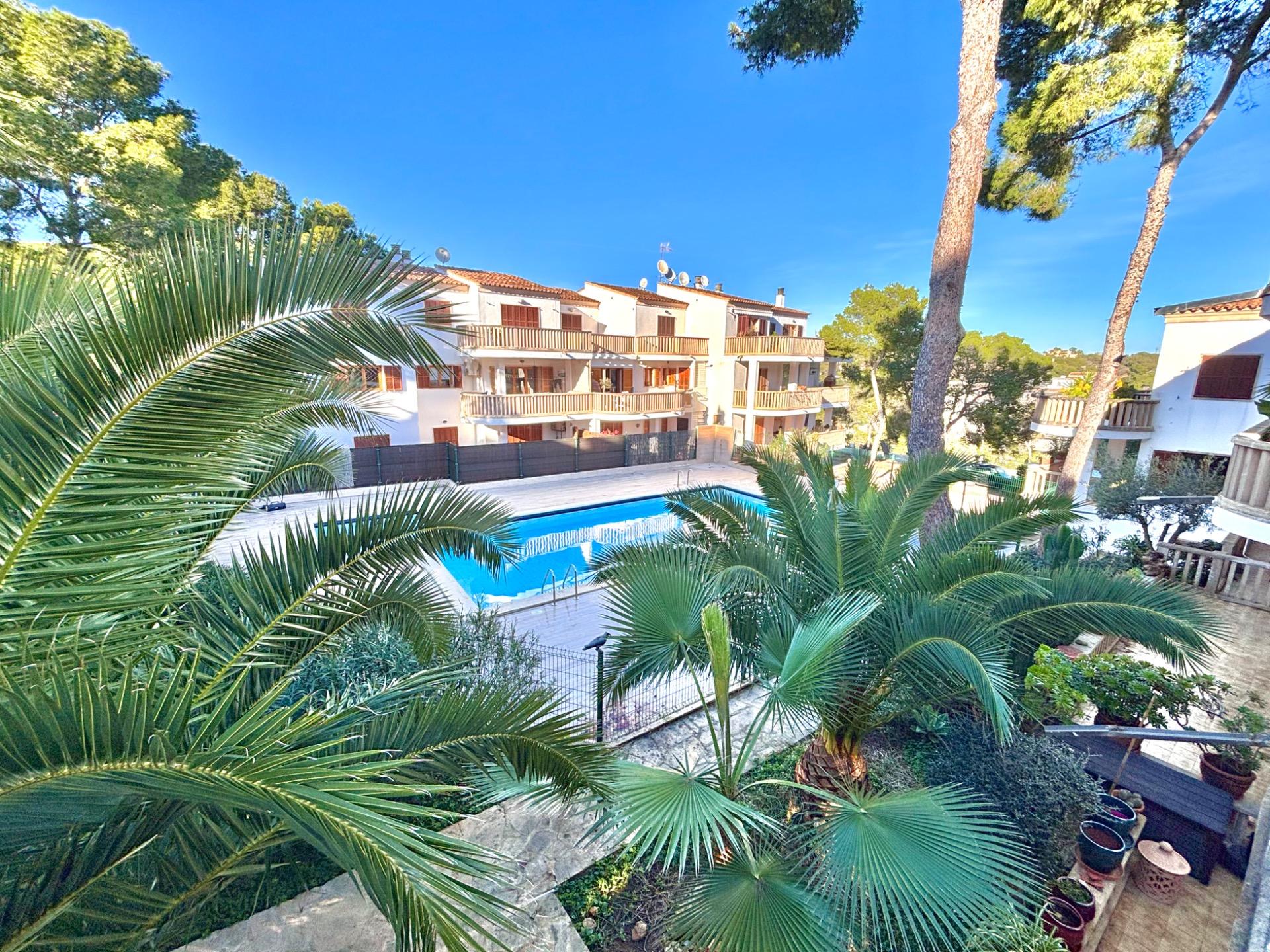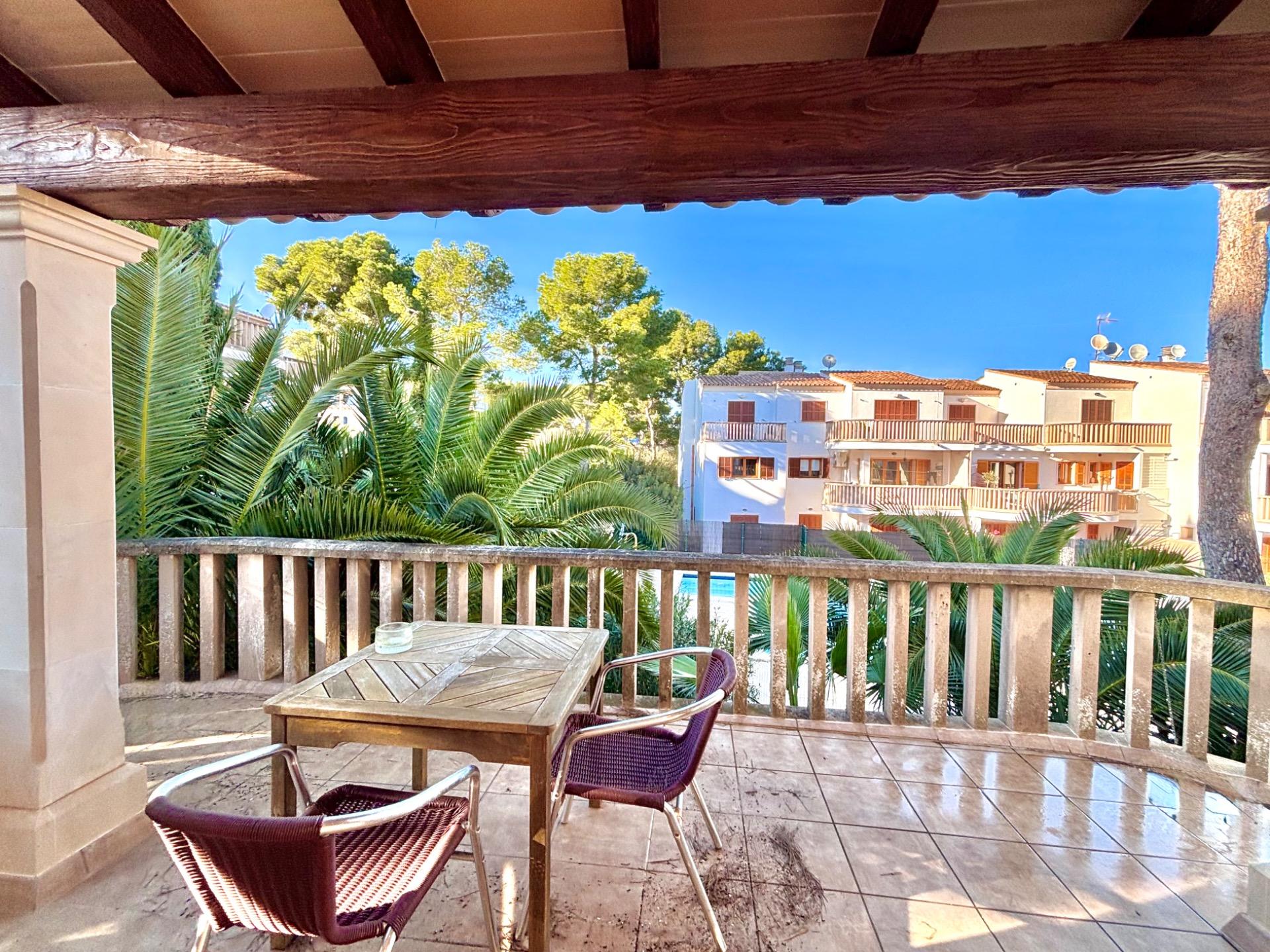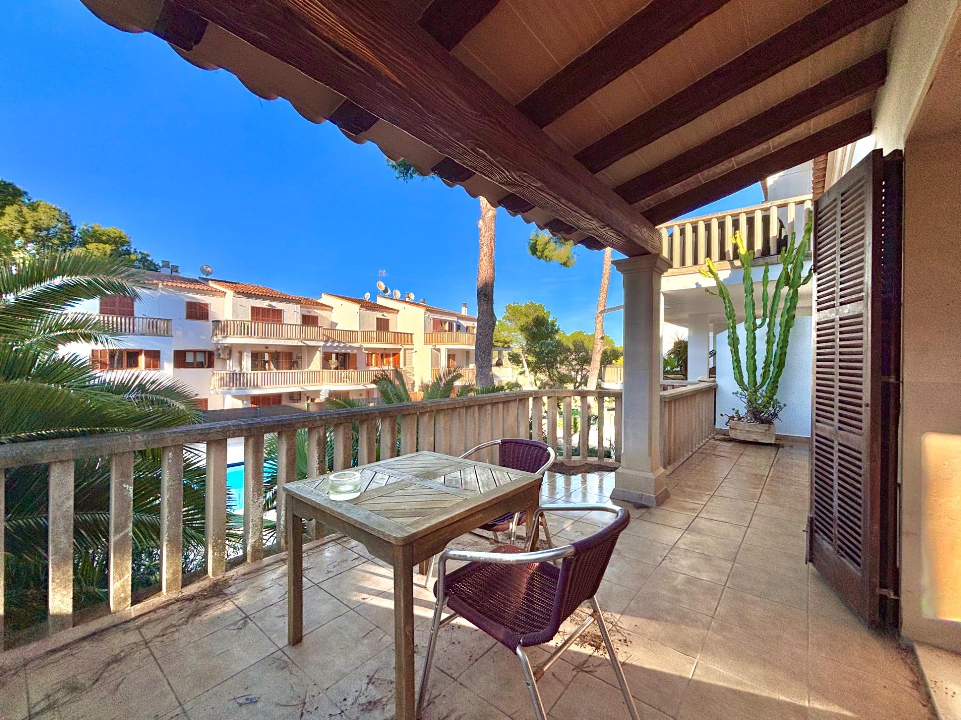 Schöne und helle Wohnung mit großer Terrasse und Blick auf den Gemeinschaftspool, nur wenige Schritte vom Strand Cala Santanyí entfernt.