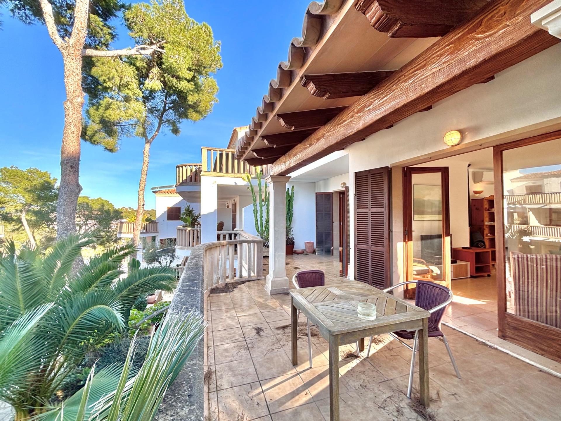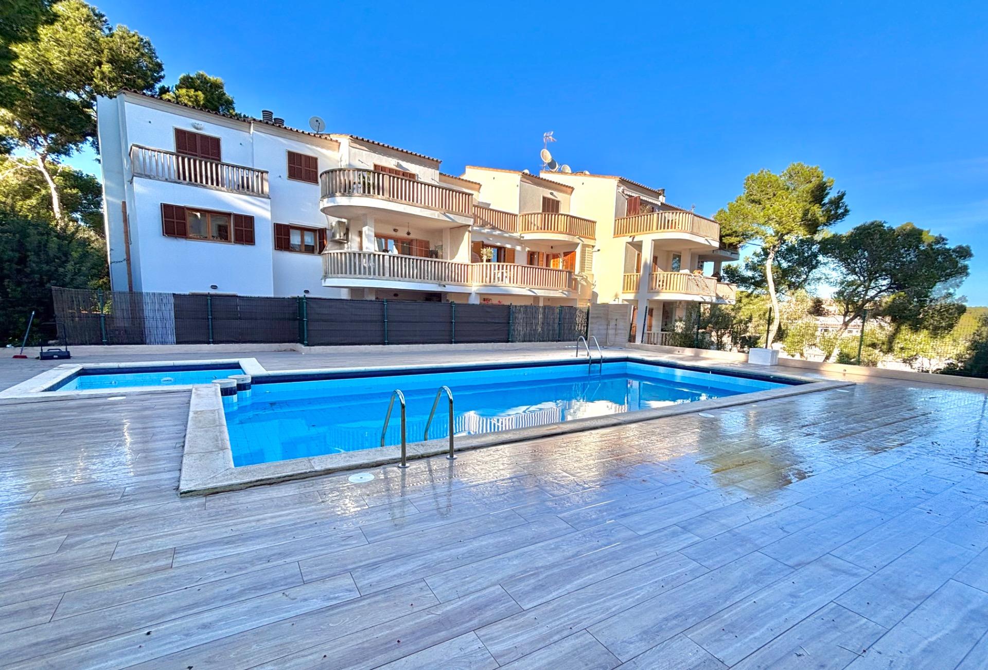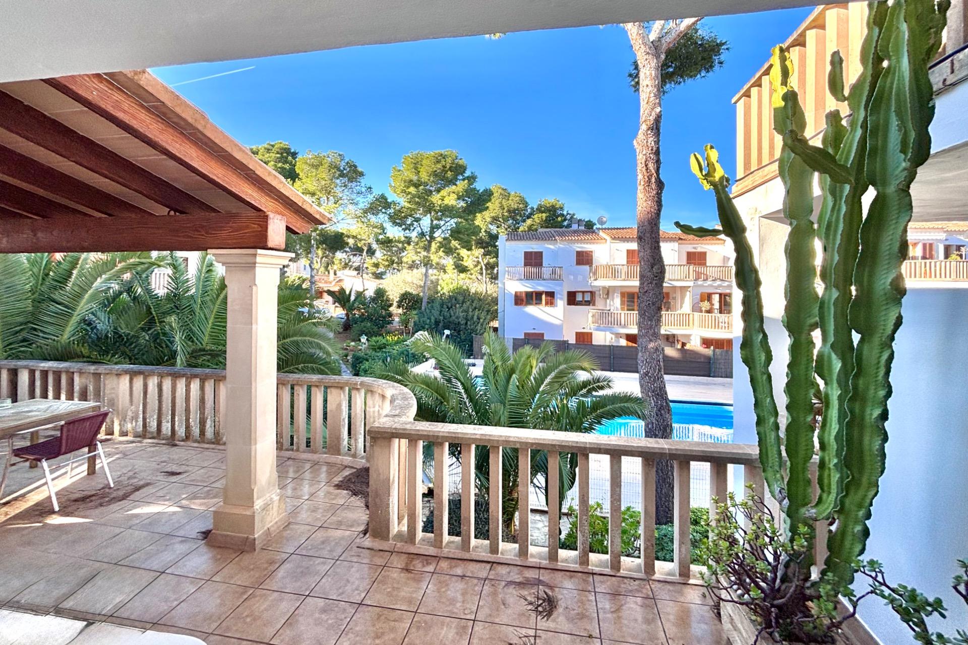 Schöne und helle Wohnung mit großer Terrasse und Blick auf den Gemeinschaftspool, nur wenige Schritte vom Strand Cala Santanyí entfernt.