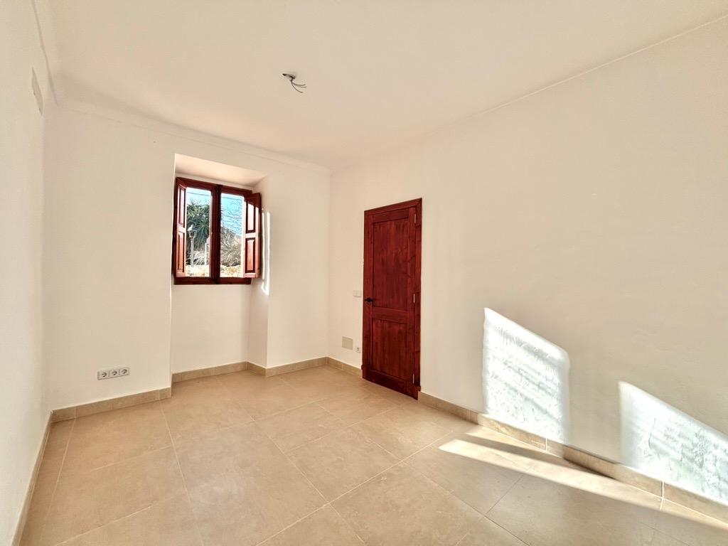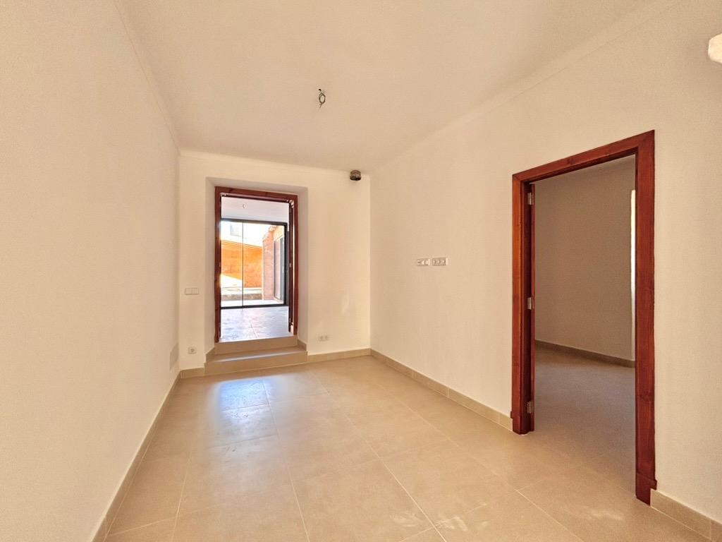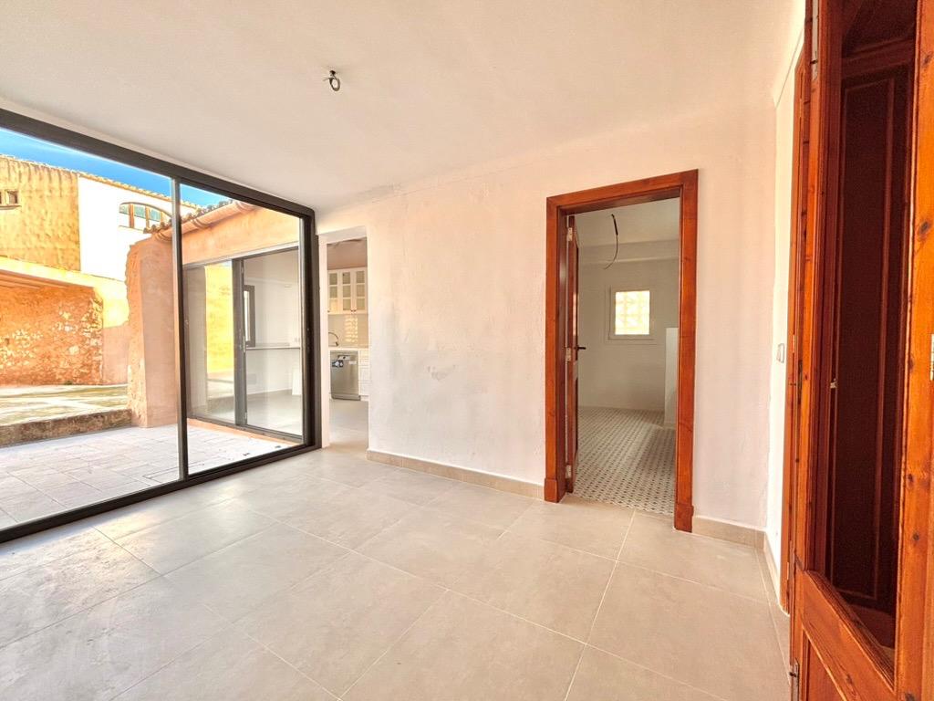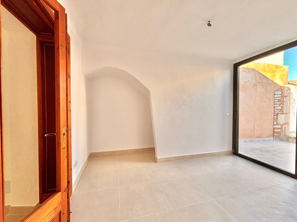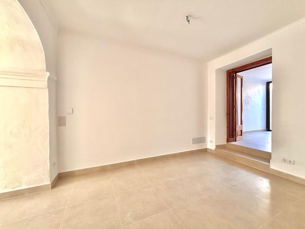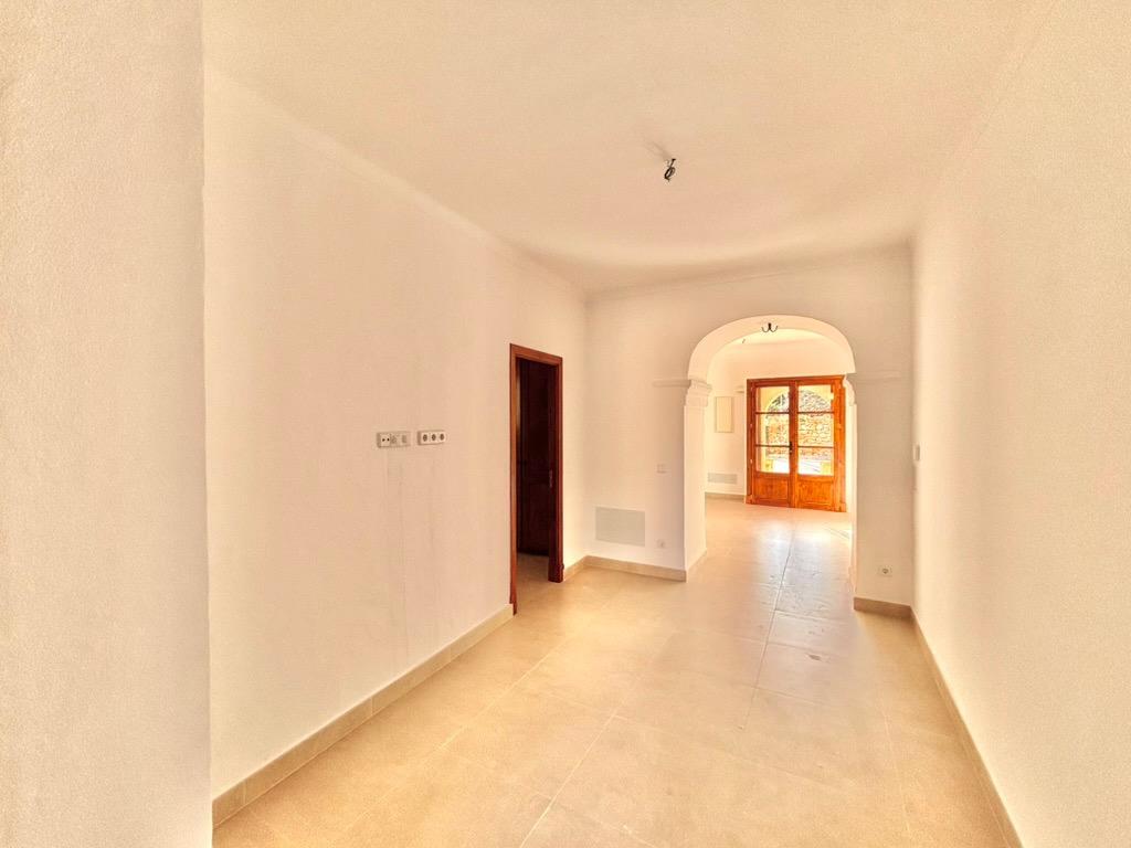 This beautiful and bright, newly renovated ground floor apartment is located in the charming village of Es Llombards. The property features lovely character details such as a wooden entrance door, an arched separation between spaces, and natural stone walls.