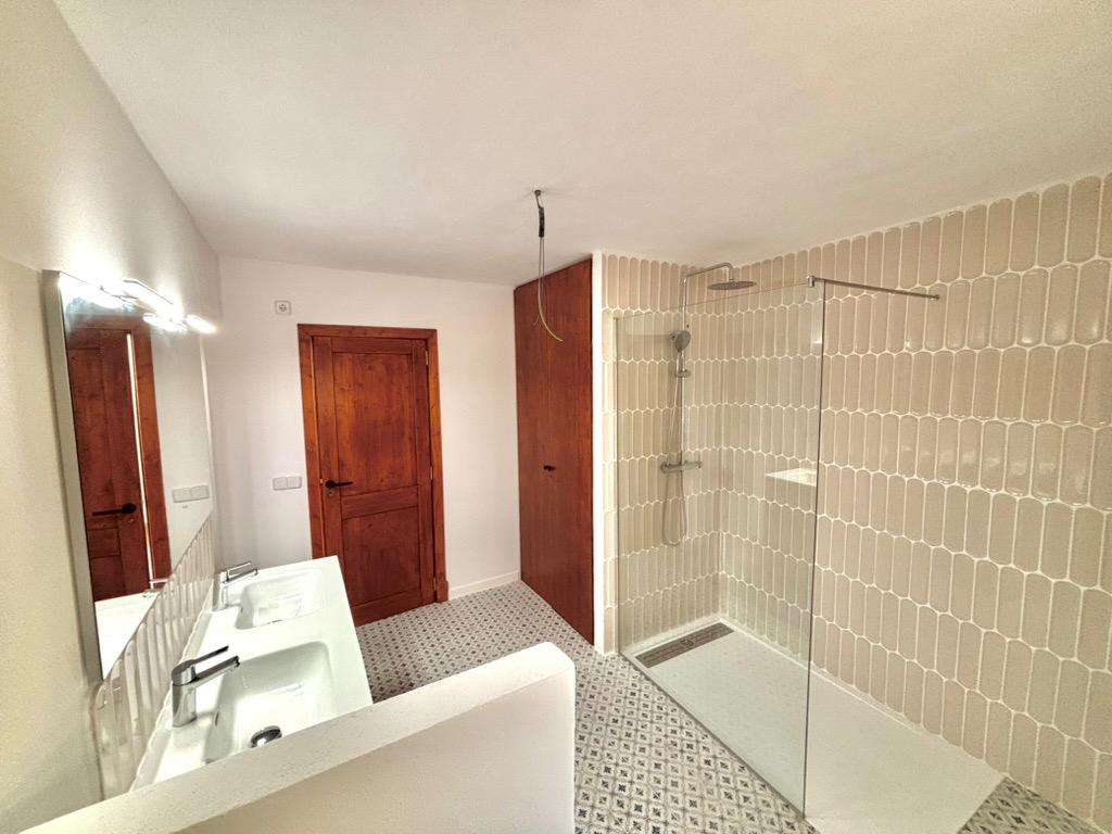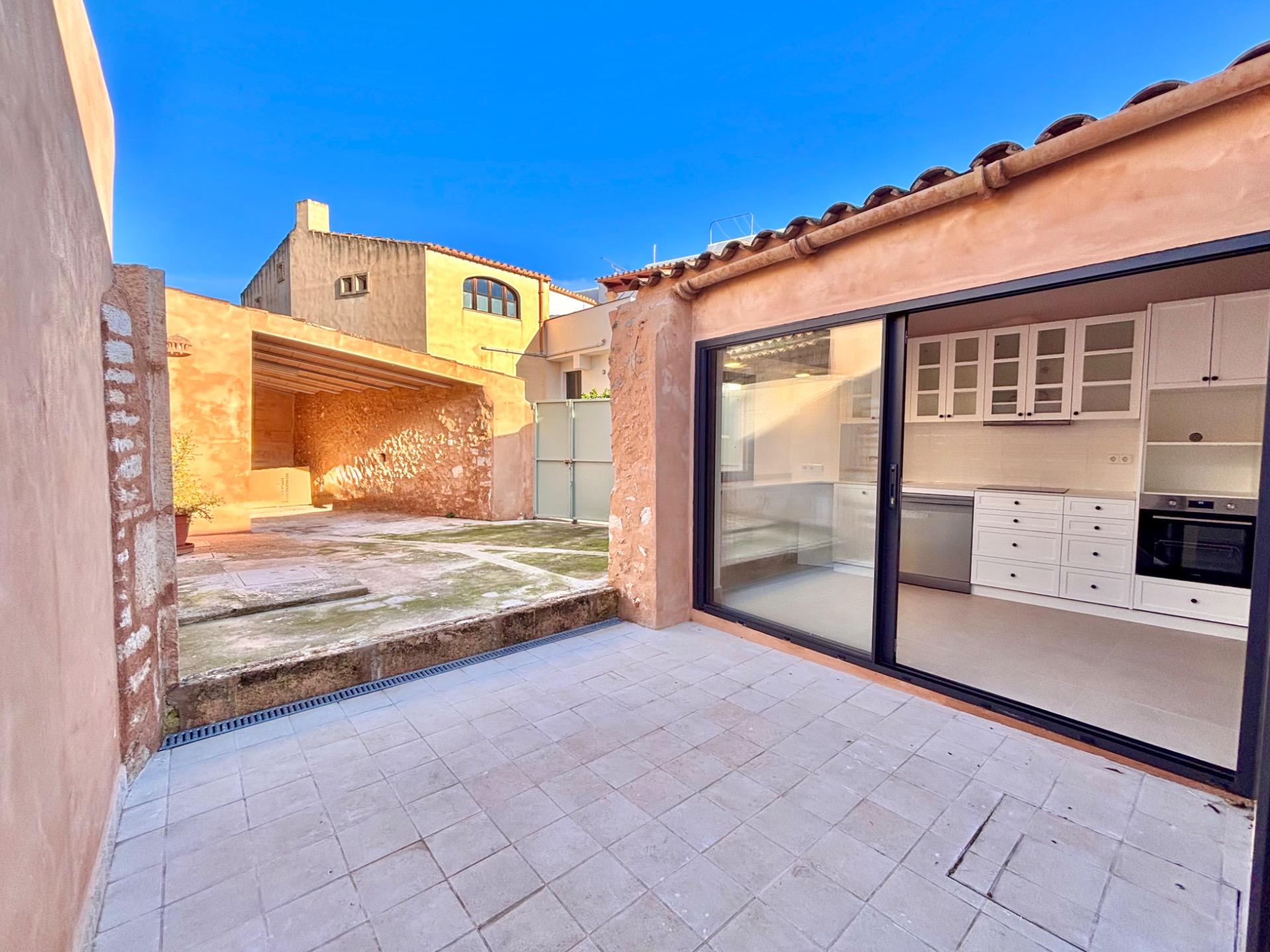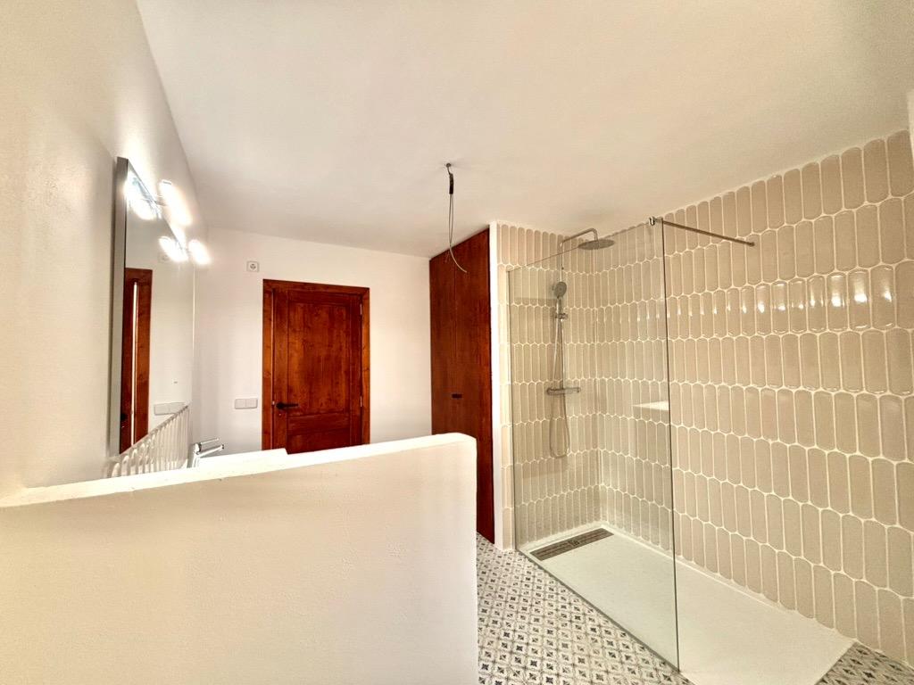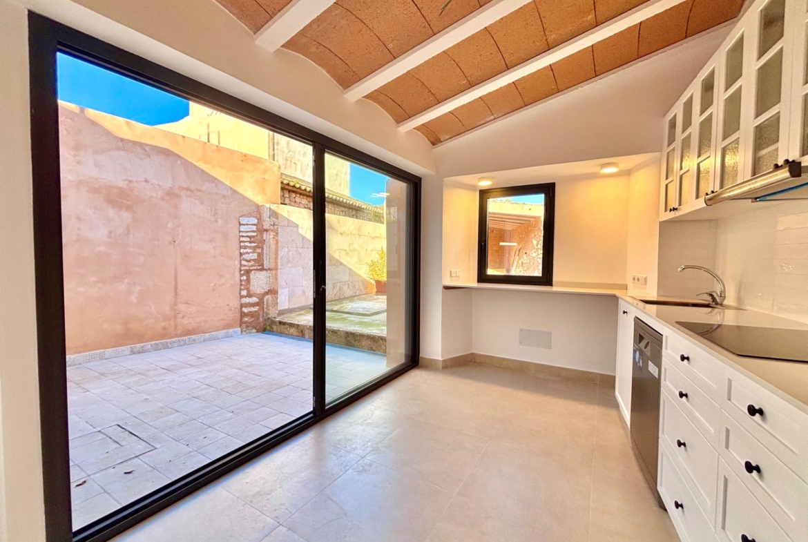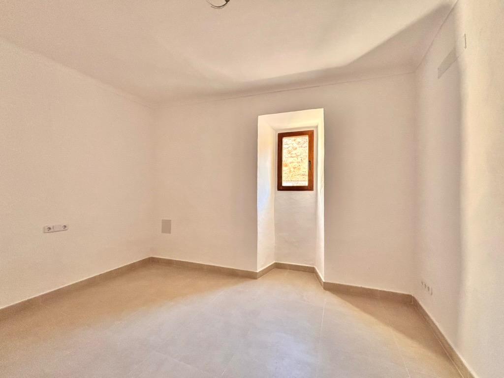 This beautiful and bright, newly renovated ground floor apartment is located in the charming village of Es Llombards. The property features lovely character details such as a wooden entrance door, an arched separation between spaces, and natural stone walls.