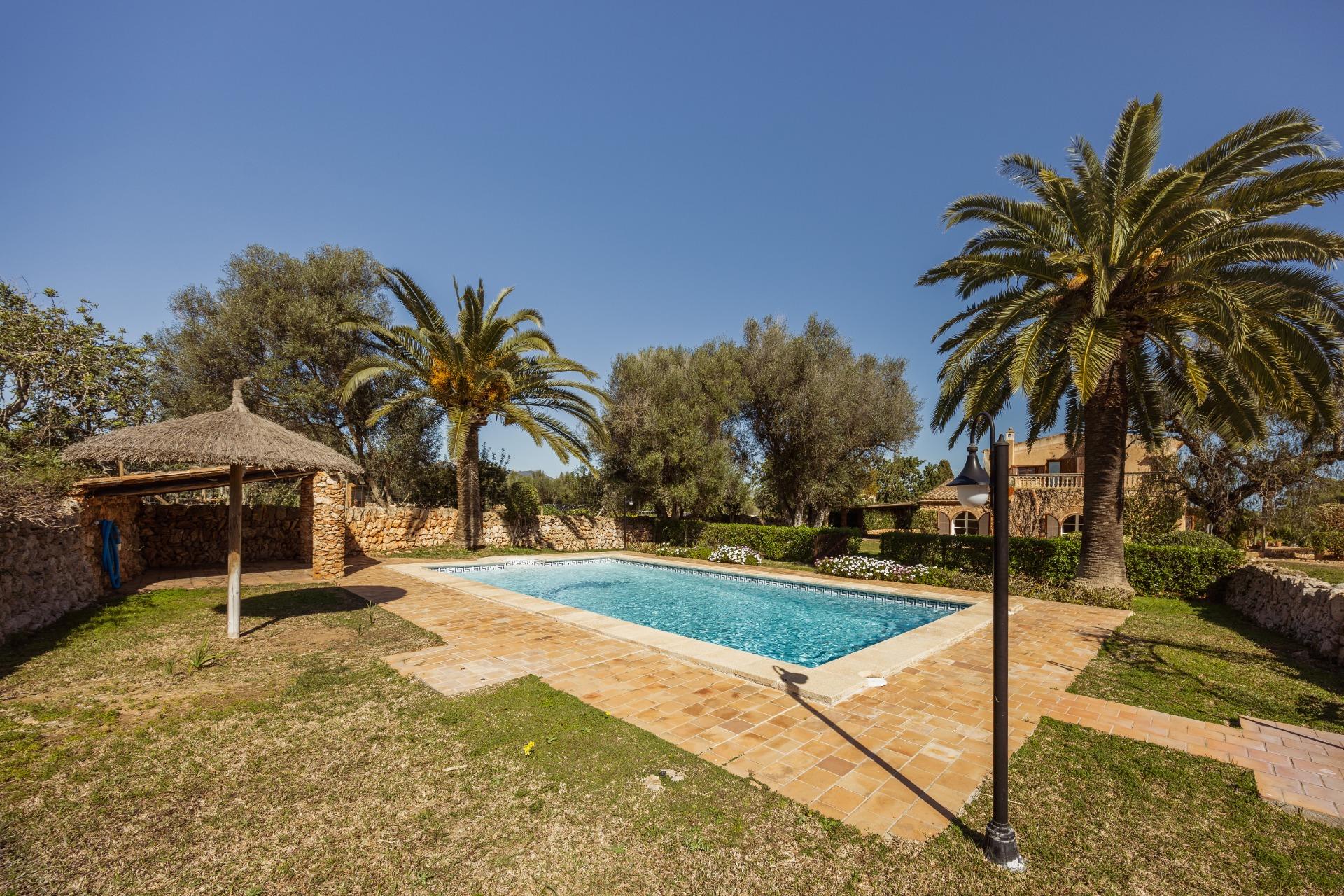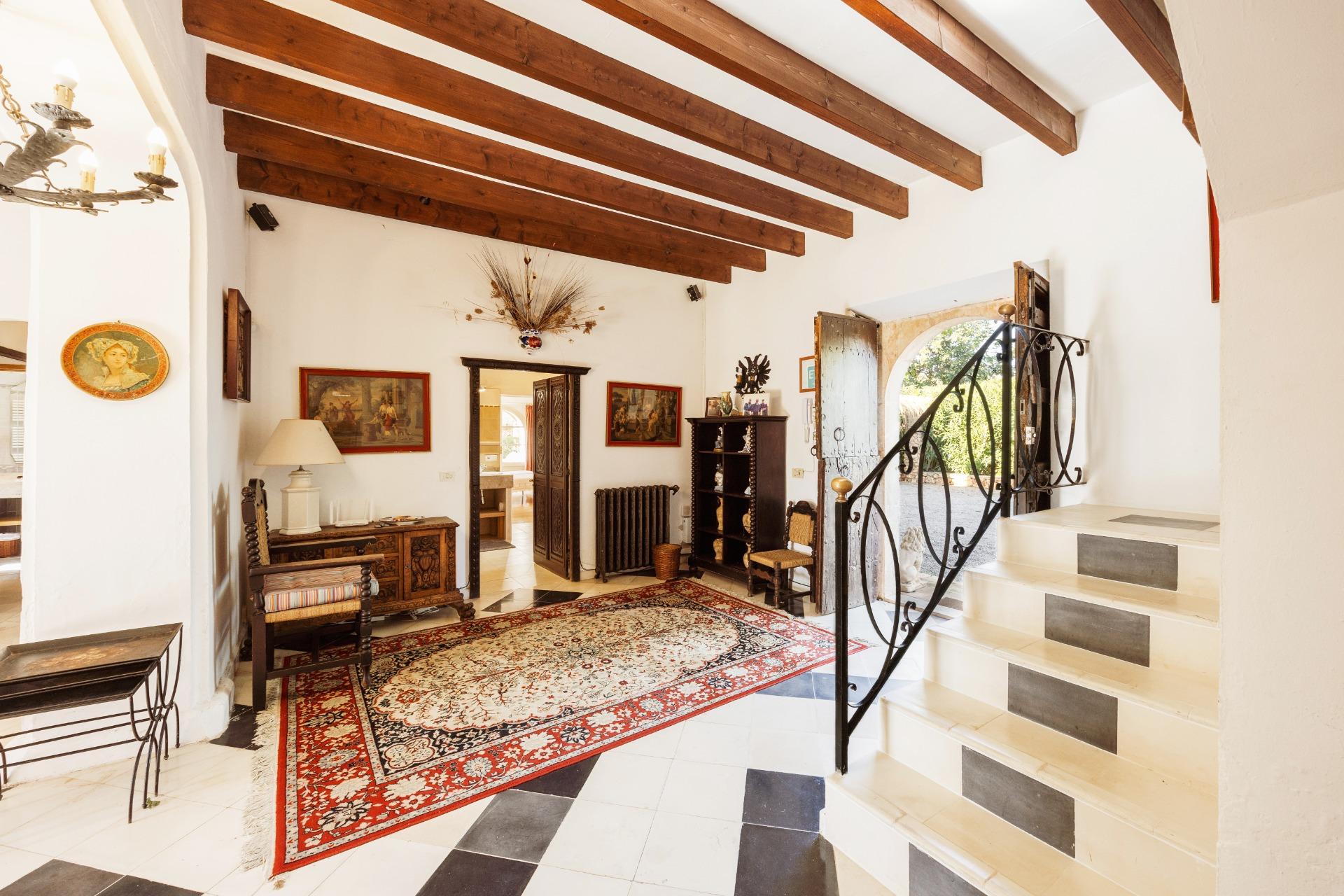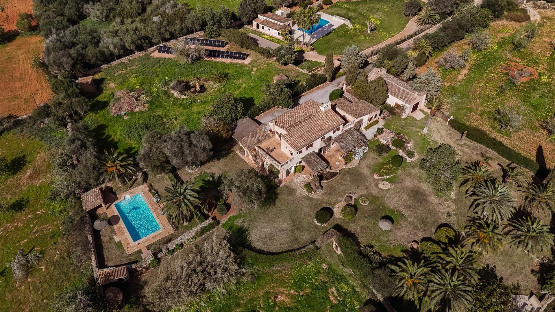 This magnificent Mallorcan finca is located in an exceptionally peaceful setting, a short distance from the sea and the village of Cala D’Or, and surrounded by a lush Mediterranean garden.