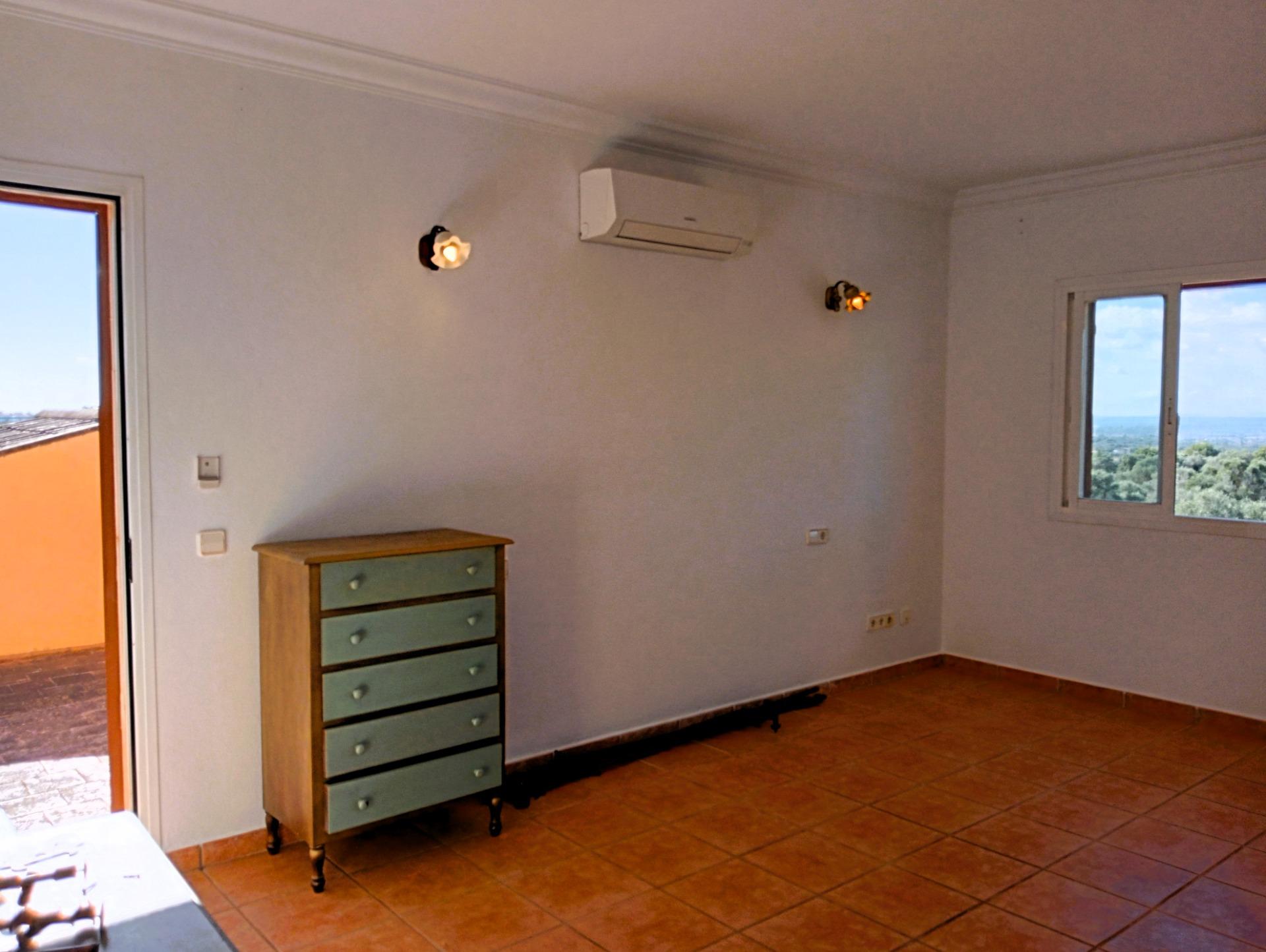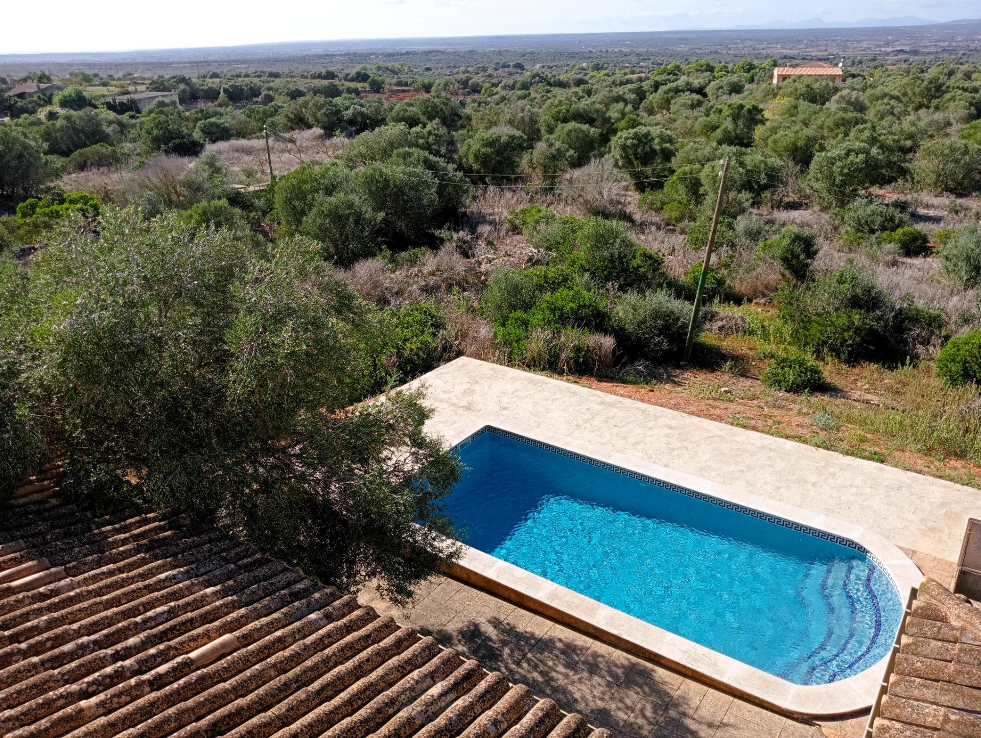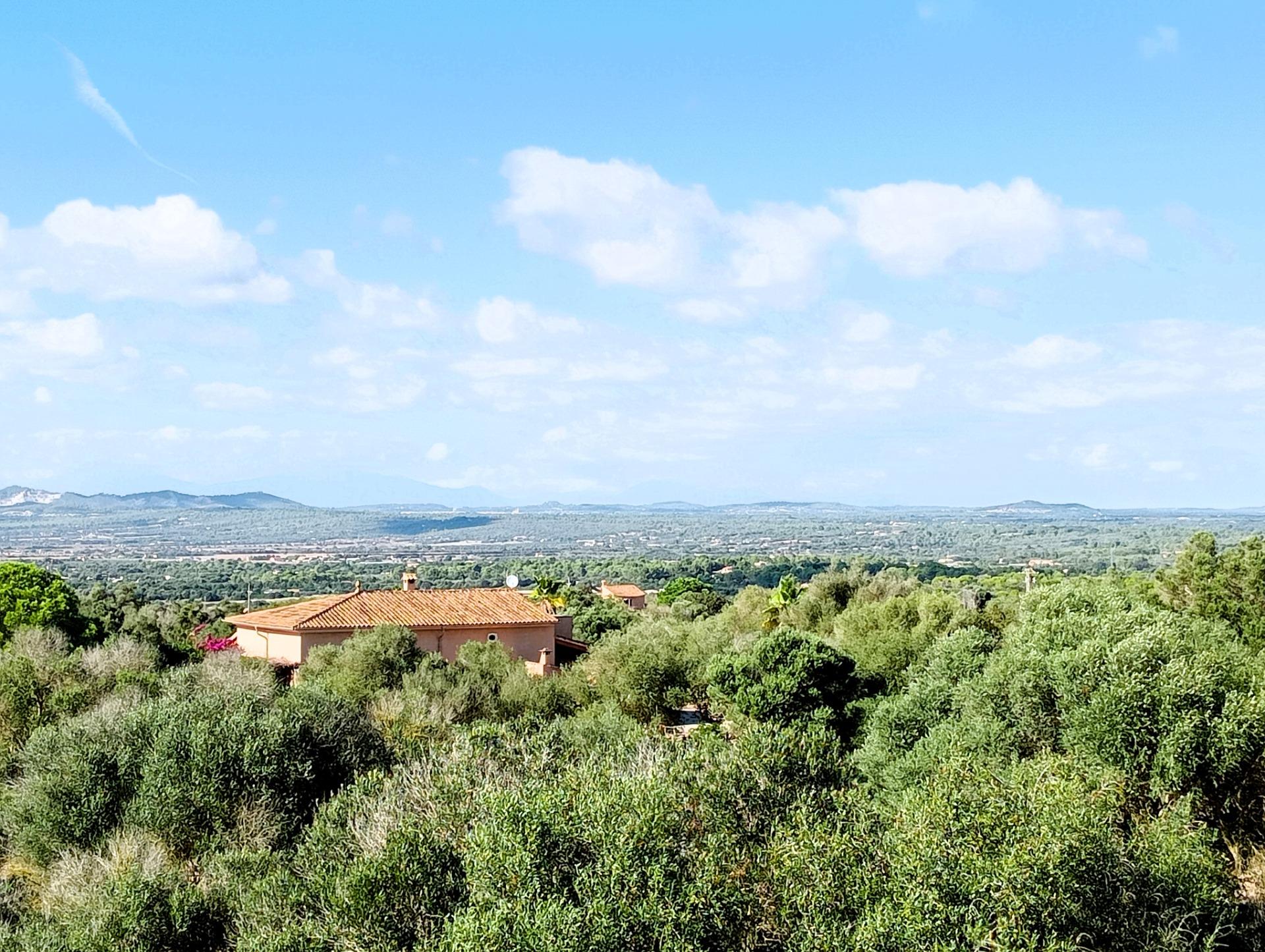 Its greatest appeal is its elevated position, which offers unparalleled panoramic views over the Mallorcan landscape. From here, you can gaze at Campos, Porreres, and, on clear days, the intense blue of the sea. The 14,058 m² plot is completely fenced with the traditional dry-stone wall, ensuring maximum privacy and comfortable access via an automatic gate.