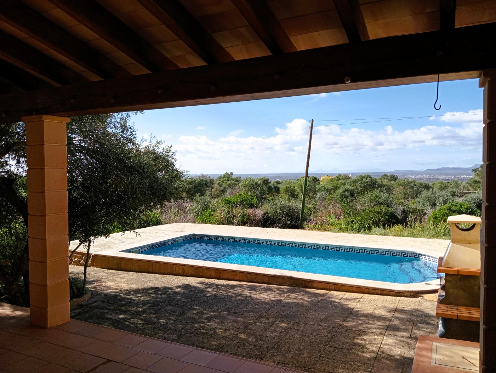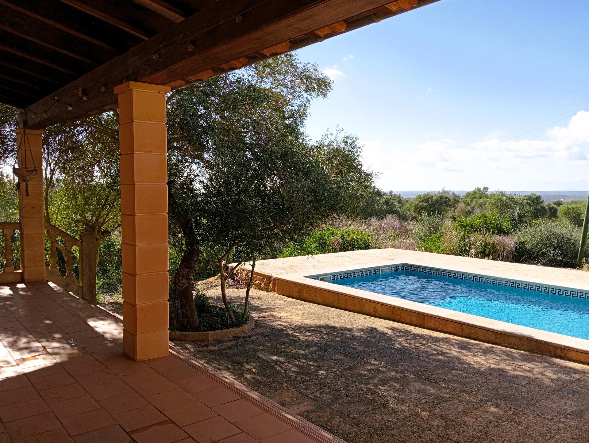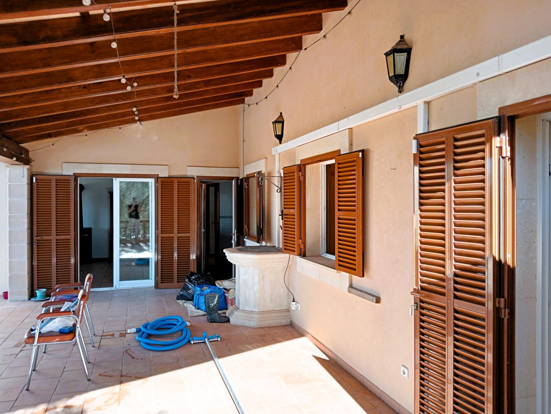 Its greatest appeal is its elevated position, which offers unparalleled panoramic views over the Mallorcan landscape. From here, you can gaze at Campos, Porreres, and, on clear days, the intense blue of the sea. The 14,058 m² plot is completely fenced with the traditional dry-stone wall, ensuring maximum privacy and comfortable access via an automatic gate.