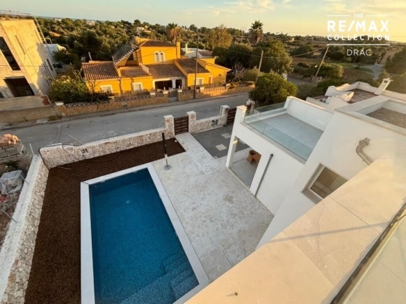 Elegante casa moderna, obra nueva con terraza cubierta, azotea con vistas al mar y la piscina en Cap d’es Moro.