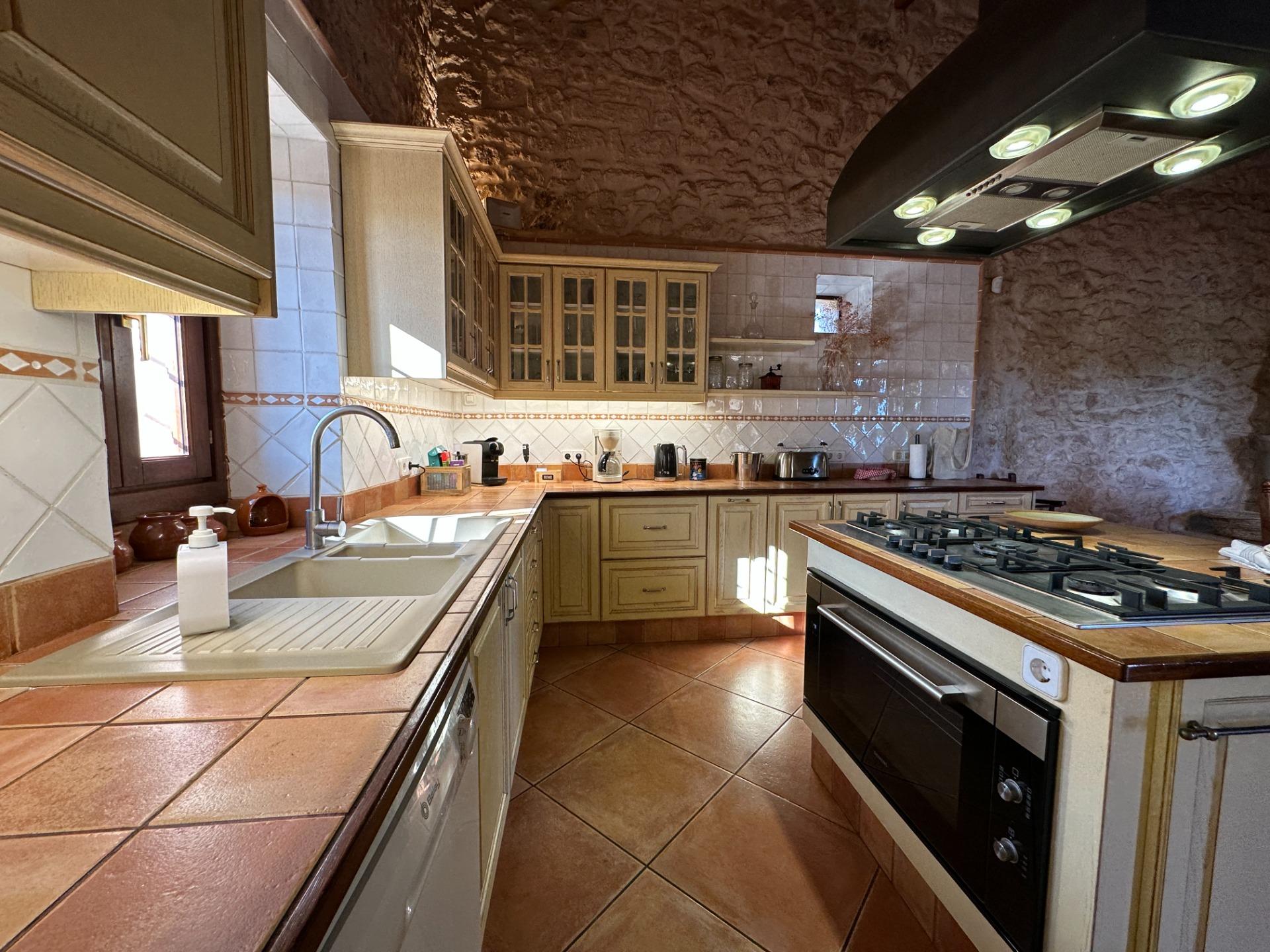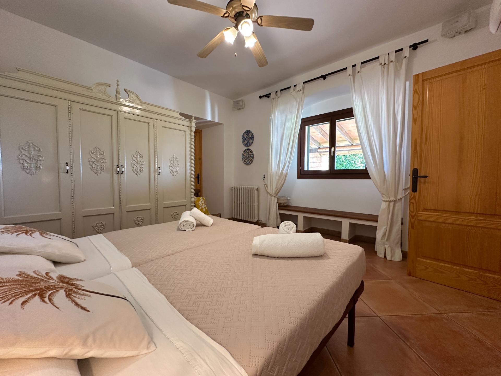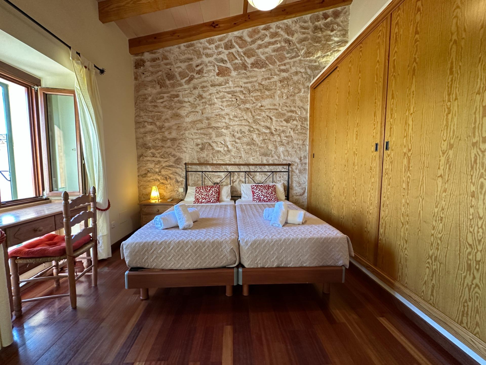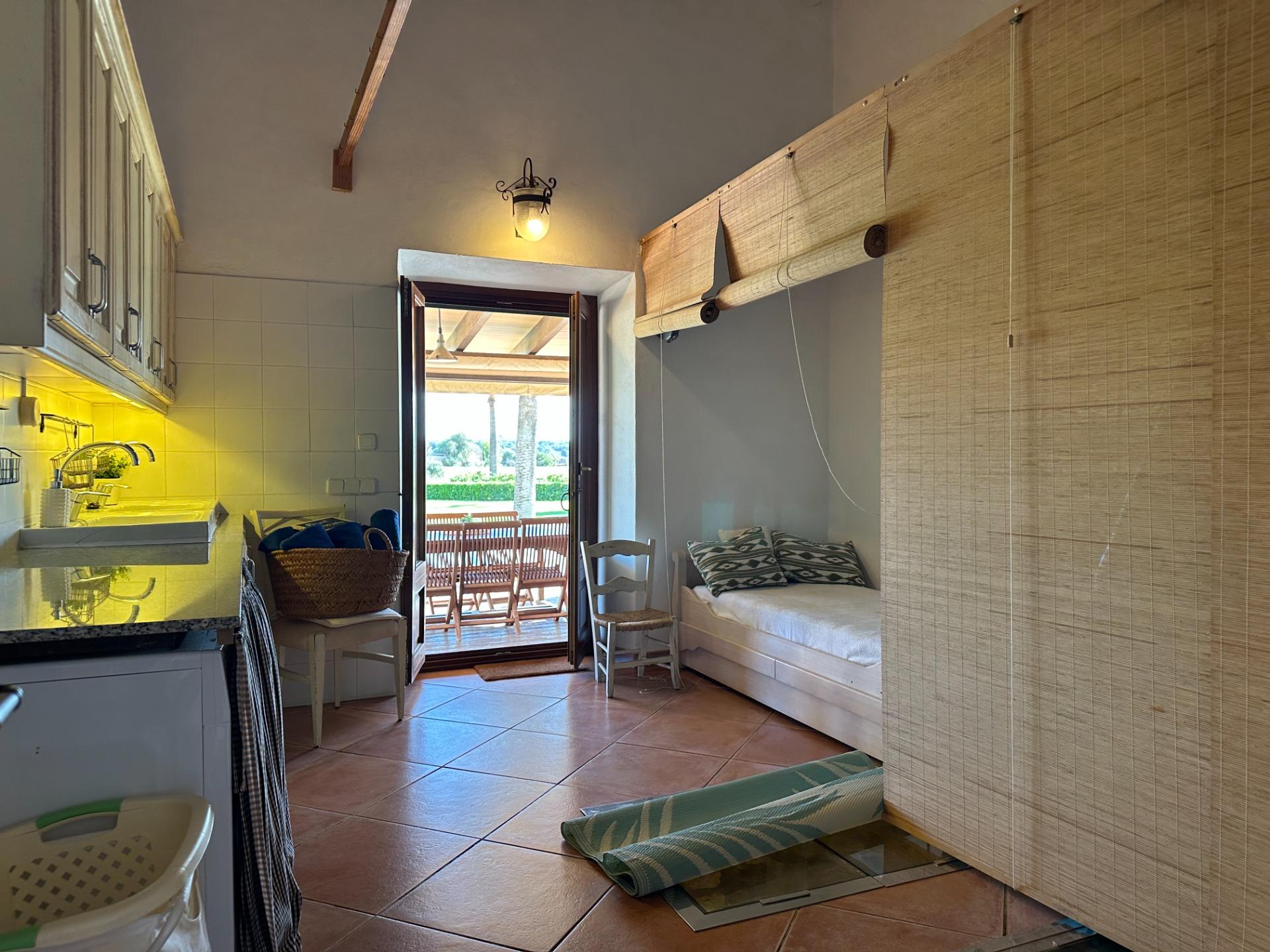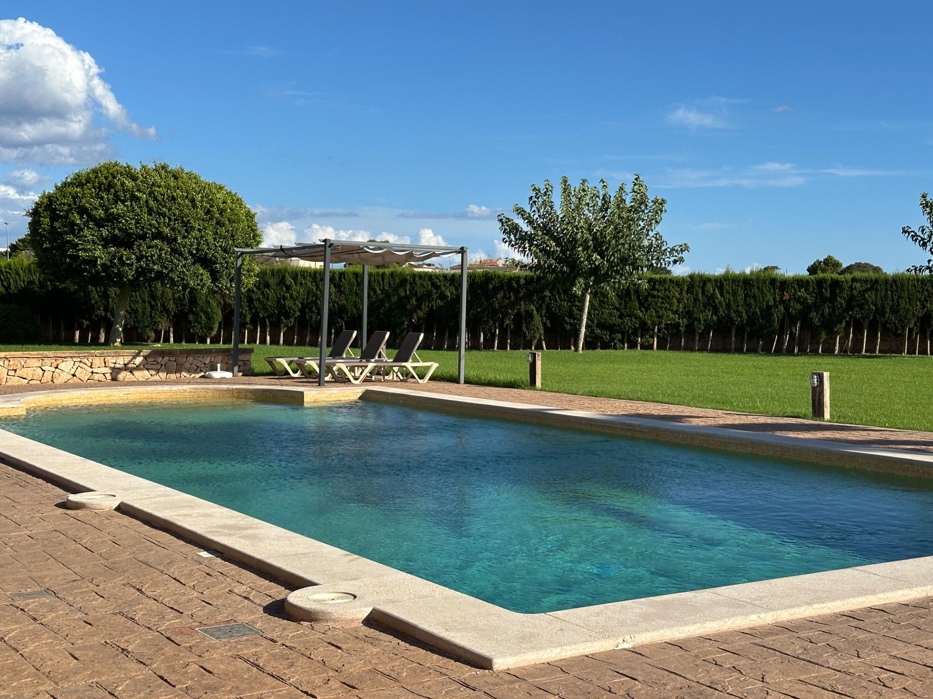 Casa de campo con carácter, de estilo mallorquín a 8 minutos caminando del centro de Santanyí con licencia de alquiler turístico de 8 plazas. Santanyí; en los últimos años, su popularidad y merecida fama han ido creciendo, convirtiéndose en uno de los pueblos más visitados de la isla. Famoso por sus 2 mercados semanales, su arquitectura tradicional y sus eventos culturales. Además cuenta con una línea de costa con unas playas paradisíacas de arena blanca y agua transparente.La casa es de arquitectura tradicional mallorquina, está situada en las afueras del pueblo en un terreno de 26.618 m2. Consta de una vivienda unifamiliar aislada con piscina, con una superficie en dos plantas de 517m2, piscina de 82 m2 de espejo de agua, 520 m2 de terrazas. Paredes interiores y exteriores de piedra. La cocina y el salón comedor se encuentran en la planta baja, dispone de 1 habitación doble con baño en la planta baja y tres habitaciones dobles, una con baño en suite y las otras dos con baño compartido ,en la primera planta. En la planta baja también tiene un baño extra para invitados.Porches 161 m2Zona jardín con 1.800 m2 de césped.Sala de máquinas subterránea 55 m2. Reformada íntegramente en el año 2.000, tiene una licencia para una ampliación de unos 150 m2.Conexión eléctrica. Pozo de agua dulce legalizado.1 aljibe de gran capacidad para riego jardín. 1 aljibe para almacenamiento agua hogar. Calefacción central (radiadores) Gasoil.Piscina por hidrolisis de sal.