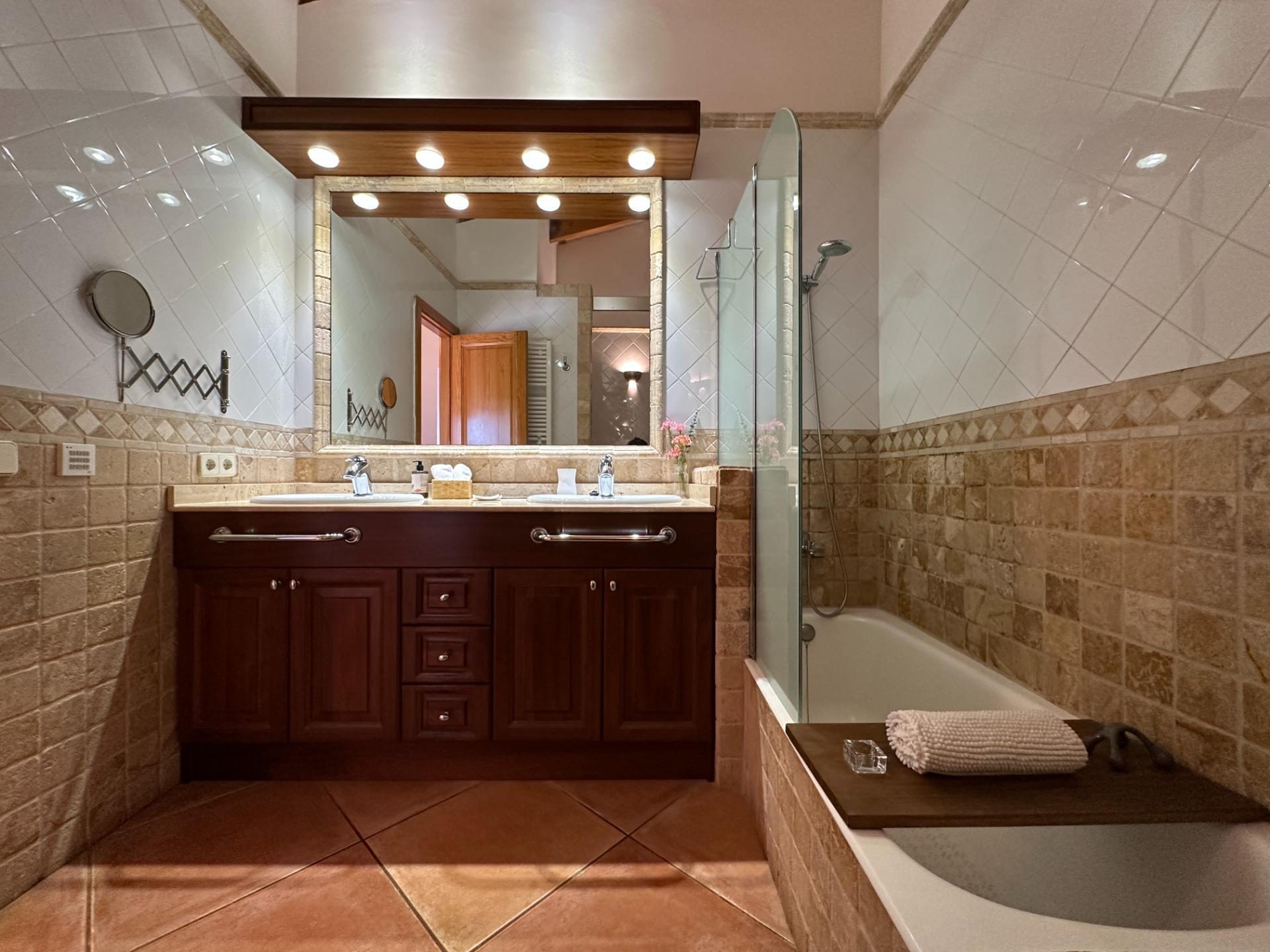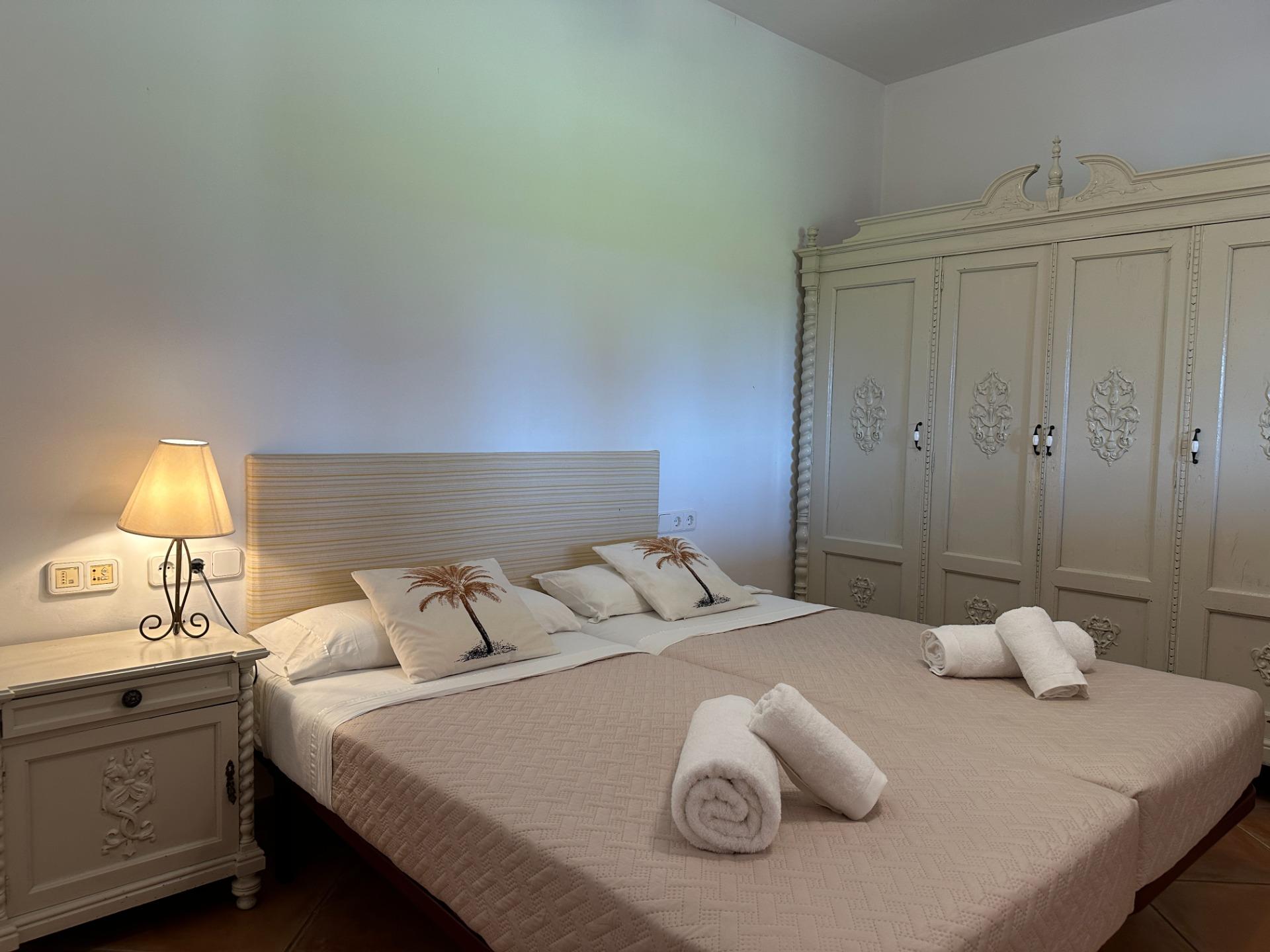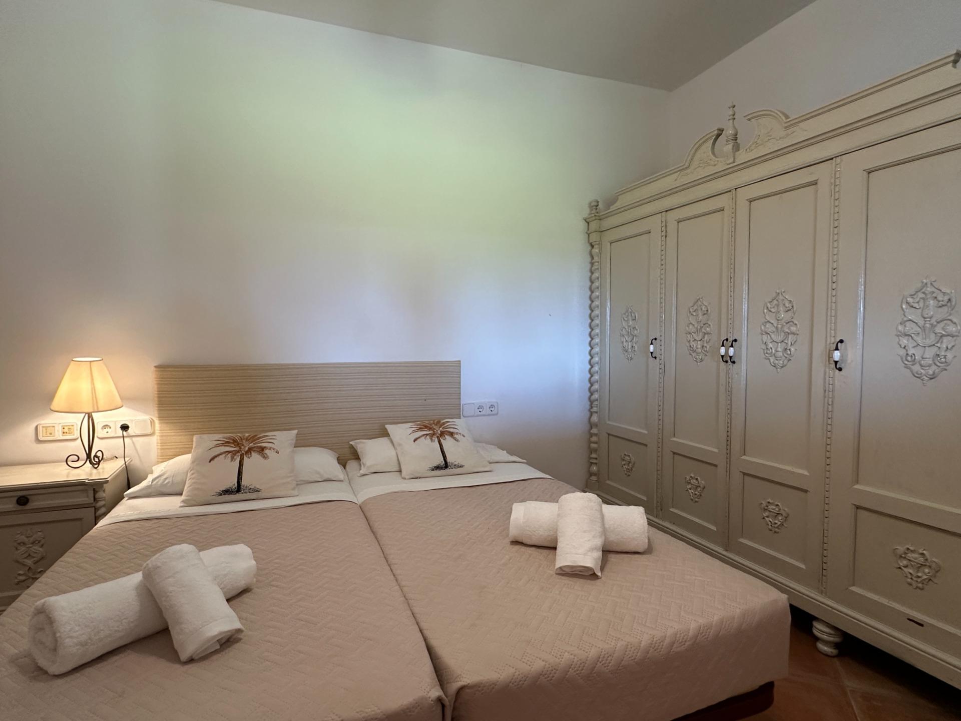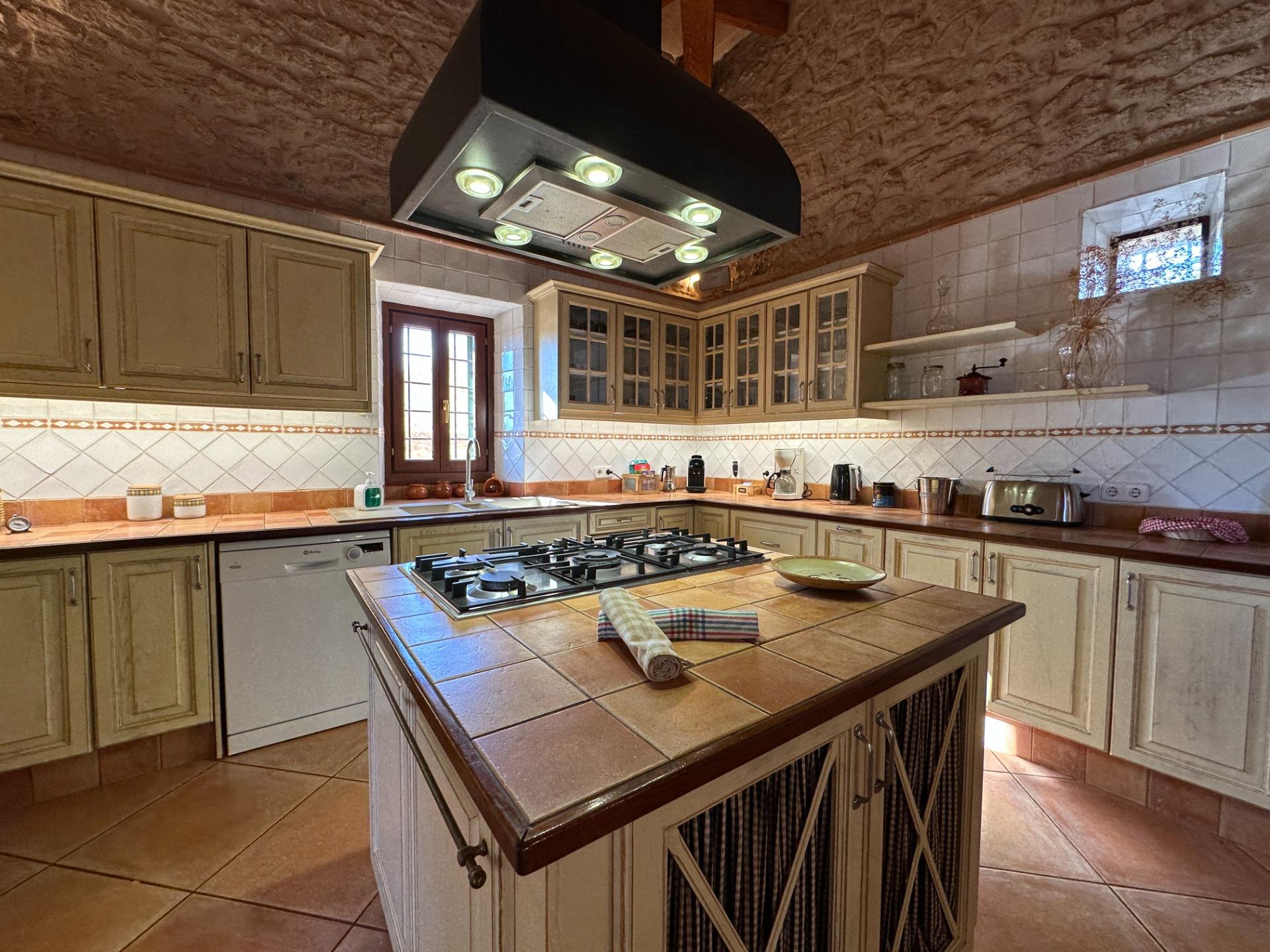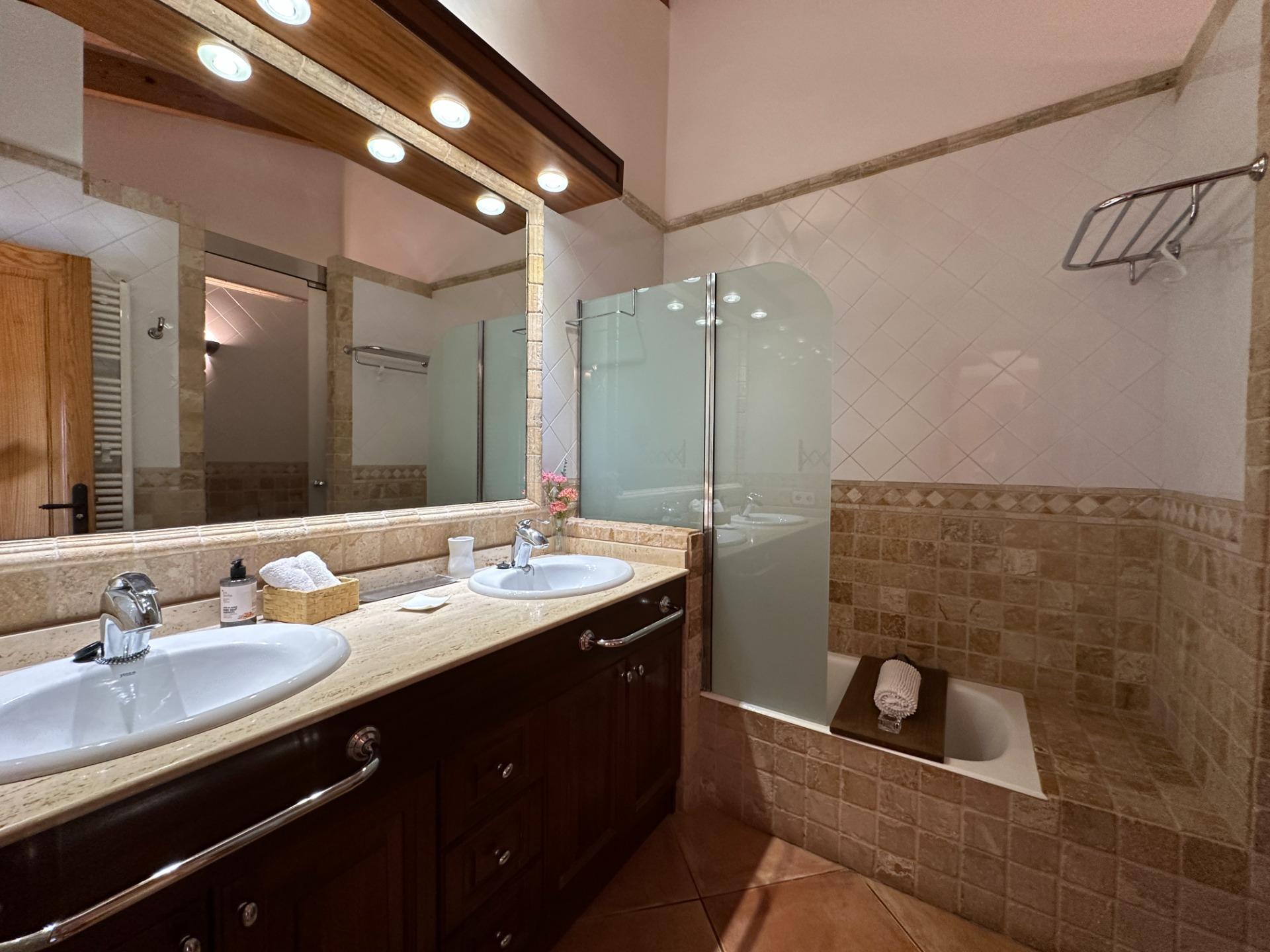 Casa de campo con carácter, de estilo mallorquín a 8 minutos caminando del centro de Santanyí con licencia de alquiler turístico de 8 plazas. Santanyí; en los últimos años, su popularidad y merecida fama han ido creciendo, convirtiéndose en uno de los pueblos más visitados de la isla. Famoso por sus 2 mercados semanales, su arquitectura tradicional y sus eventos culturales. Además cuenta con una línea de costa con unas playas paradisíacas de arena blanca y agua transparente.La casa es de arquitectura tradicional mallorquina, está situada en las afueras del pueblo en un terreno de 26.618 m2. Consta de una vivienda unifamiliar aislada con piscina, con una superficie en dos plantas de 517m2, piscina de 82 m2 de espejo de agua, 520 m2 de terrazas. Paredes interiores y exteriores de piedra. La cocina y el salón comedor se encuentran en la planta baja, dispone de 1 habitación doble con baño en la planta baja y tres habitaciones dobles, una con baño en suite y las otras dos con baño compartido ,en la primera planta. En la planta baja también tiene un baño extra para invitados.Porches 161 m2Zona jardín con 1.800 m2 de césped.Sala de máquinas subterránea 55 m2. Reformada íntegramente en el año 2.000, tiene una licencia para una ampliación de unos 150 m2.Conexión eléctrica. Pozo de agua dulce legalizado.1 aljibe de gran capacidad para riego jardín. 1 aljibe para almacenamiento agua hogar. Calefacción central (radiadores) Gasoil.Piscina por hidrolisis de sal.