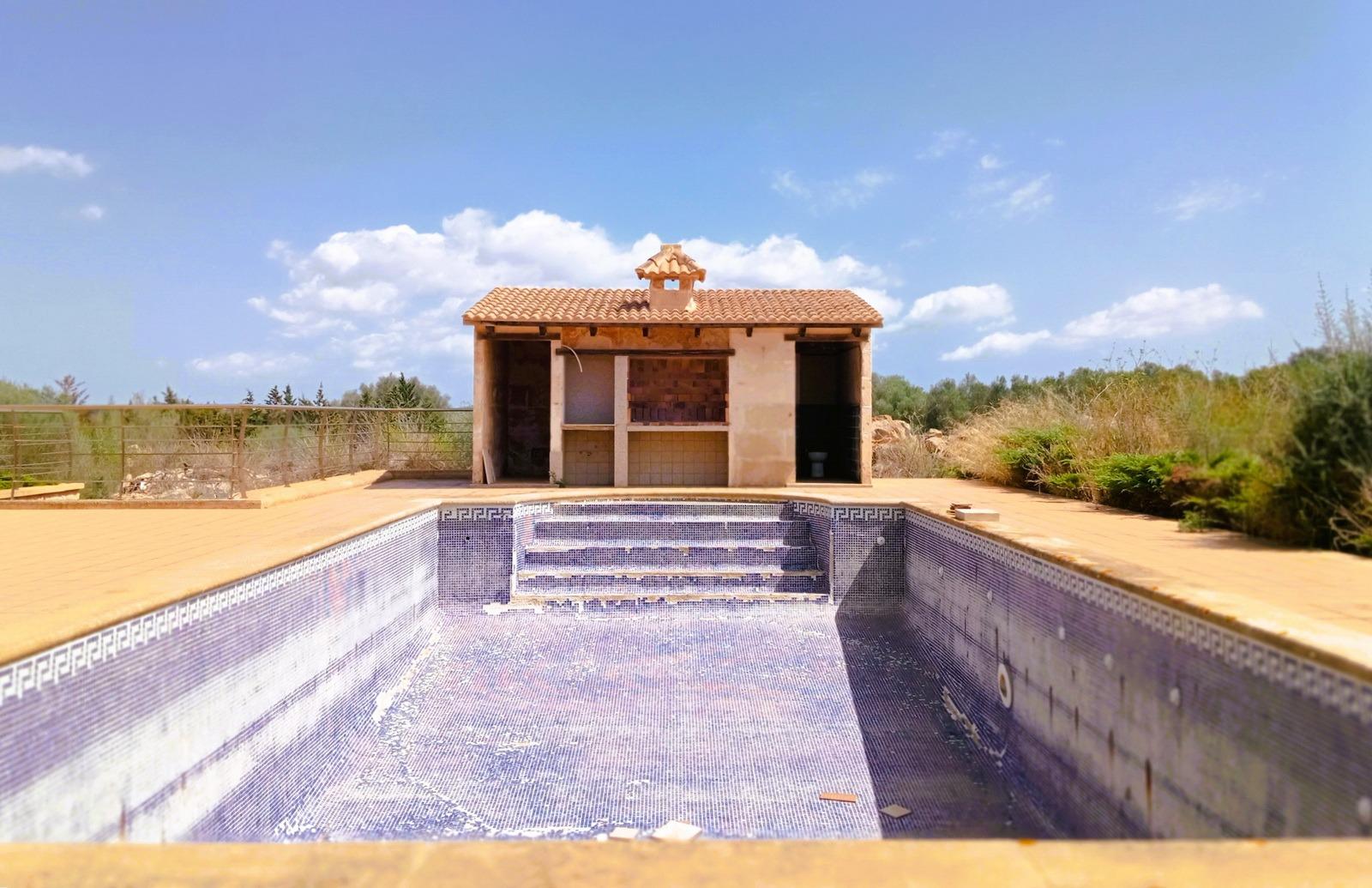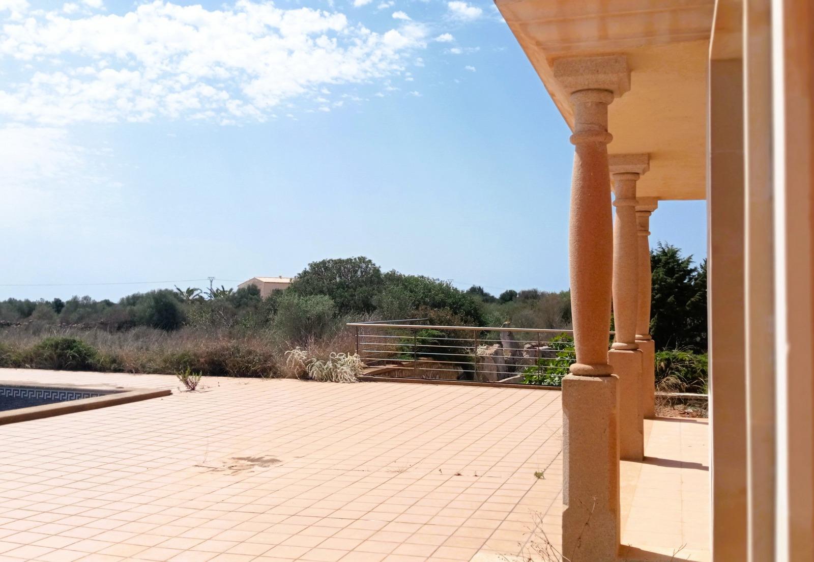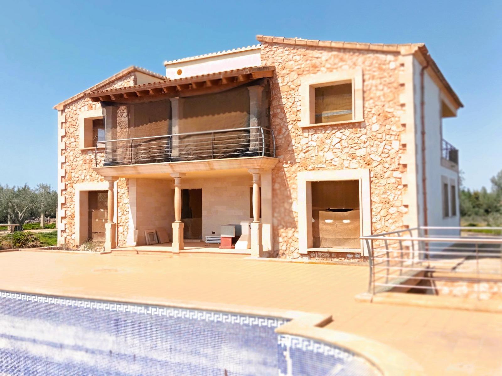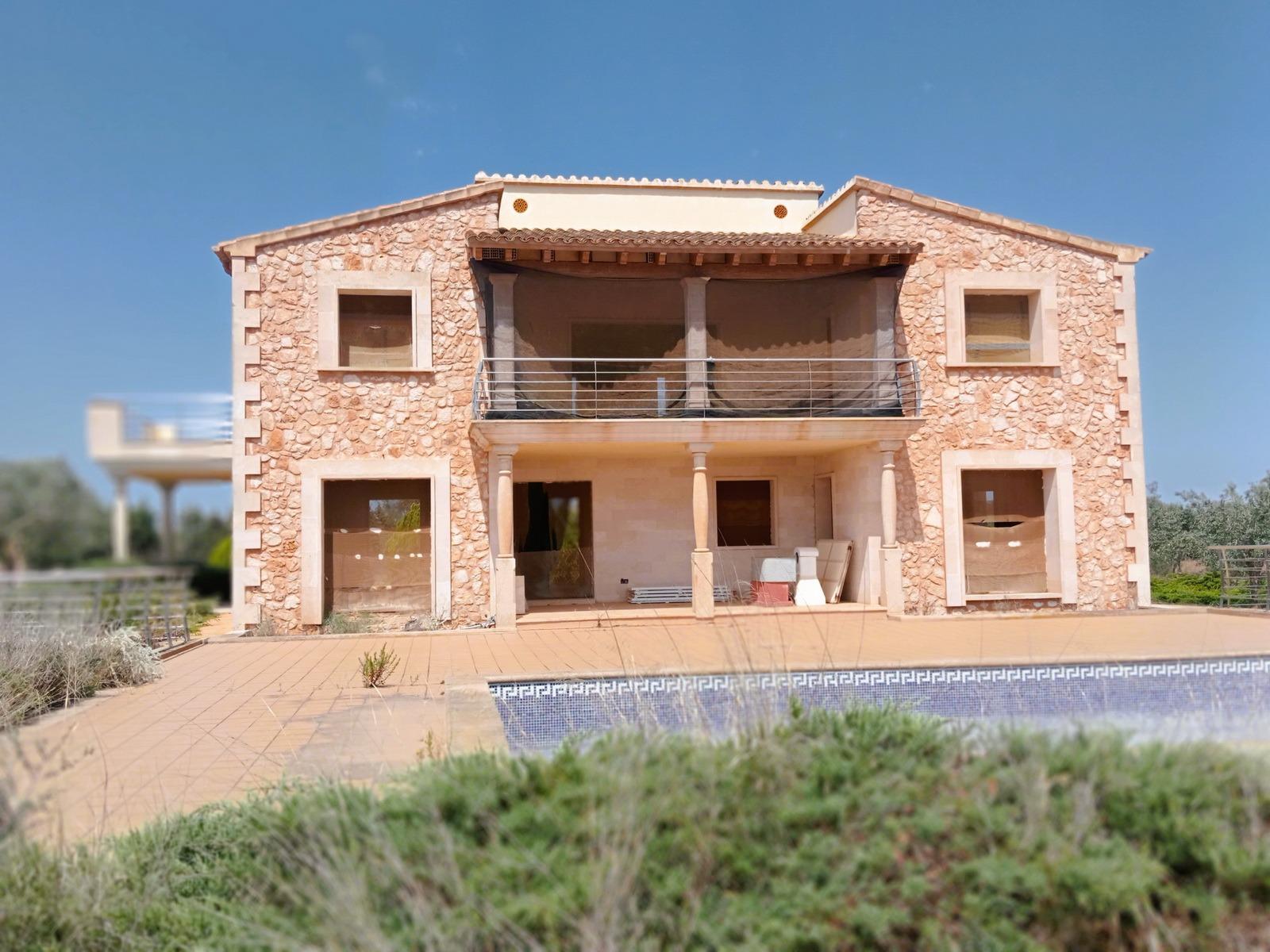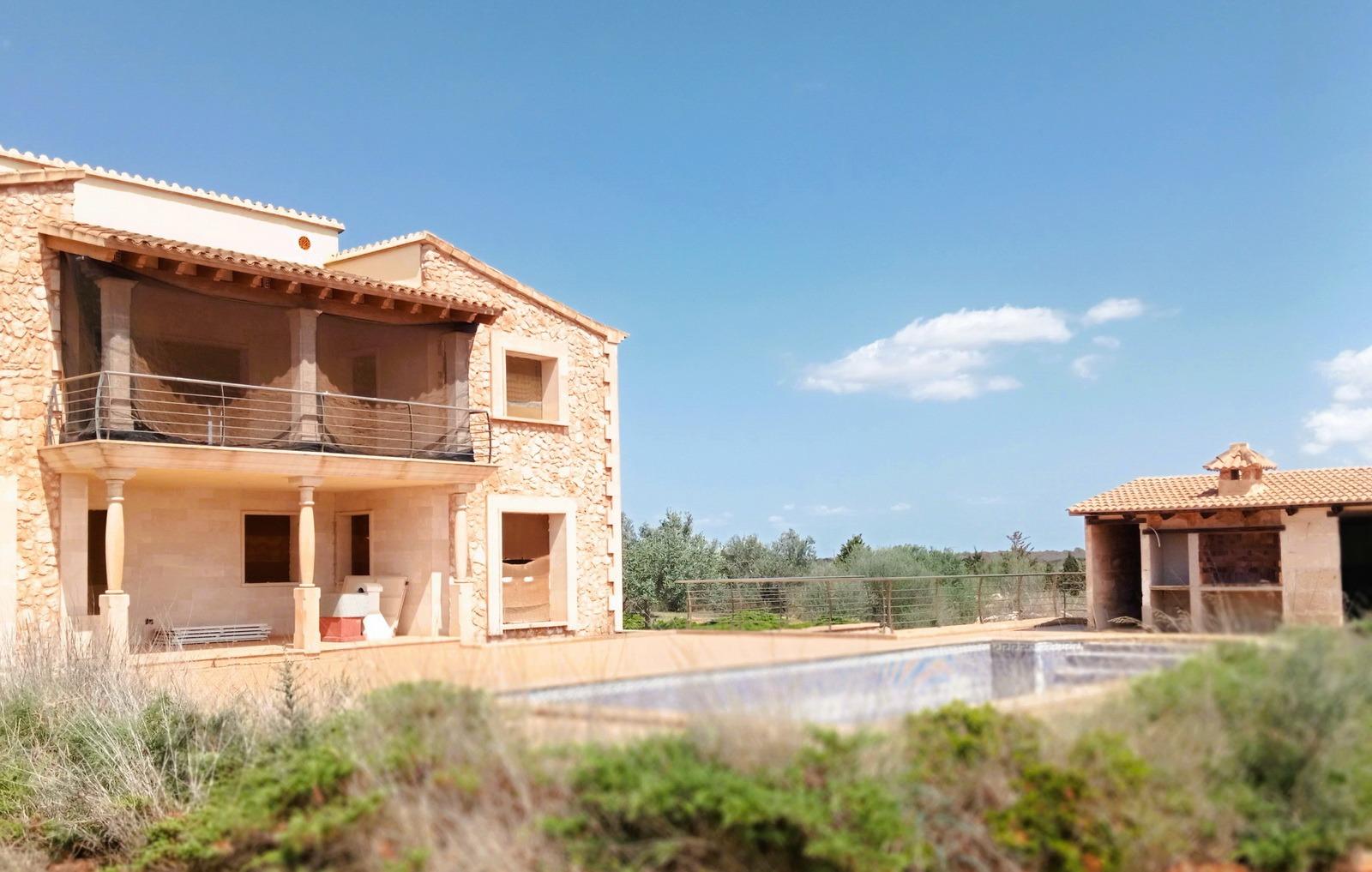 ¡Bienvenido a la propiedad de tus sueños en la encantadora isla de Mallorca! Te presentamos una exclusiva casa de campo en construcción, ubicada en una posición privilegiada cerca del pintoresco pueblo de Ses Salines, dentro del municipio de Campos. Desde esta ubicación, disfrutarás de impresionantes vistas panorámicas al campo, al lejano mar Mediterráneo y a la majestuosa isla de Cabrera. Esta propiedad única se ofrece en su estado actual, lista para que la termines a tu gusto y necesidades.Descripción de la PropiedadCon una superficie construida de aproximadamente 360 m², esta magnífica propiedad se despliega sobre un extenso terreno de 14.300 m², meticulosamente vallado para asegurar tu privacidad y tranquilidad. El diseño de la casa ha sido concebido para ofrecer un confort excepcional y una conexión armoniosa con la naturaleza que la rodea. Además, ya cuenta con calefacción radiante por suelo instalada, asegurando un ambiente cálido y acogedor en toda la casa durante los meses más frescos.Planta BajaAl entrar en la vivienda, te recibe un amplio vestíbulo que conduce a un elegante salón-comedor y a una moderna cocina. La planta baja alberga dos cómodos dormitorios, uno de ellos con baño en suite y acceso directo a una terraza, que te lleva a una espectacular piscina de 55 m², ideal para disfrutar de los soleados días mallorquines. Un segundo baño completo en esta planta asegura la comodidad tanto para la familia como para los invitados.Junto a la piscina, se encuentra una encantadora casita anexa, diseñada para disfrutar al máximo del exterior en cualquier época del año. Esta casita incluye una zona de barbacoa perfecta para reuniones al aire libre, un baño completo y un práctico espacio de almacenamiento para muebles de terraza y otros enseres.Planta PrimeraSubiendo a la planta primera, descubrirás cuatro amplios dormitorios adicionales, todos ellos con acceso directo a terrazas que ofrecen vistas incomparables del idílico paisaje mallorquín y del mar. Dos de estos dormitorios cuentan con terrazas privadas, mientras que los otros dos comparten una espaciosa terraza, ideal para contemplar las tranquilas puestas de sol mediterráneas. Además, en esta planta encontrarás dos baños completos, asegurando la máxima comodidad y privacidad para todos los residentes.Características AdicionalesLa propiedad también dispone de un amplio aparcamiento subterráneo con capacidad para al menos cuatro vehículos, además de espacio adicional para almacenamiento. La finca está conectada a la red eléctrica pública y cuenta con un gran aljibe, garantizando un suministro de agua constante durante todo el año. La calefacción radiante por suelo instalada es un detalle adicional que asegura un nivel de confort excepcional en toda la casa.Esta casa de campo no es solo una residencia; es un santuario de paz y serenidad en el corazón de Mallorca. Cada detalle ha sido cuidadosamente pensado para ofrecerte un estilo de vida único y exclusivo. ¡No dejes pasar esta oportunidad de hacer realidad tu sueño de vivir en un auténtico paraíso mediterráneo!