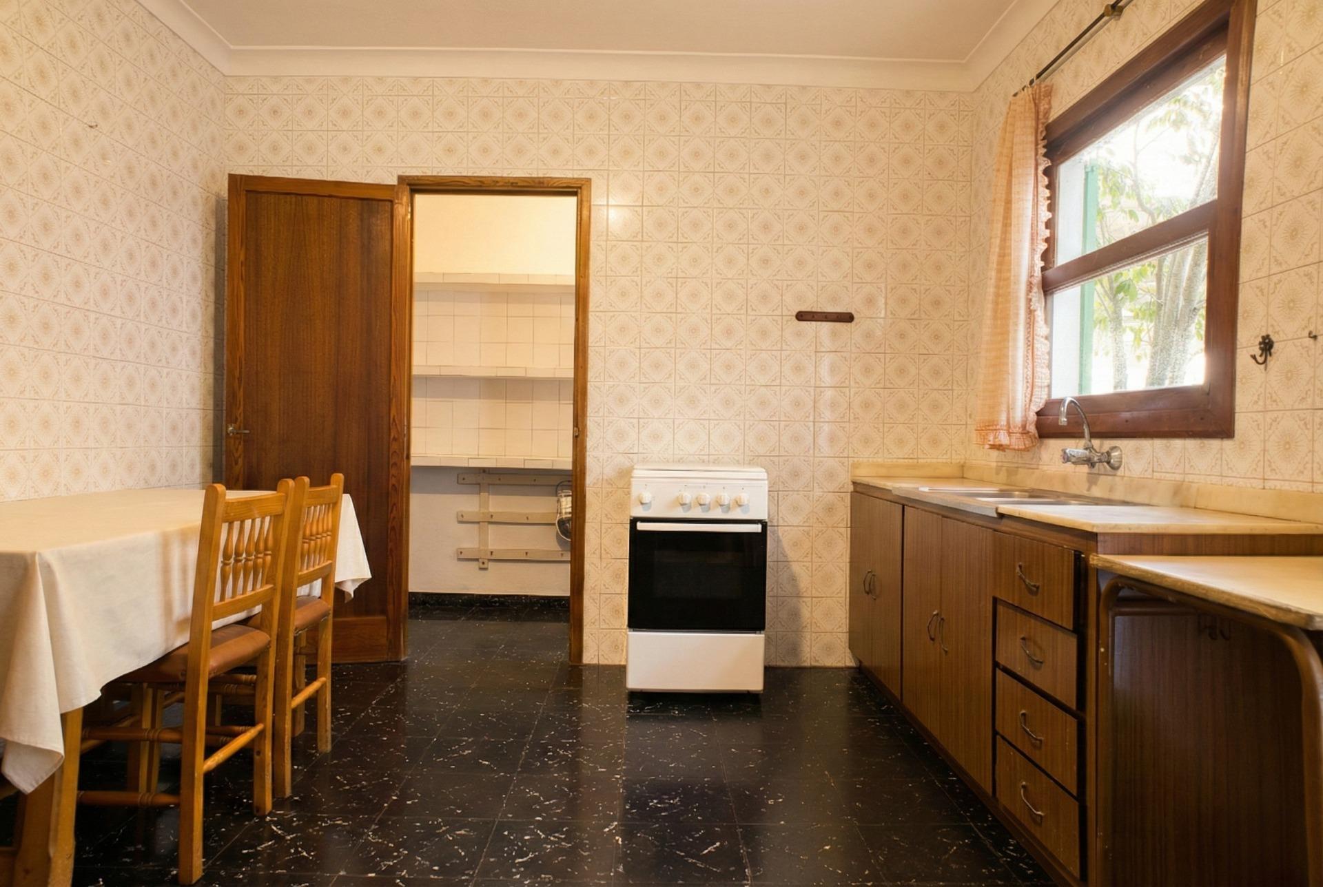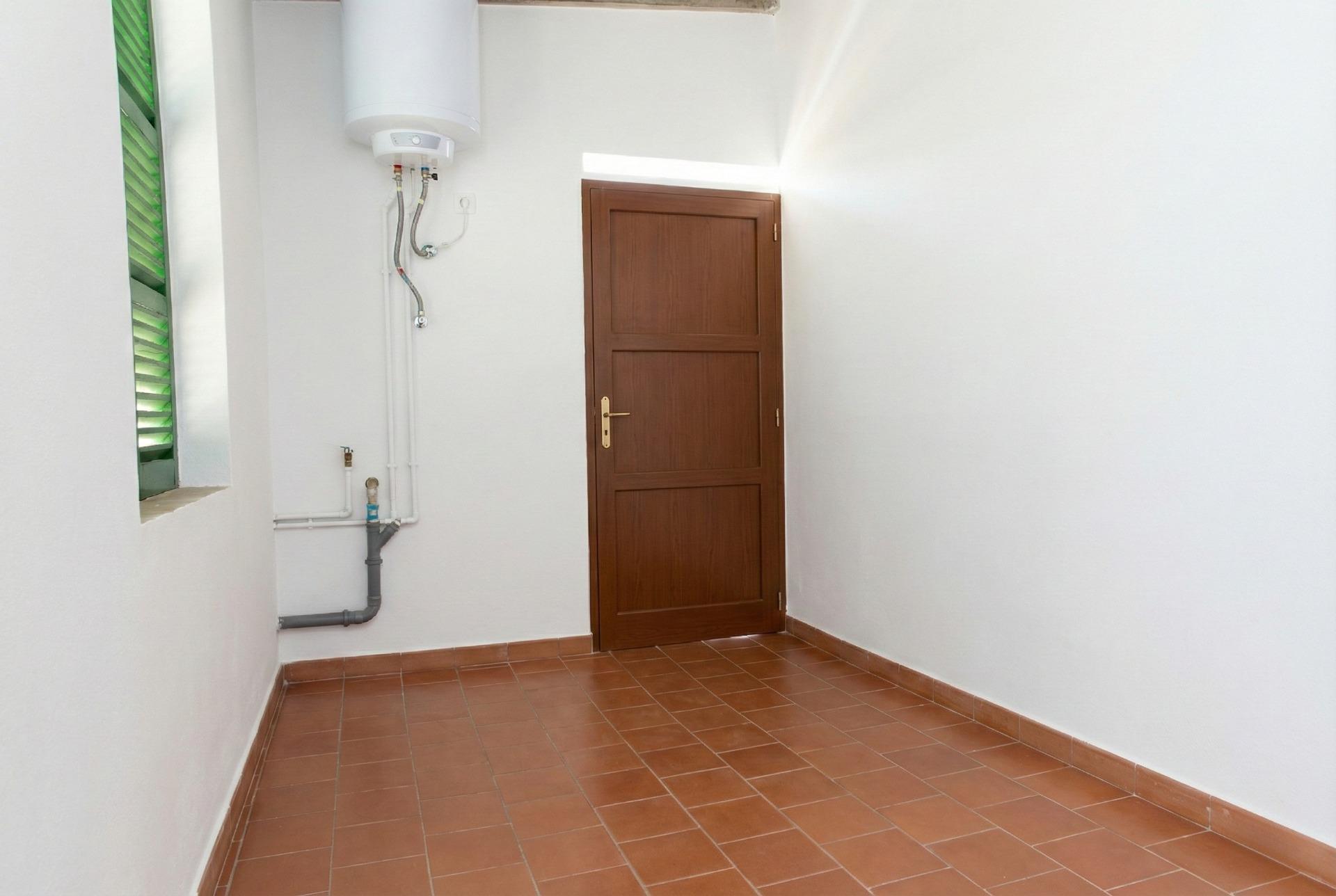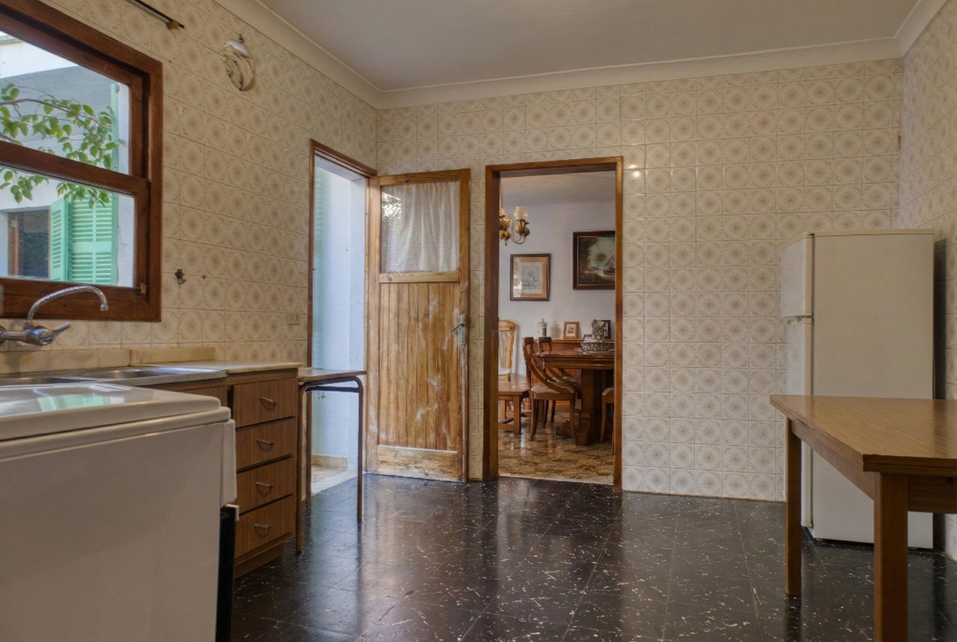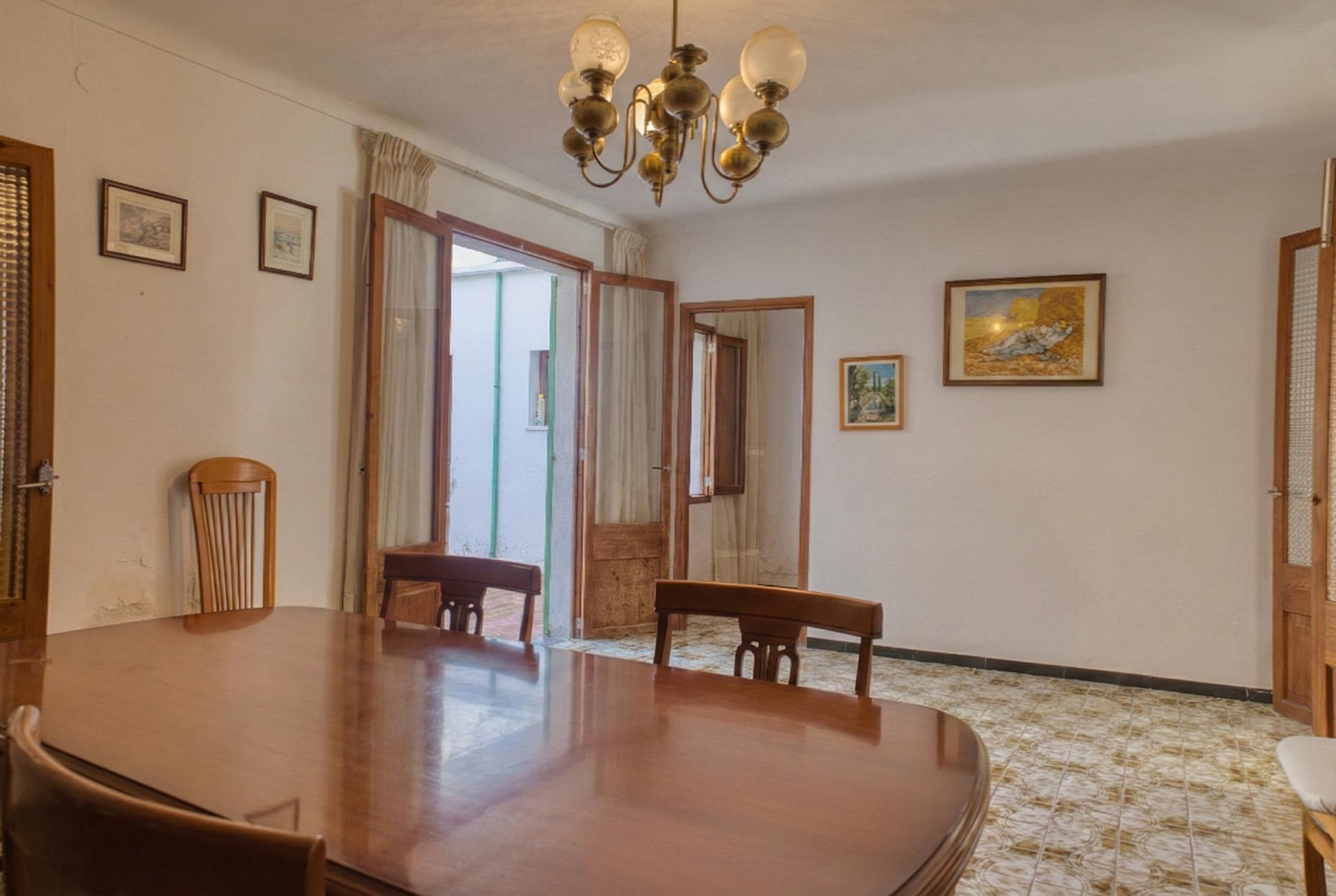 La distribución es típica de las casas mallorquinas de pueblo, habitaciones amplias encadenadas, techos altos y paredes gruesas que regulan la temperatura de forma natural. Cuenta con varios dormitorios, comedor, cocina, baños funcionales y un patio interior que da luz y ventilación al conjunto. Ese patio tiene recorrido: se puede cubrir o ampliar para ganar metros útiles.
