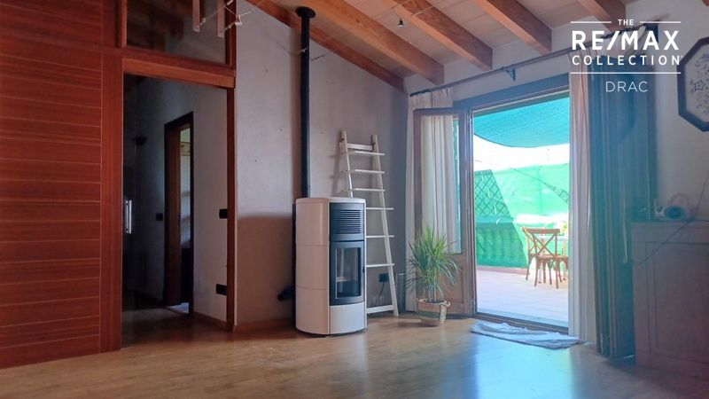 Luminoso piso en Ses Salines, Ideal para los Amantes del Confort y la TranquilidadUbicada en una de una zona muy tranquila, esta vivienda ofrece la combinación perfecta de comodidad moderna y un entorno tranquilo. A tan solo 10 minutos de las mejores playas de Mallorca y el bonito pueblo de Santanyí, y a 40 minutos de Palma. Detalles de la Vivienda:Superficie útil: 145 m²Superficie de terrazas: 78 m²Superficie total: 223 m²Distribución:Cocina abierta con isla, ideal para amantes de la gastronomía, conectada al comedor.Comedor luminoso con acceso directo a una amplia terraza, perfecta para disfrutar del exterior durante todo el año.Baño completo con ducha.Habitación principal en suite, con vestíbulo, armarios empotrados y baño privado con bañera.Habitación adicional en el altillo con terraza propia, ideal para momentos de relajación.Segunda terraza amplia equipada con barbacoa, perfecta para reuniones al aire libre.Equipamiento y acabados de alta calidad:Sistema de climatización frío/calor por conductos en todas las estancias, asegurando el máximo confort en cualquier época del año.Estufa de pellet de alta gama, aportando un toque acogedor y ecológico.Sistema de energía solar térmica (ACS), con placas solares instaladas en el tejado, promoviendo la eficiencia energética.Suelos de parquet de alta calidad, que aportan calidez y elegancia.Vigas vistas en techos que realzan el carácter mediterráneo y rústico de la vivienda.Electrodomésticos de primeras marcas, incluidos encimera de inducción, campana extractora, lavadora, secadora, lavavajillas, termo eléctrico y microondas.Un entorno natural excepcional:Aunque la vivienda está situada en el centro del pueblo, limita directamente con el campo, permitiéndote disfrutar de la tranquilidad del entorno rural sin perder la proximidad a todos los servicios locales. No permiten mascotas.