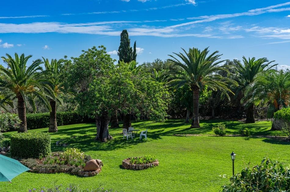 El jardín, cuidadosamente diseñado y enriquecido con palmeras, árboles y plantas autóctonas de la isla, garantiza privacidad y serenidad. Numerosas zonas de descanso y áreas de comedor al aire libre invitan a disfrutar plenamente de la tranquilidad del entorno.