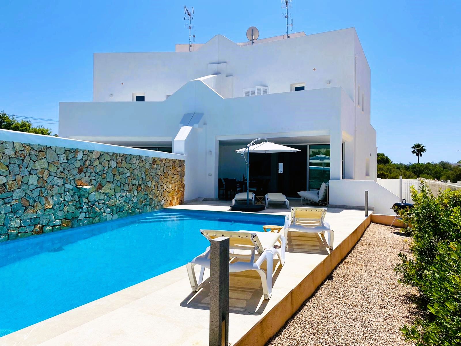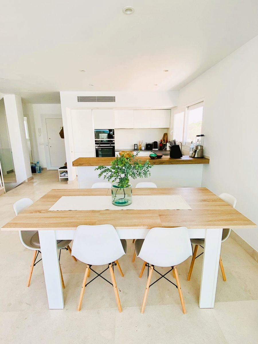 Moderno Dúplex de lujo de unos 120m2 con piscina y vistas al mar. El Dúplex tiene en total 3 dormitorios, 2 baños, 1 aseo, terraza cubierta de unos 18m2 y terraza superior/solárium. La casa está perfecto para disfrutar de la cercanía del mar, y dispone de todas las comodidades como aire-acondicionado, calefacción por suelo radiante, y garaje. Mas detalles bajo petición!