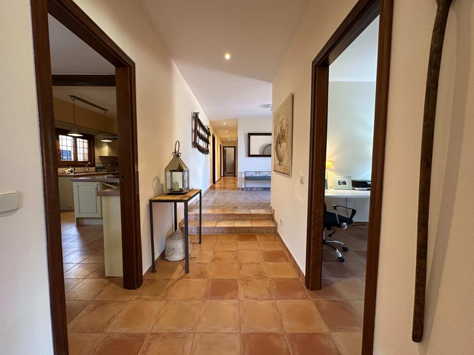 En las apacibles afueras de Santanyí, un encantador pueblo en la pintoresca isla de Mallorca, se encuentra esta magnífica finca que ofrece una combinación perfecta de tranquilidad y comodidad. Santanyí, conocido por su arquitectura tradicional de piedra y calles empedradas, es un lugar donde el tiempo parece detenerse, permitiendo a sus residentes disfrutar de un ritmo de vida relajado y auténtico.A solo unos minutos caminando desde el centro del pueblo, esta finca de 3,550m2 se presenta como un oasis de serenidad. Con una casa de 454m2, esta propiedad cuenta con 5 habitaciones dobles y 4 baños, perfecta para recibir a familiares y amigos con toda comodidad. La cocina y el salón, amplios y luminosos, invitan a disfrutar de largas sobremesas y momentos de relax.El exterior de la propiedad es un verdadero paraíso privado. Un exuberante jardín rodea la casa, ofreciendo un espacio tranquilo para pasear y disfrutar de la naturaleza. La piscina de hidrólisis de sal de 10x4m, con hidromasaje, es el lugar ideal para refrescarse en los cálidos días de verano. Además, un garaje espacioso para 2 vehículos y un trastero garantizan el almacenamiento conveniente de sus pertenencias. Con licencia turística ETV para 8 huéspedes, esta propiedad es una excelente opción para aquellos que desean combinar el disfrute personal con la posibilidad de obtener ingresos adicionales. Las conexiones de agua, electricidad y teléfono/internet aseguran una vida moderna y conectada, mientras que el pozo propio legalizado y la calefacción de gasoil brindan confort y autonomía en cualquier época del año. Con aire acondicionado equipado con bomba de calor en todas las estancias, esta finca es un refugio acogedor en cualquier estación. ¡Bienvenidos a su hogar en Santanyí!
