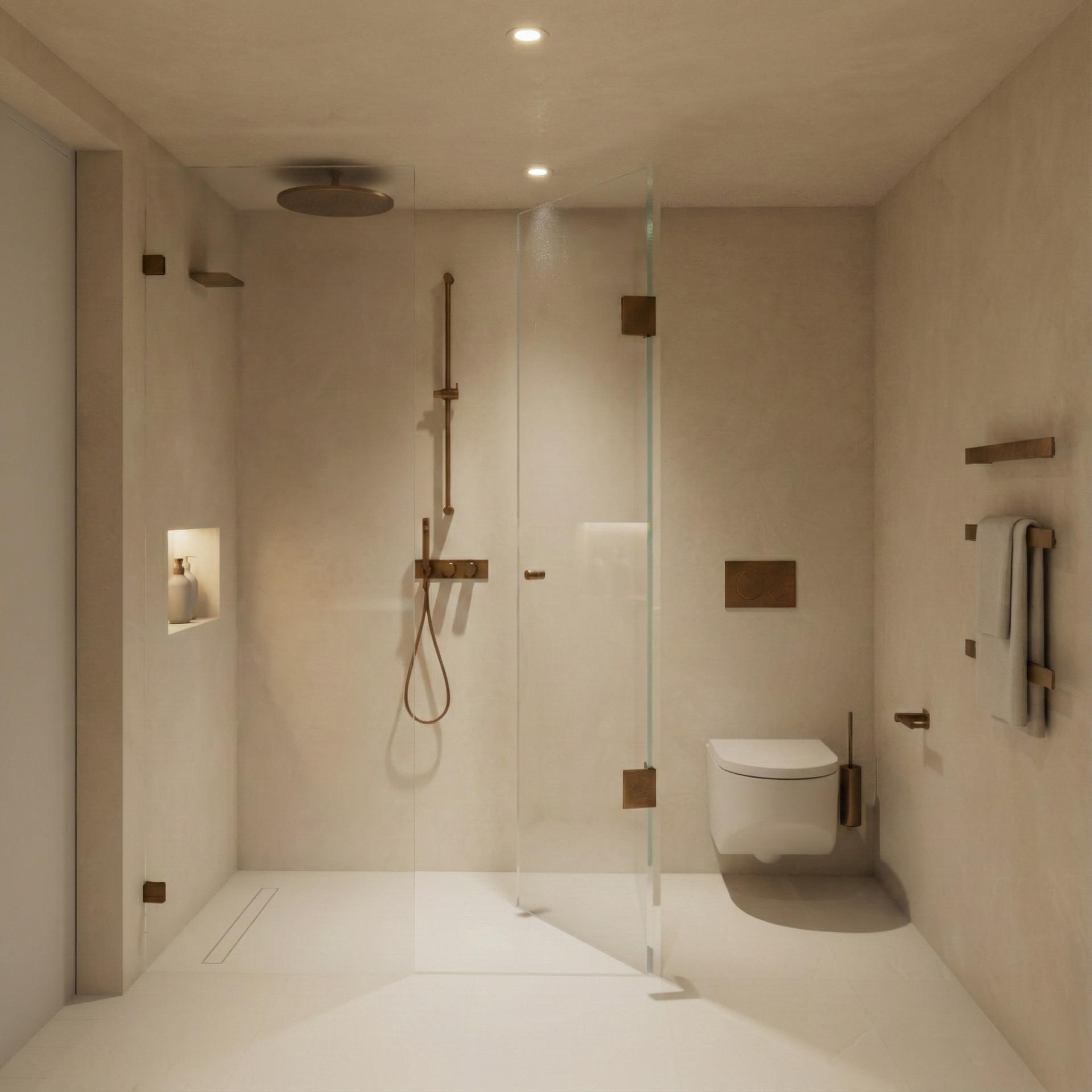 Acabados Lujosos: Grifería Gessi 316 Warm Bronze en baños y sanitarios Roca-ONA Wall Hung.