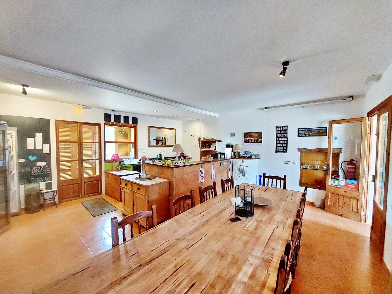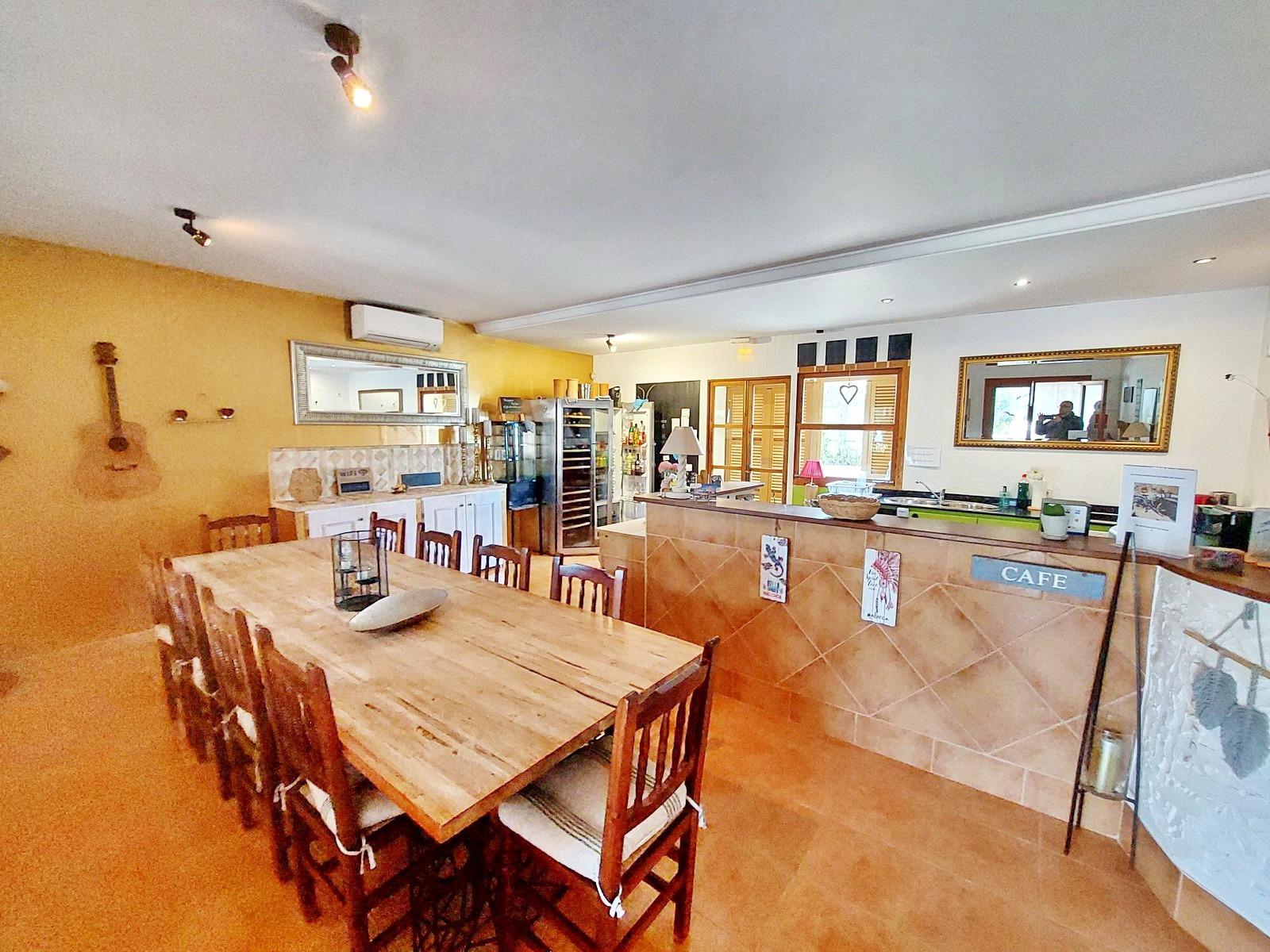 Para la oferta gastronómica, el agroturismo cuenta con una espaciosa sala para desayunos y comidas, con una encantadora terraza que se abre directamente a la piscina, creando un ambiente inmejorable. La cocina general está totalmente equipada para la operación del negocio, y una zona de bar diseñada para eventos especiales añade un valor significativo, permitiendo diversificar la oferta de servicios y aumentar los ingresos.