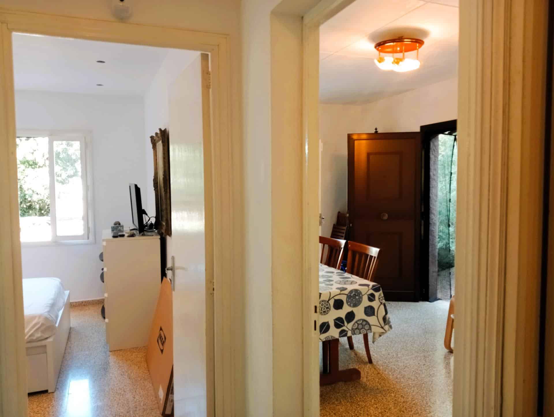 La casa principal cuenta con una distribución funcional que incluye dos acogedoras habitaciones, un baño, una cocina, un comedor y luminosa sala de estar. Un aspecto destacable es el estudio independiente situado bajo la terraza, con su propia entrada. Este espacio versátil, que consta de una habitación y un baño, tiene la posibilidad de integrar una pequeña cocina-comedor, lo que lo convierte en un alojamiento ideal para invitados, un estudio de trabajo o una fuente de ingresos extra.