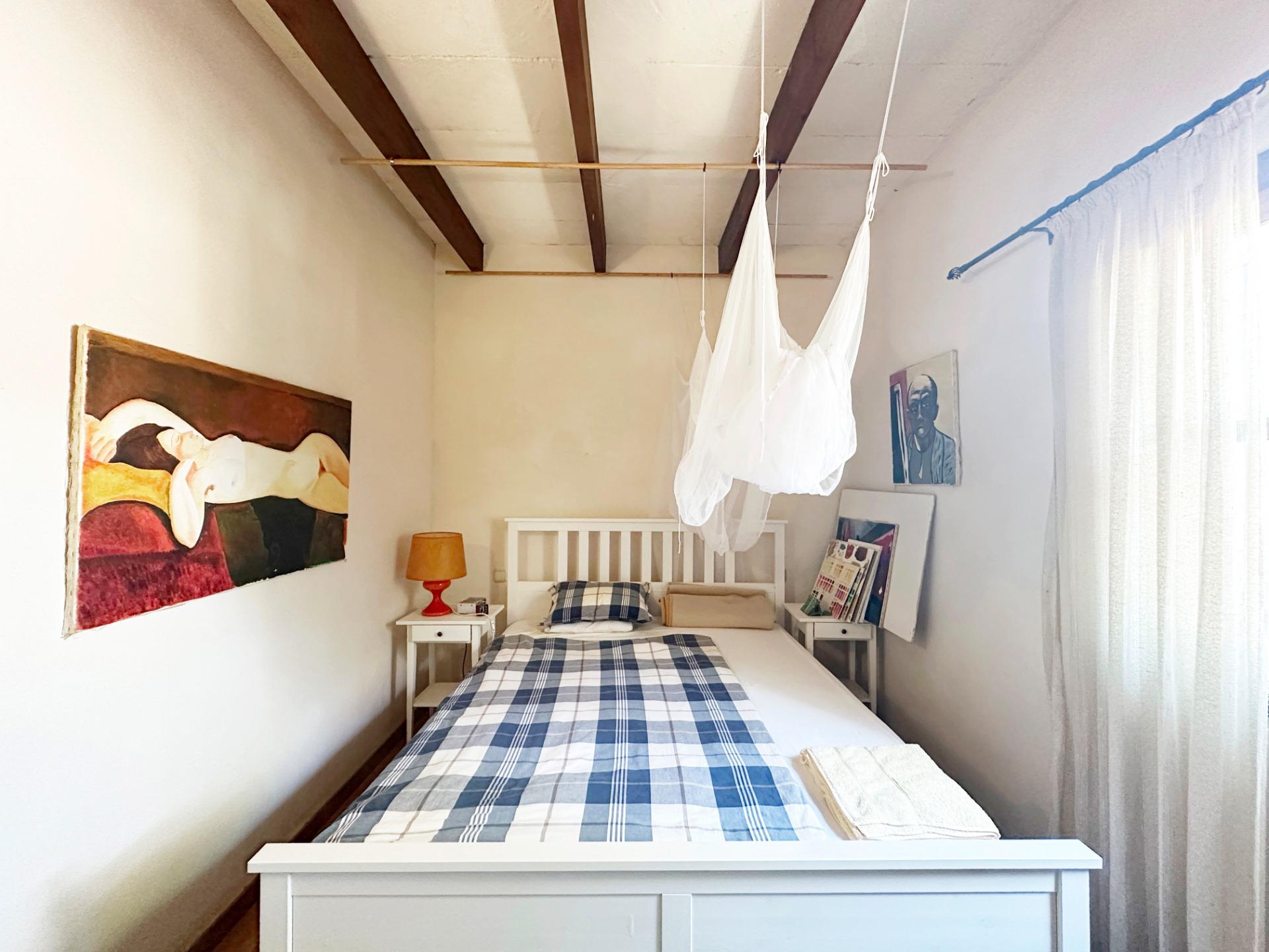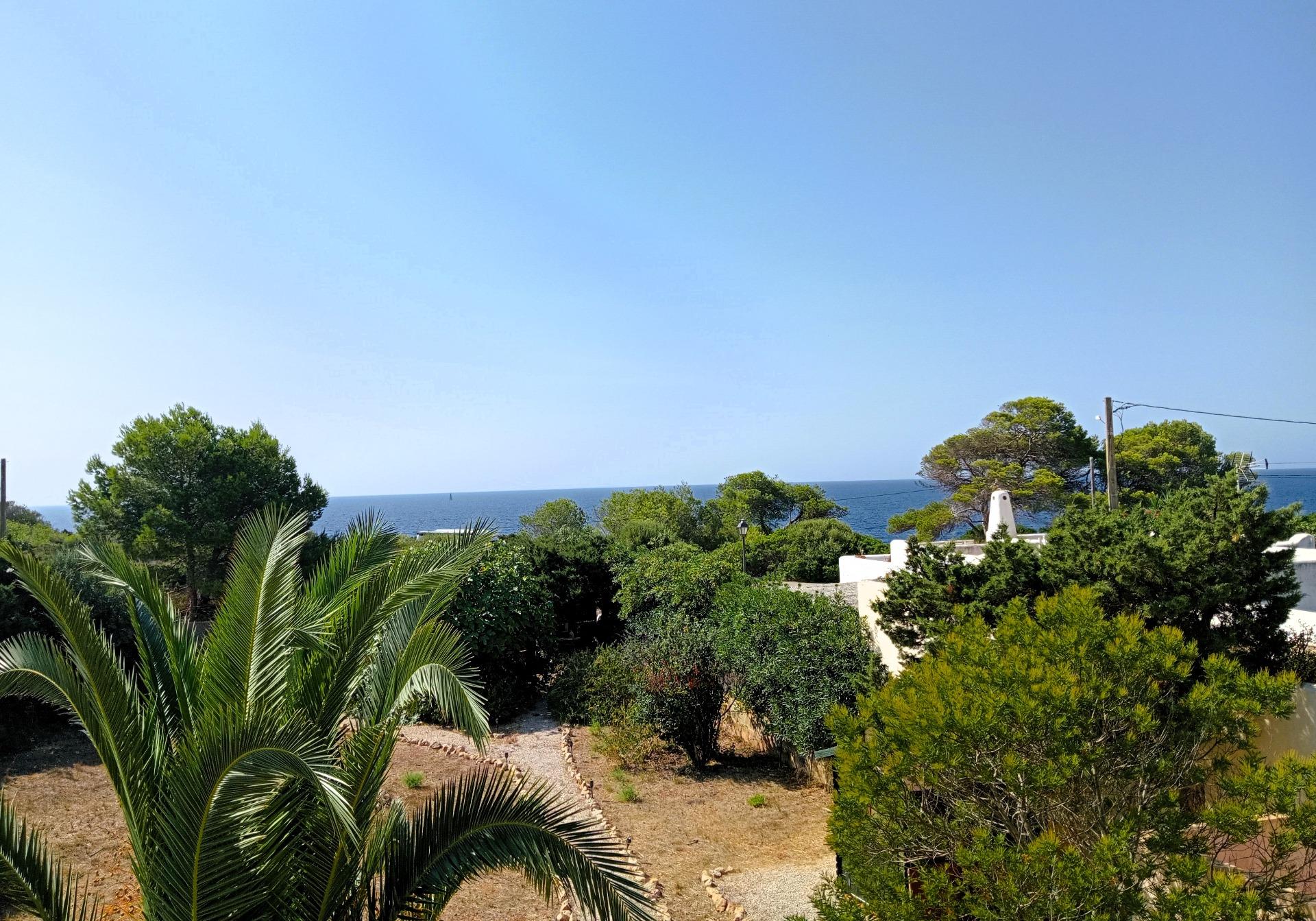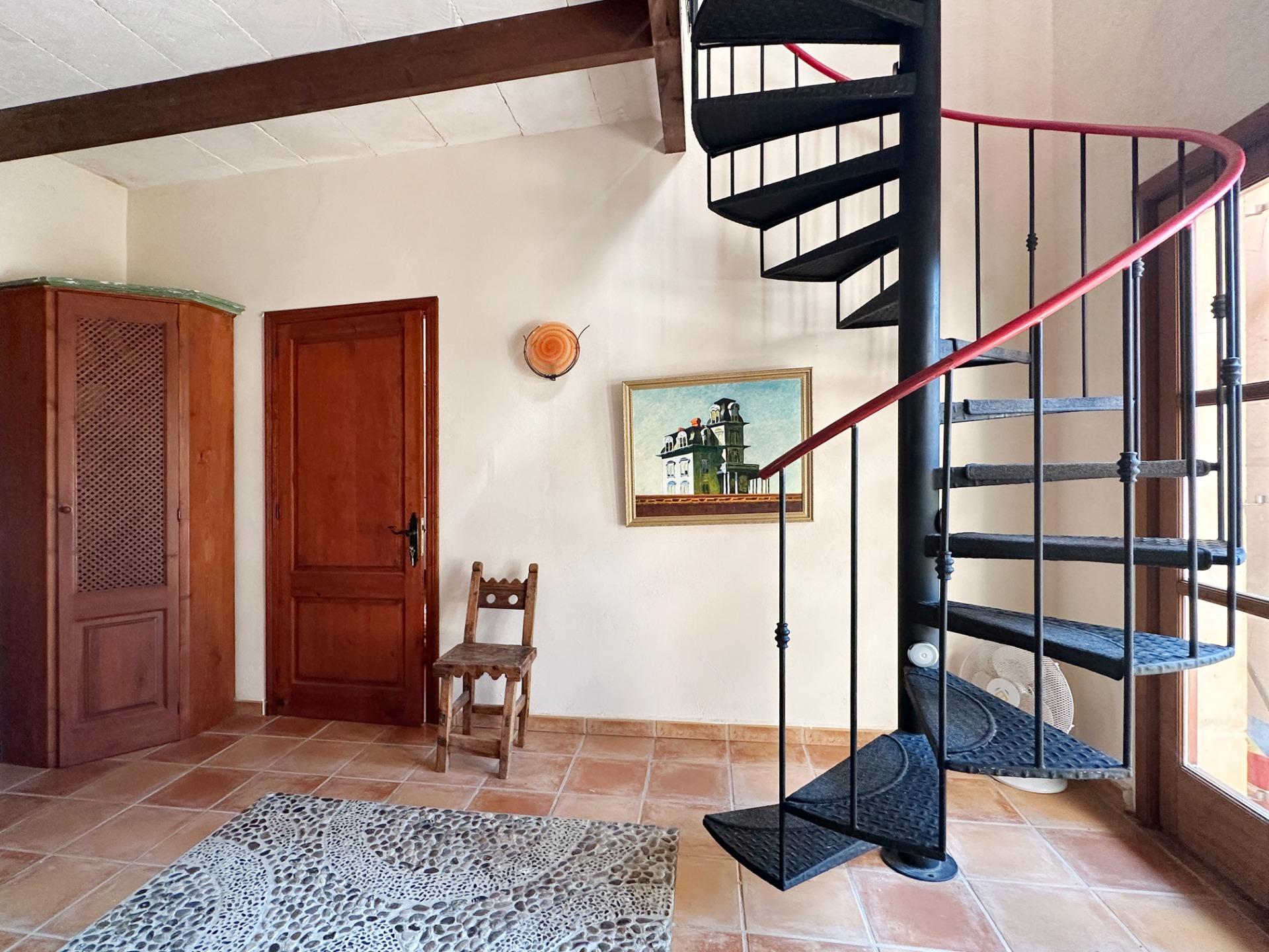 Subiendo la escalera de caracol, en el primer piso, se halla una zona de trabajo con acceso a un balcón. El verdadero tesoro es el amplio dormitorio principal con baño en suite, vestidor y un balcón privado que ofrece vistas espectaculares al mar y al jardín, un lugar perfecto para relajarse y desconectar.